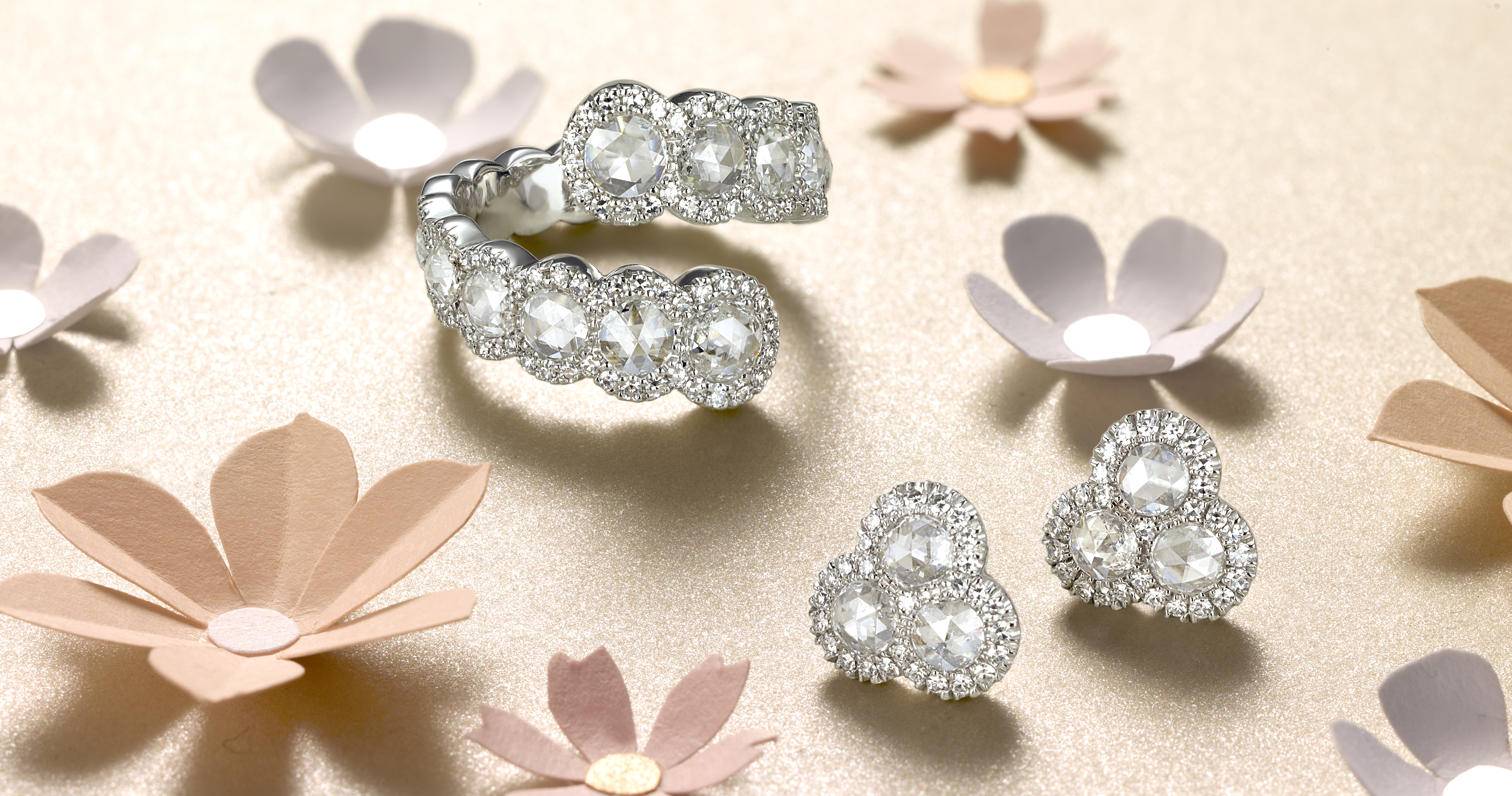 Collection rose cut, or blanc ou or rose et diamants taille rose, prix à partir de 10 000 €