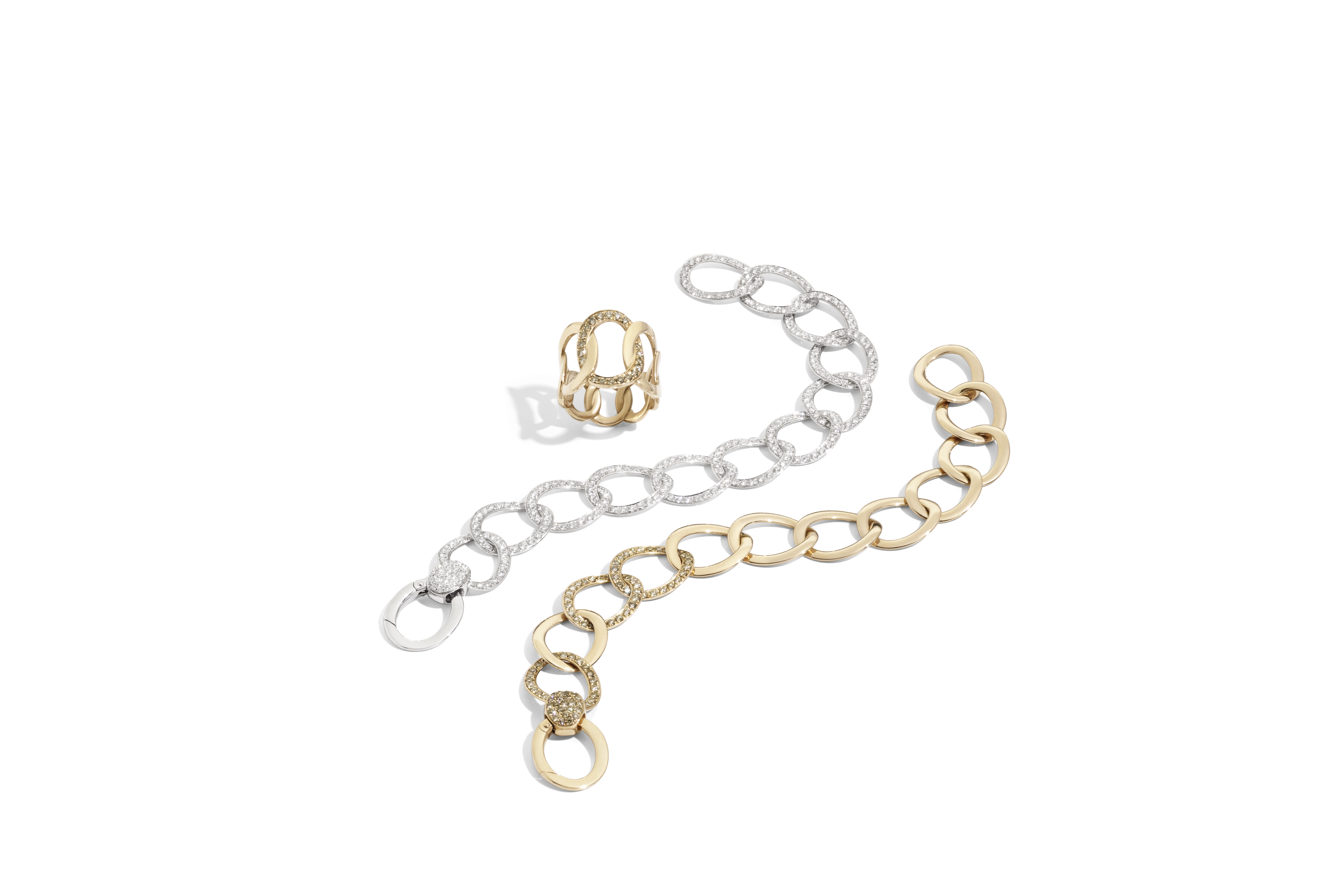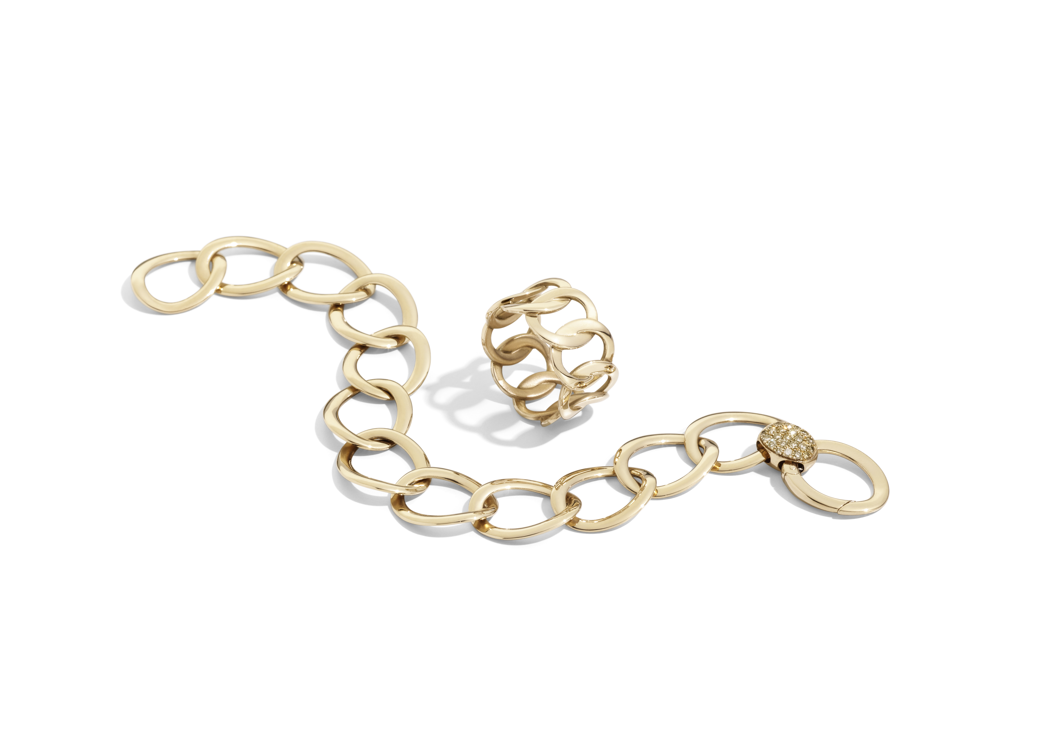 | « Pour l’amour des chaînes »Les années soixante sont célèbres pour la révolte qu’elles ont suscitée, entraînant changement, liberté et amour. En 1967, Pino Rabolini, descendant d’une famille d’orfèvres, a lancé sa propre révolution dans l’univers de la joaillerie. Créant des bijoux innovants aux designs tirés du prêt-à-porter, sa passion pour les chaînes est devenue l’un des emblèmes de la Maison Pomellato – initiant une indéfectible histoire d’amour, interprétée en or à ce jour.