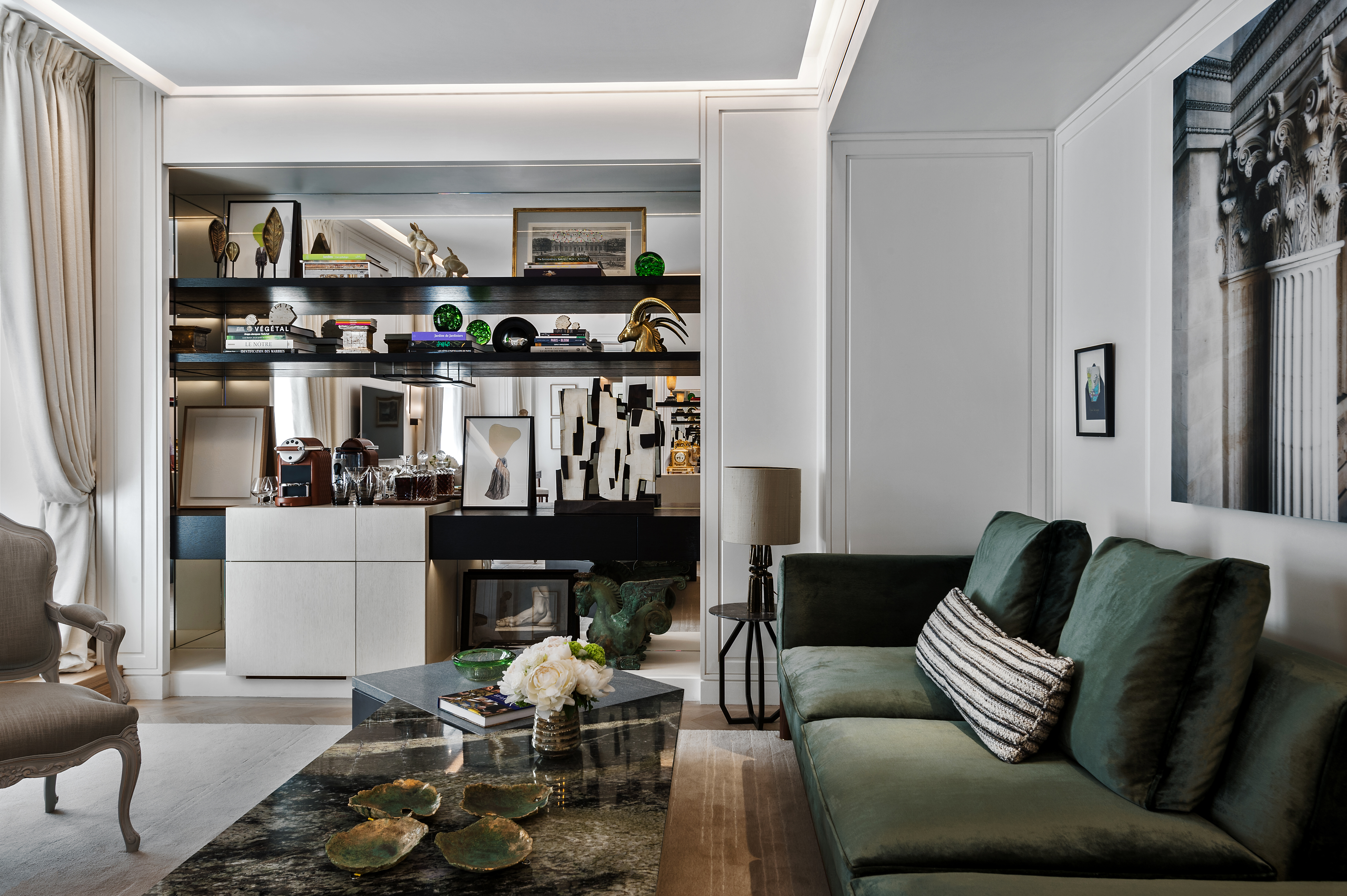 La Suite Jardin incarne le style résidentiel parisien caractéristique de l’Hôtel de Crillon. Inspirée du Petit Trianon, la Suite est un studio contemporain aux pièces en enfilades et murs tapissés de bibliothèques, d’œuvres d’art et d’objets anciens. La Suite Jardin se démarque par l’utilisation de marbre vert d’une extrême rareté qui fait écho à sa terrasse donnant sur la Cour d’Honneur : un véritable havre de paix