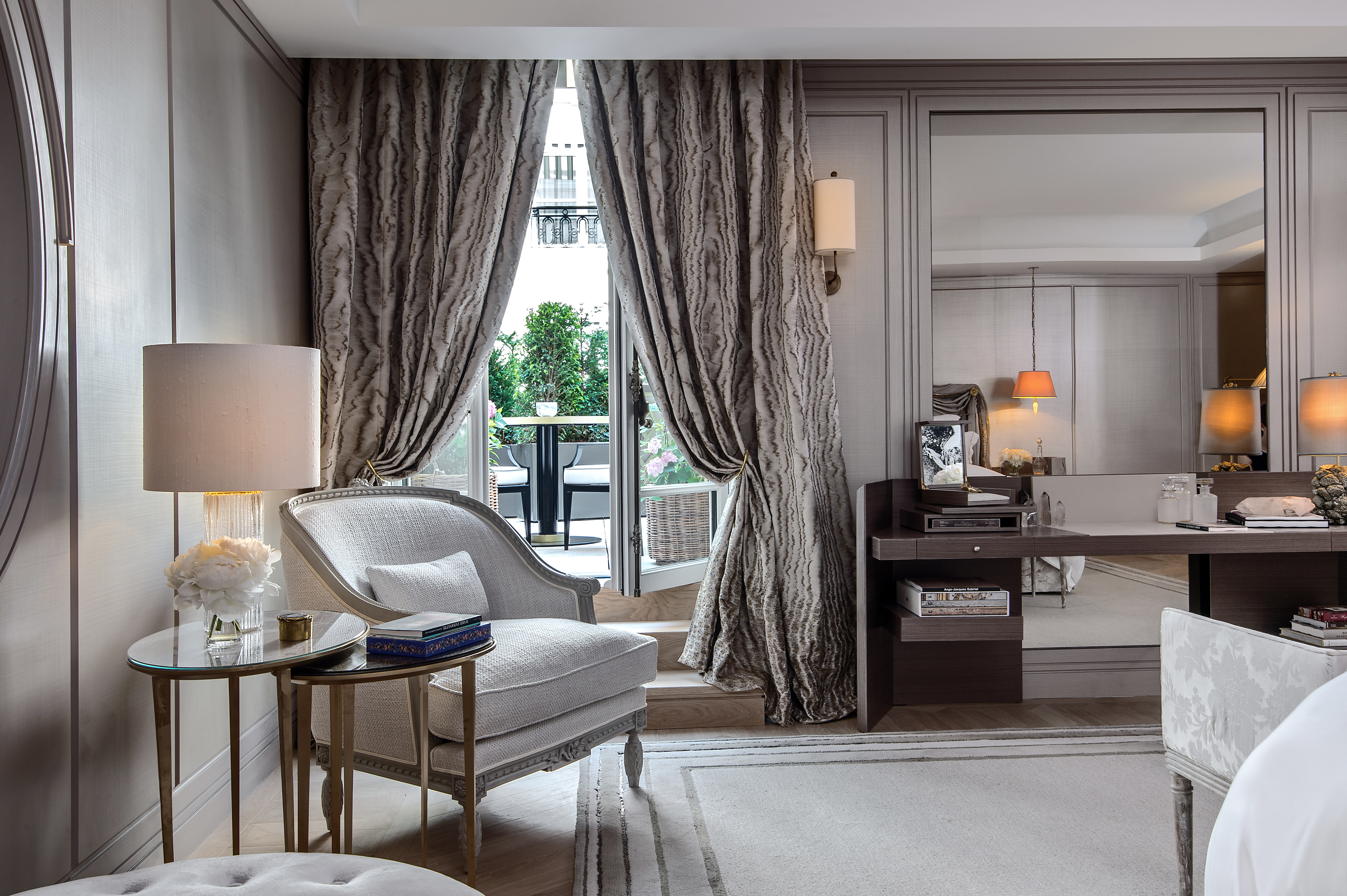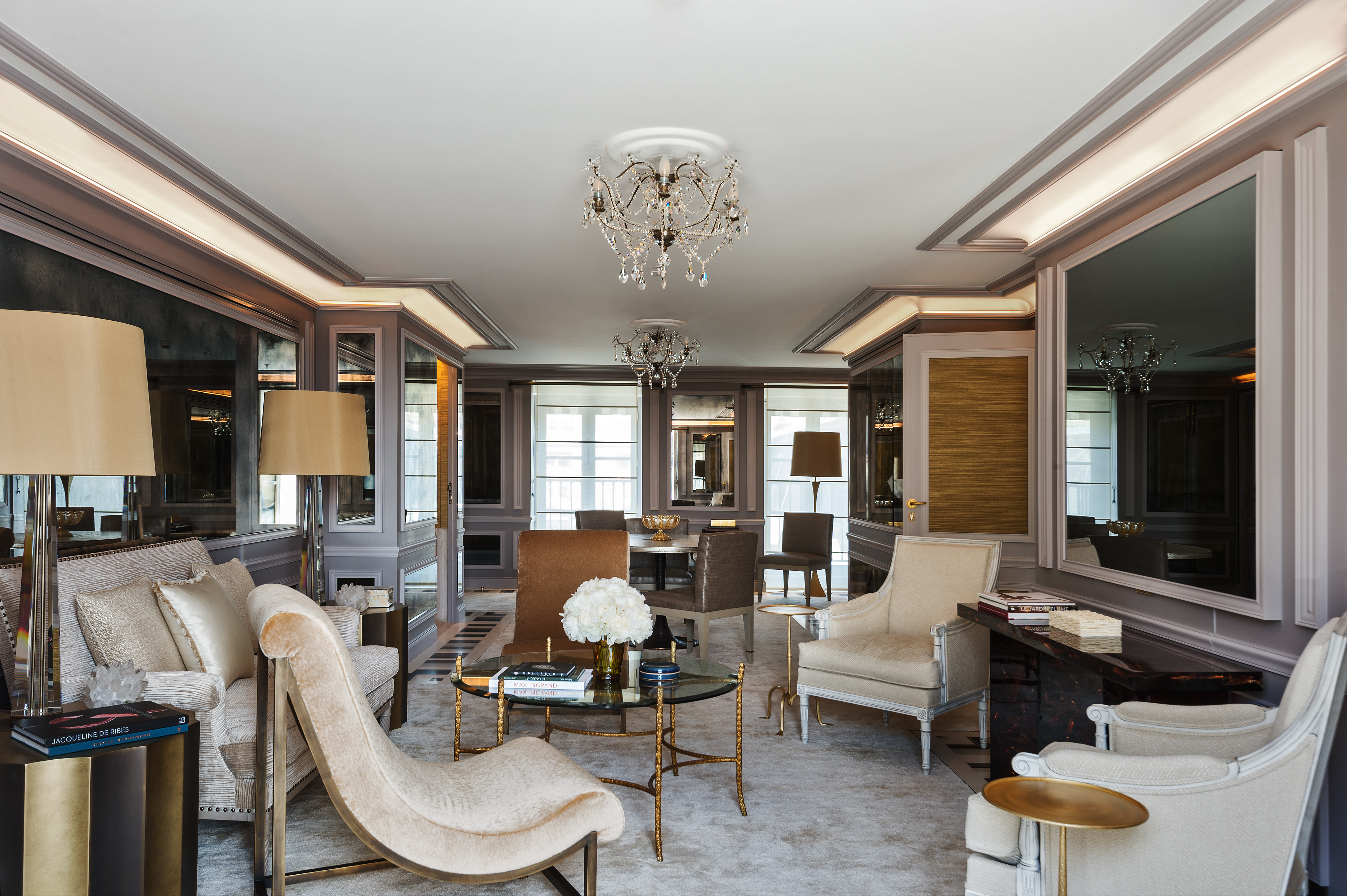 Les Grands Appartements, situés au quatrième étage, offrent des vues à couper le souffle sur Paris et ses monuments, dont la Tour Eiffel, le Grand Palais, le Musée d’Orsay et la Place de la Concorde. Conçus par Karl Lagerfeld, designer de renom et grand passionné du XVIIIe siècle, il y a livré sa vision personnelle du chic à la française et de la modernité. Les deux Suites des Grands Appartements décorées avec du mobilier imaginé par Karl Lagerfeld et leurs salles de bains offrent ainsi un design unique. La baignoire taillée dans un seul bloc de marbre de Carrare de plus deux tonnes, a été hissée via une grue, insérée par la fenêtre et déposée sur deux blocs de glace qui, en fondant, ont permis de la positionner sans endommager le sol.