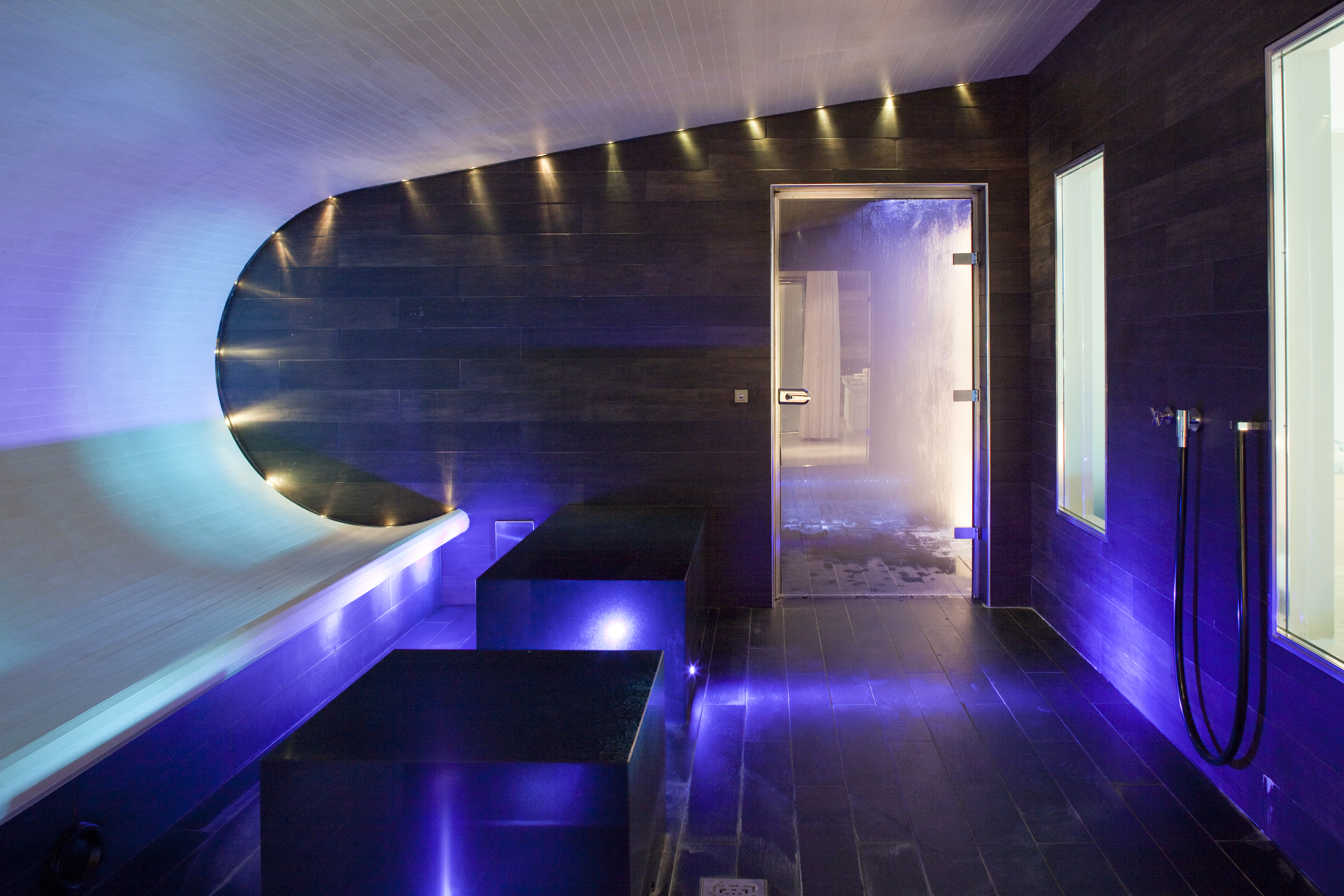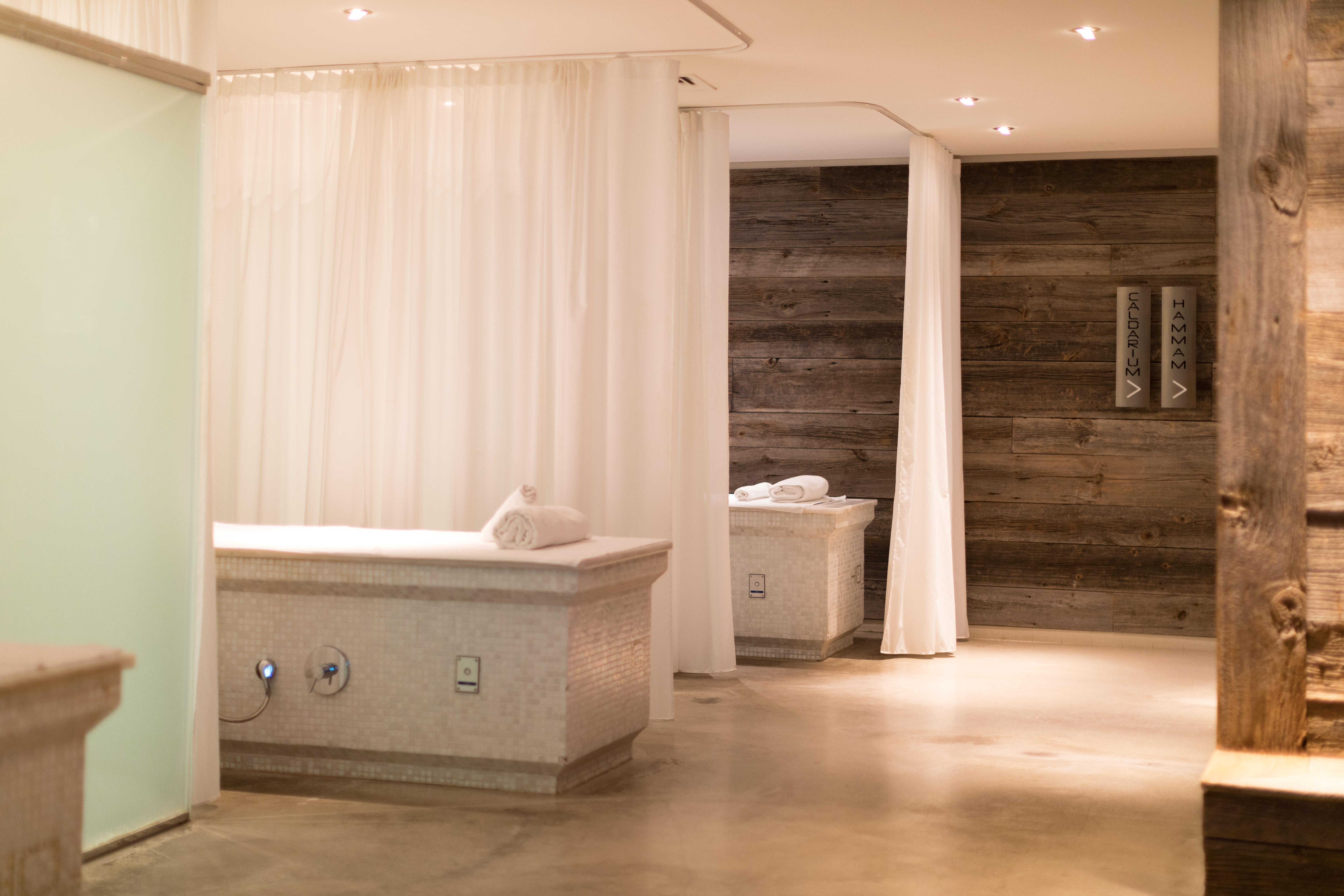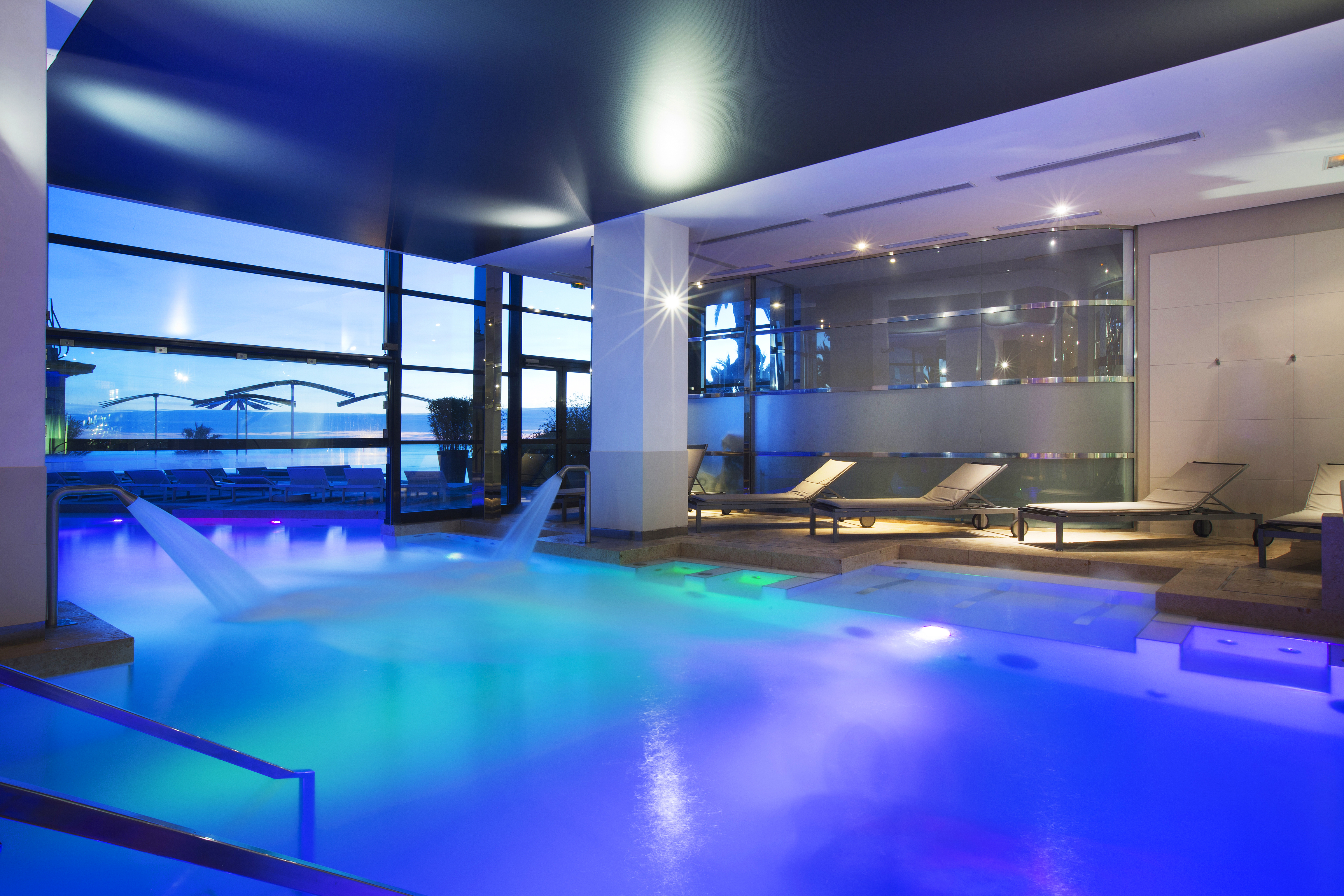 Les Thermes Marins, directement rattachés au Radisson blu 1835 Hotel & Thalasso, se déploient sur trois étages, dans une atmosphère raffinée et épurée, où la fluidité et la lumière des espaces et du design inspirent les clients dès leur arrivée. L’élément prédominant de cet écrin, l’escalier de verre qui relie les différents étages et espaces. Les clients découvrent le parcours marin du rez-de-chaussée qui incite à la relaxation tonique. Au programme de ce parcours : une piscine intérieure et extérieure d’eau de mer chauffée, un jacuzzi, un solarium, des salles de soin et de massage. Le premier étage avec vue imprenable sur la Méditerranée et les montagnes de l’Esterel, ravit les plus sportifs avec une salle de yoga et Pilates ainsi qu’une salle de cardio-fitness et un deuxième solarium. Le niveau moins un invite à la détente et au bien-être : lits de relaxation, sauna, douche multisensorielle, hammam, caldarium. Les Thermes Marins de Cannes misent sur la diversité des programmes proposés, destinés à répondre aux besoins de chacun : Signature Riviera, Oligo-marine, Sérénité, Future Maman, Détox… Les clients se détendent et profitent de nombreux instants de relaxation, accompagnés par les gestes de professionnels compétents et une gamme de soins élaborés par CHO Nature, Valmont, Thalion. Entre ami(es), seul(e) ou à deux : les moyens de relaxation et de bien-être sont multiples.
