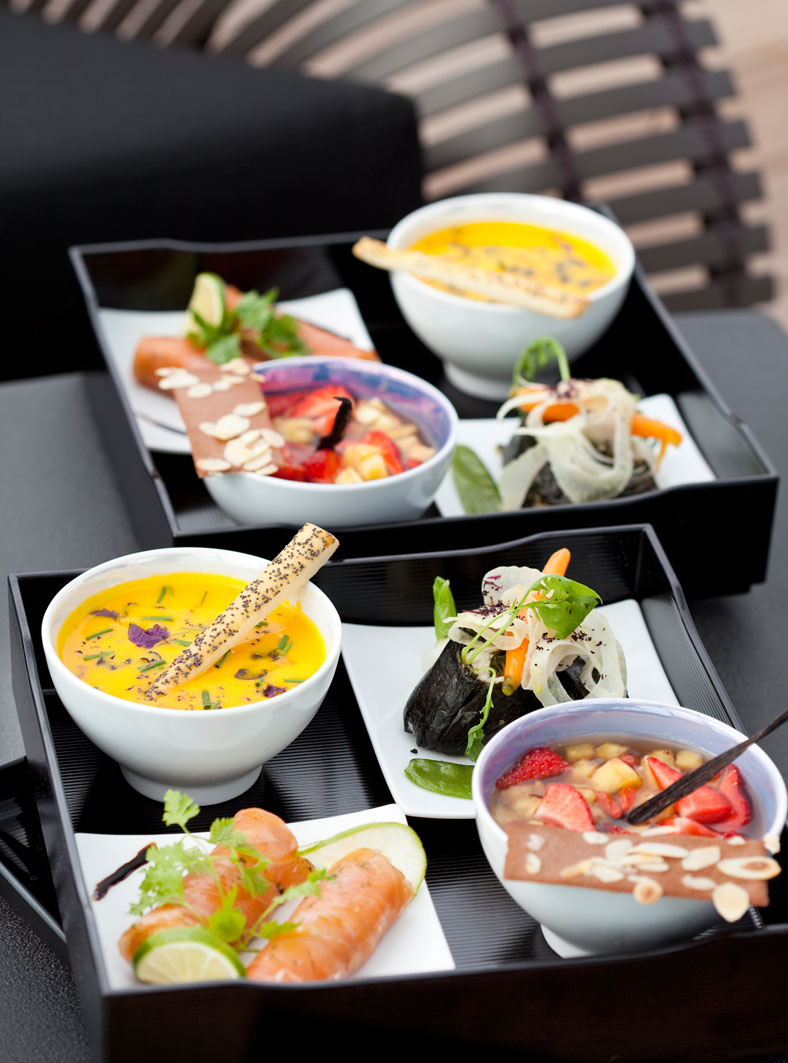 Un concept unique : notre formule O’Bento Box. Elle consiste en un menu élaboré suivant la tradition japonaise avec des produits frais de saison contenant au maximum 450 calories. Conçus globalement, les programmes de soins s’accompagnent ainsi tous les jours d’une entrée, d’un plat et d’un dessert préparés par notre Chef Reynald Thivet et composés d’ingrédients sains et cuits à la vapeur. Une alliance parfaite entre explosion des saveurs et équilibre naturel.