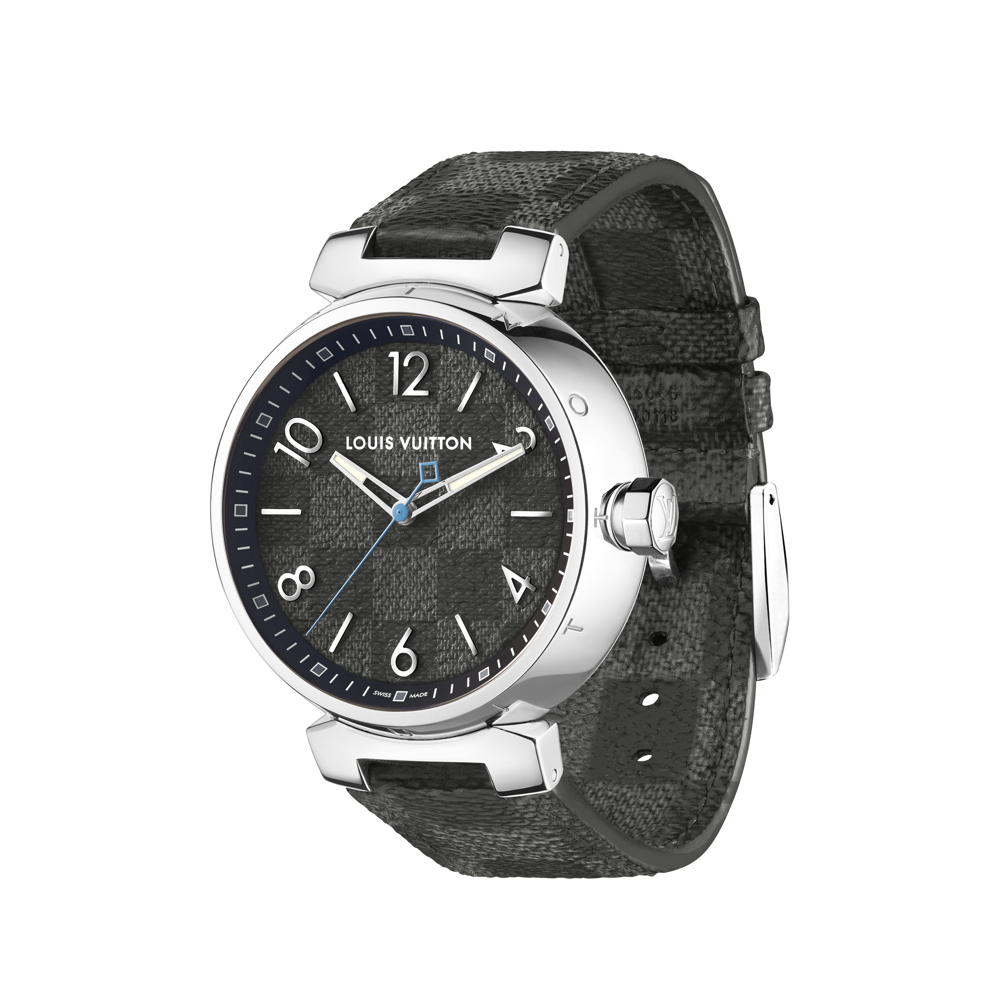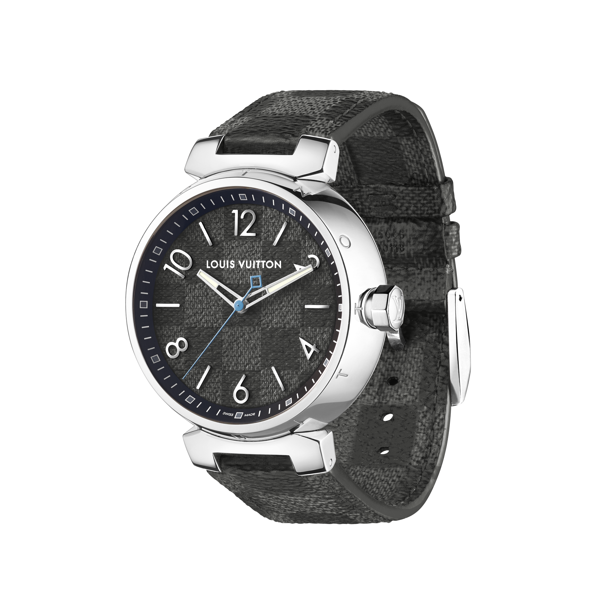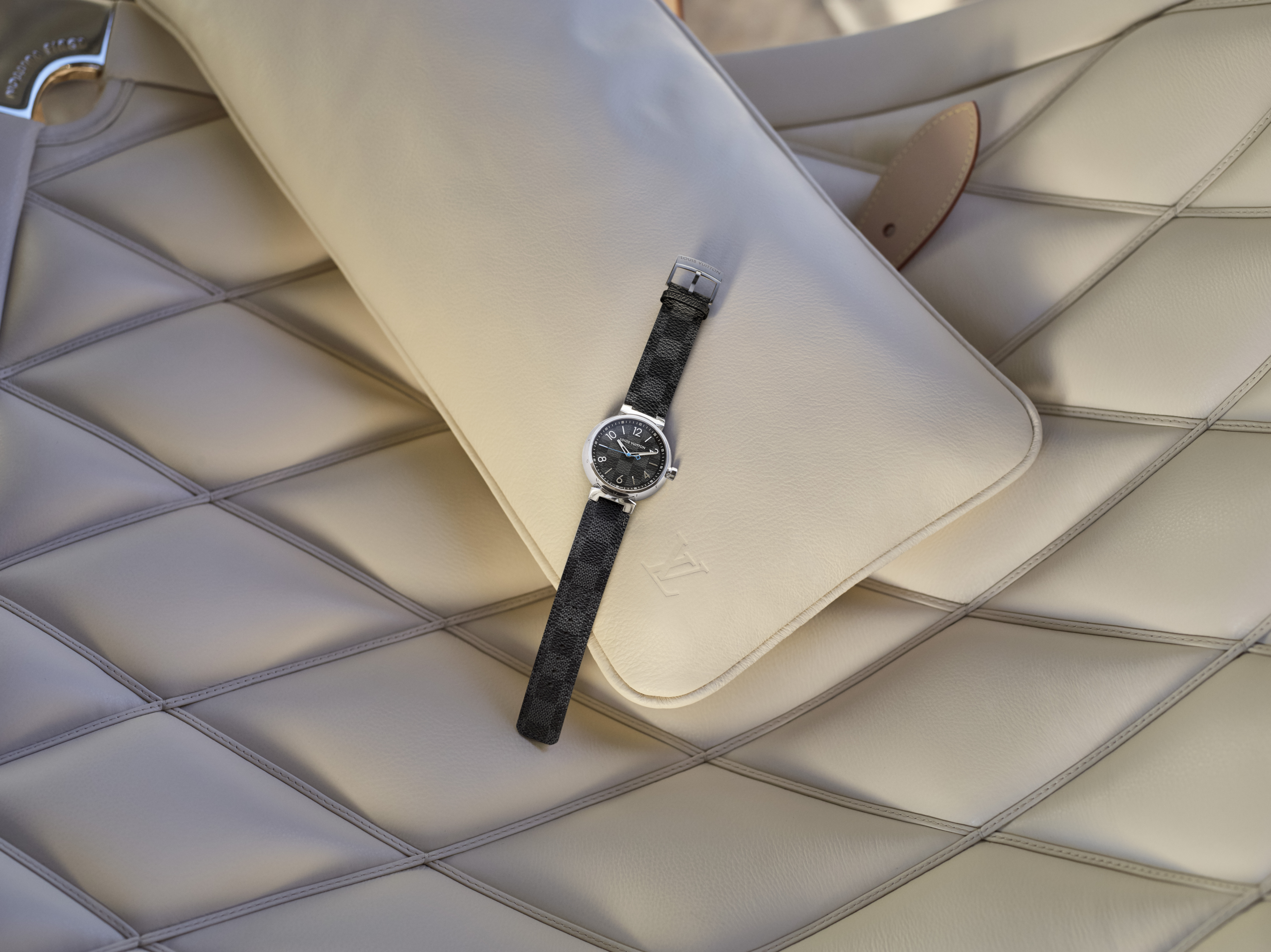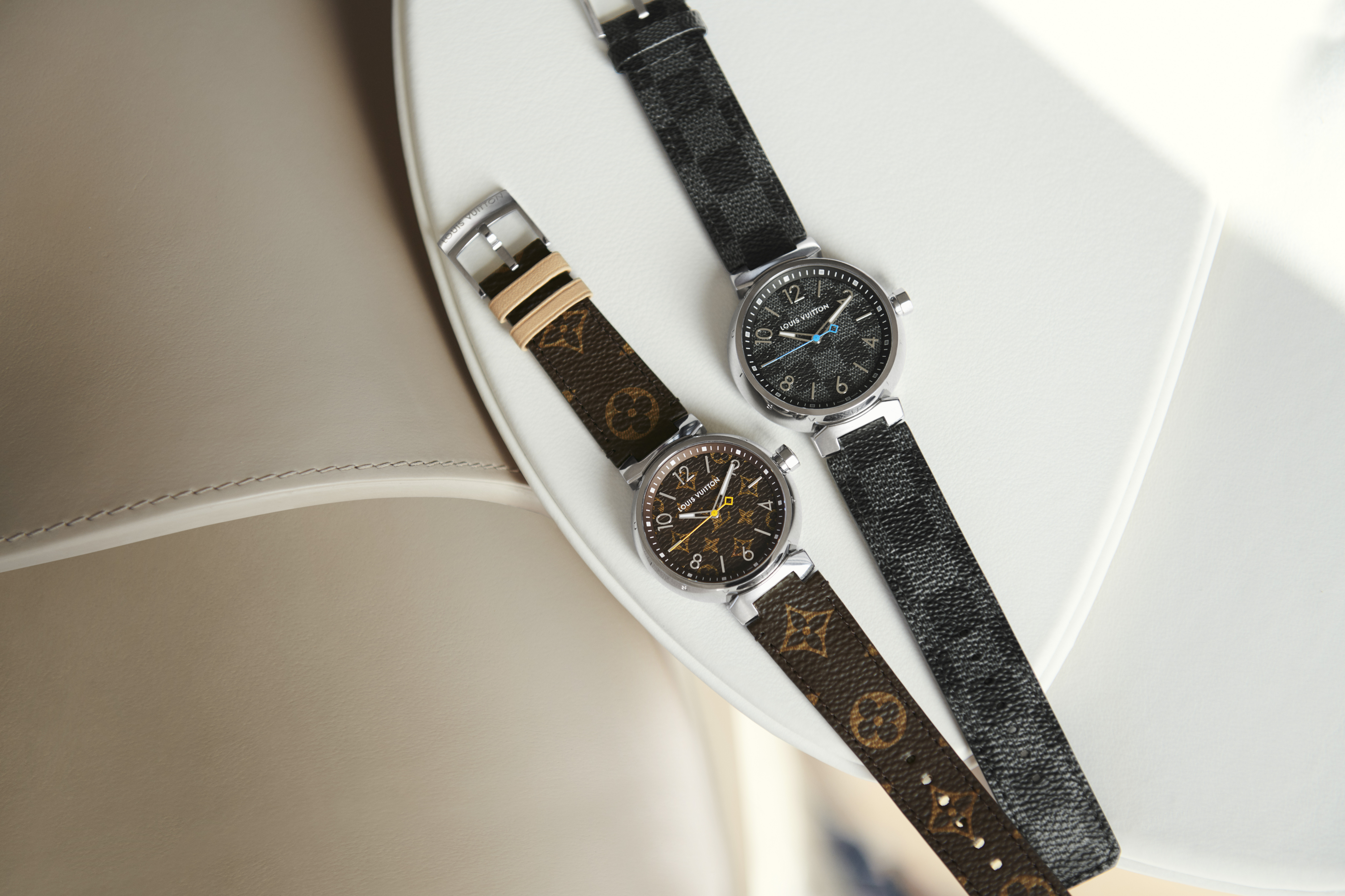 En 2002, Louis Vuitton marque son entrée dans l’univers horloger par la création de la montre Tambour, une forme de montre inédite dans l’horlogerie qui va intégrer dans son design toutes les valeurs de la Maison : les 12 lettres Louis Vuitton gravées dans le boîtier en face de chaque heure, le brun du cadran inspiré du célèbre Monogram ou encore le jaune des aiguilles des secondes rappelant le fil ciré des sacs Maison. Au-delà des multiples références – du modèle simple quartz trois aiguilles aux grandes complications –, Tambour va devenir un principe d’identité, une signature, alliant une allure intemporelle et des performances techniques renouvelées.