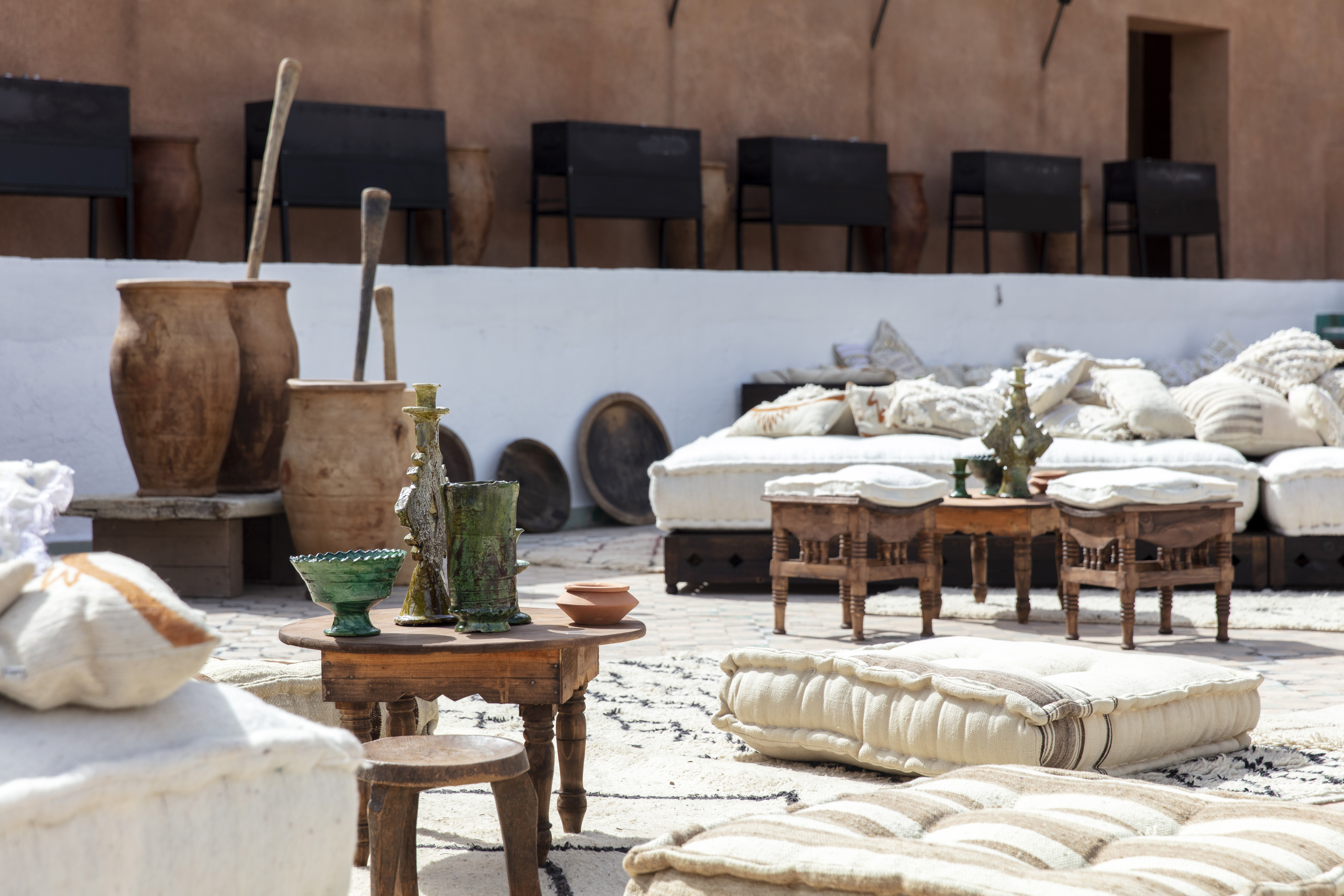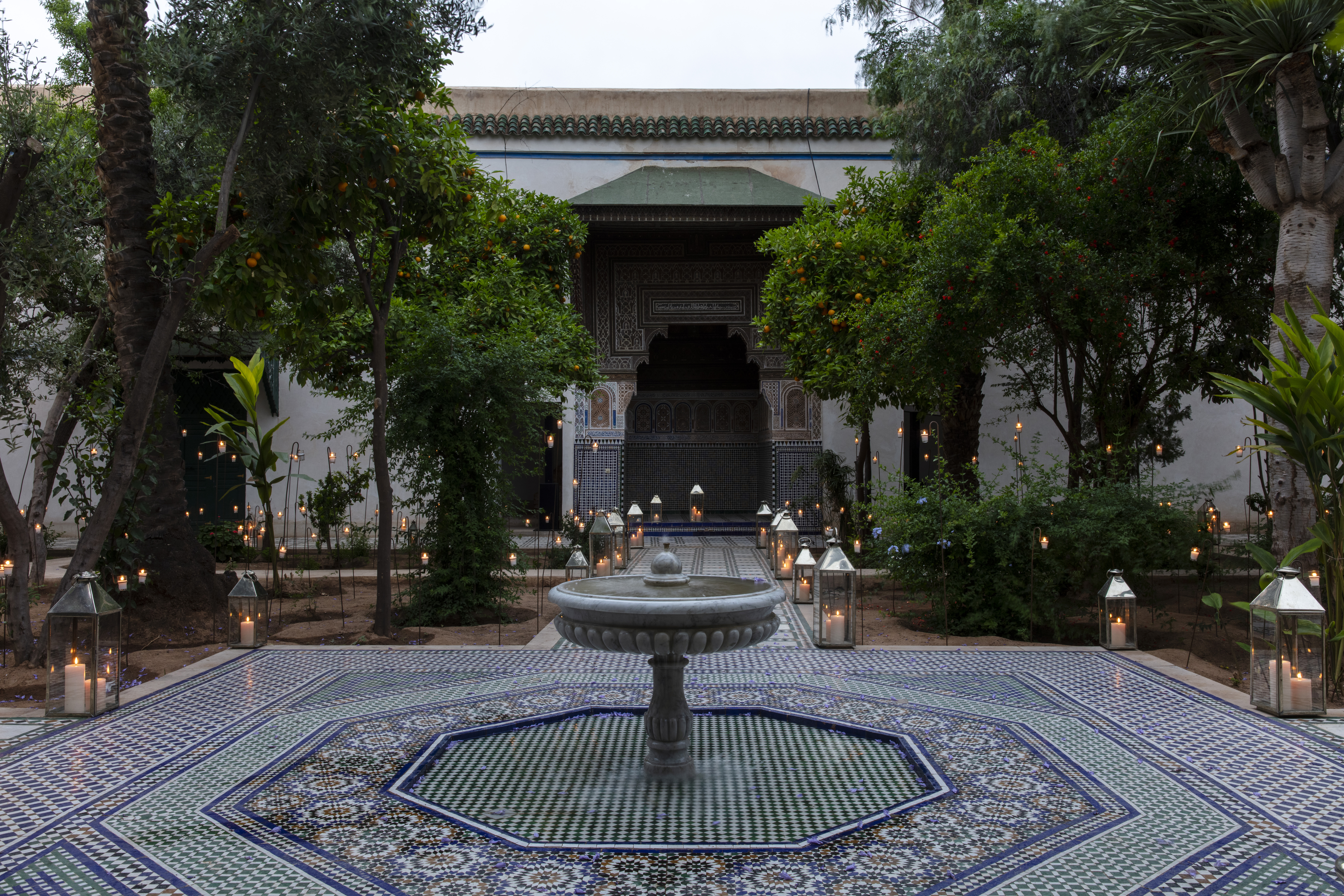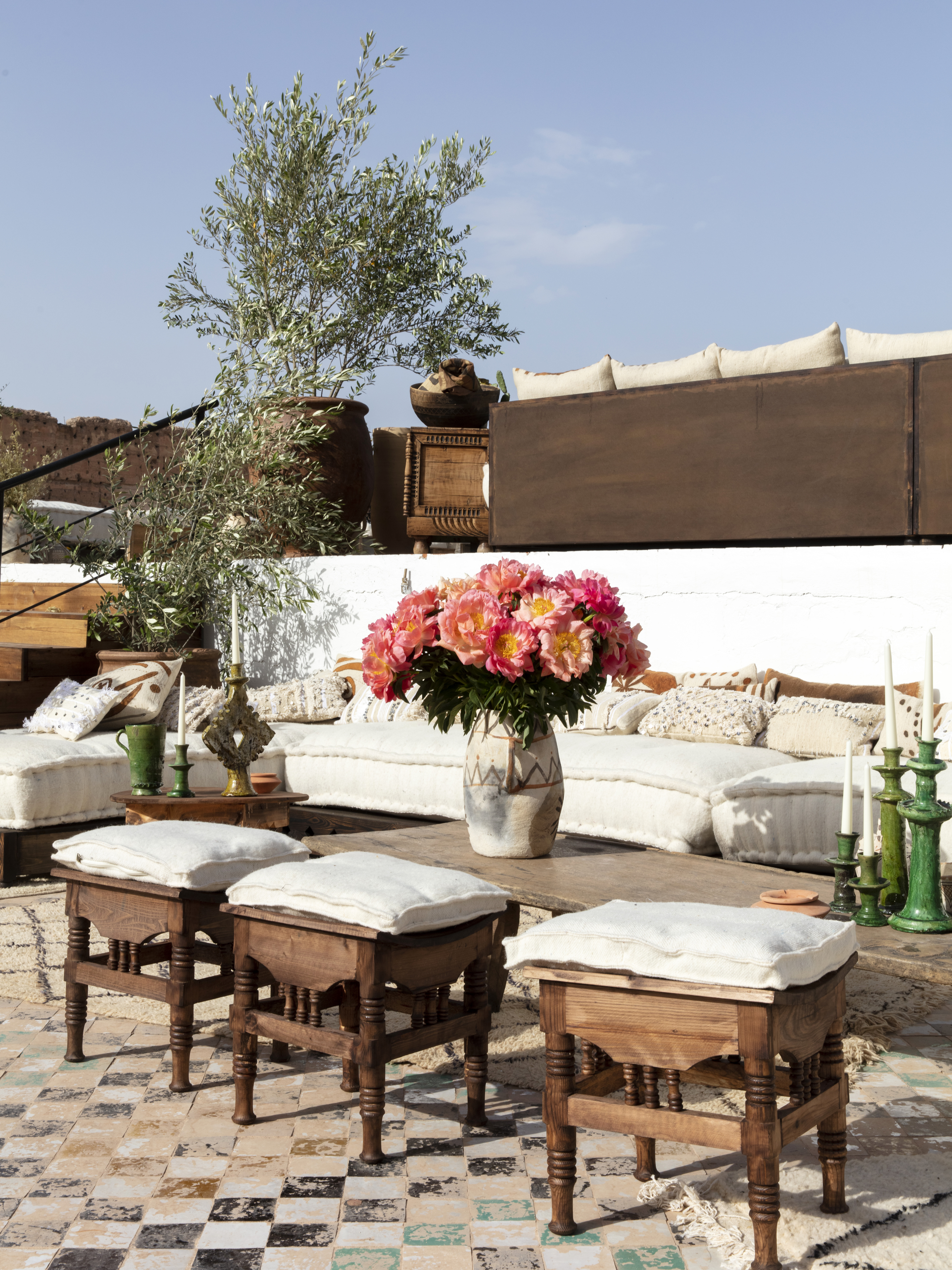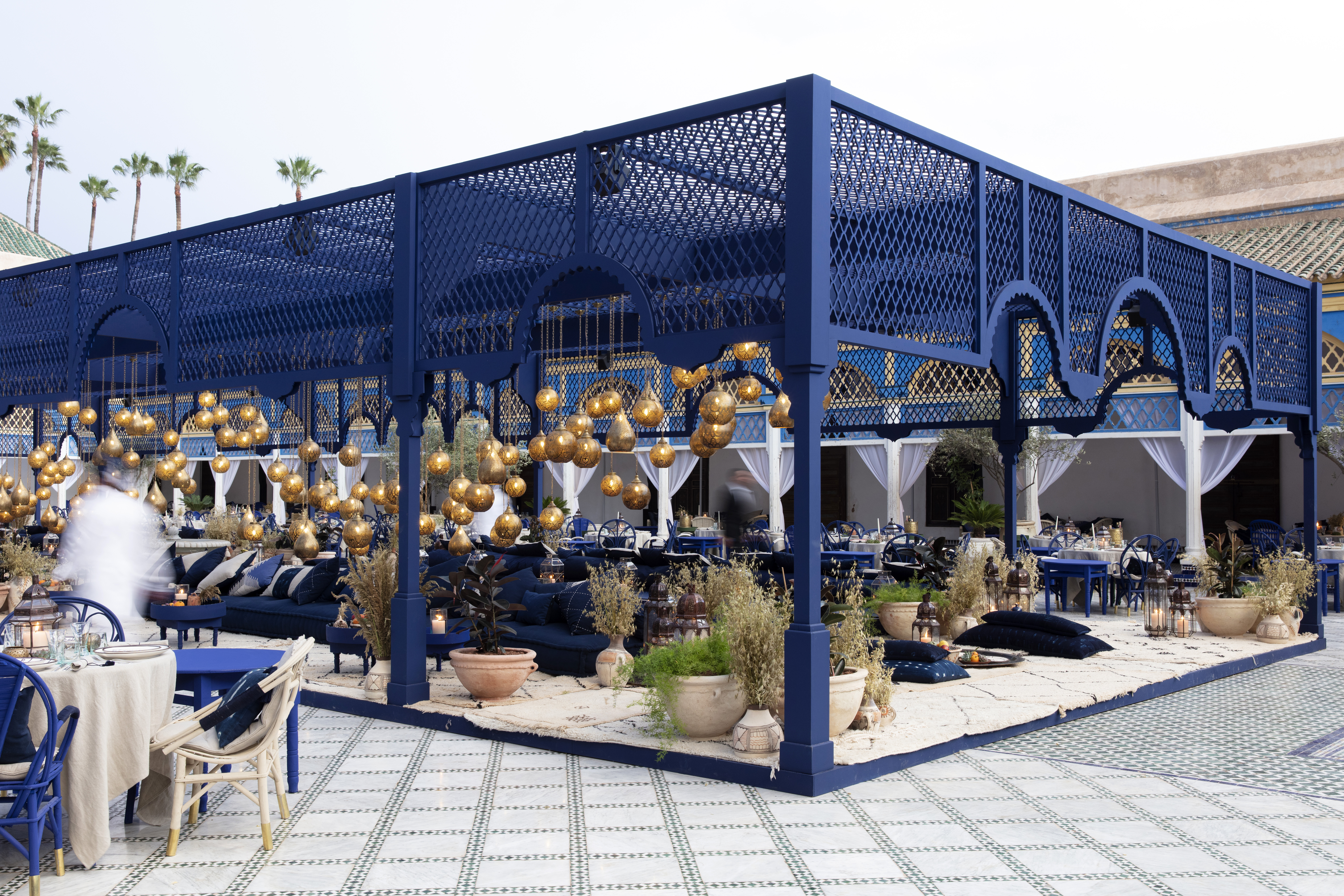 Autre belle rencontre culturelle – pour la scénographie et un manteau de la collection – celle de Sumano, association préservant le savoir-faire ancestral de tisserandes et de potières du Maroc. Coussins revêtus de tissages artisanaux peints au henné et décor rehaussé de poteries en céramique ont ainsi ponctué l’architecture d’exception du palais El Badi, somptueux écrin du défilé.