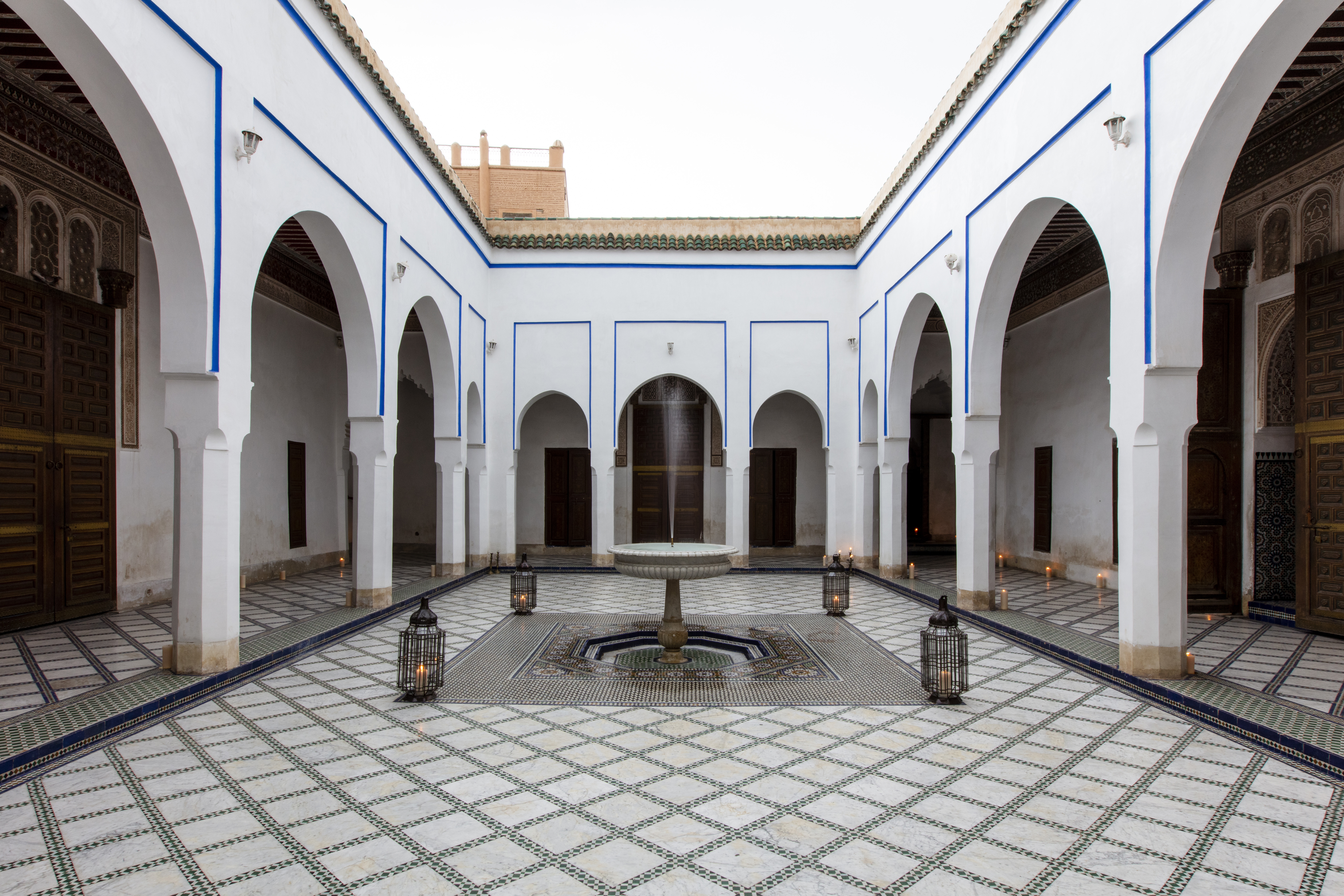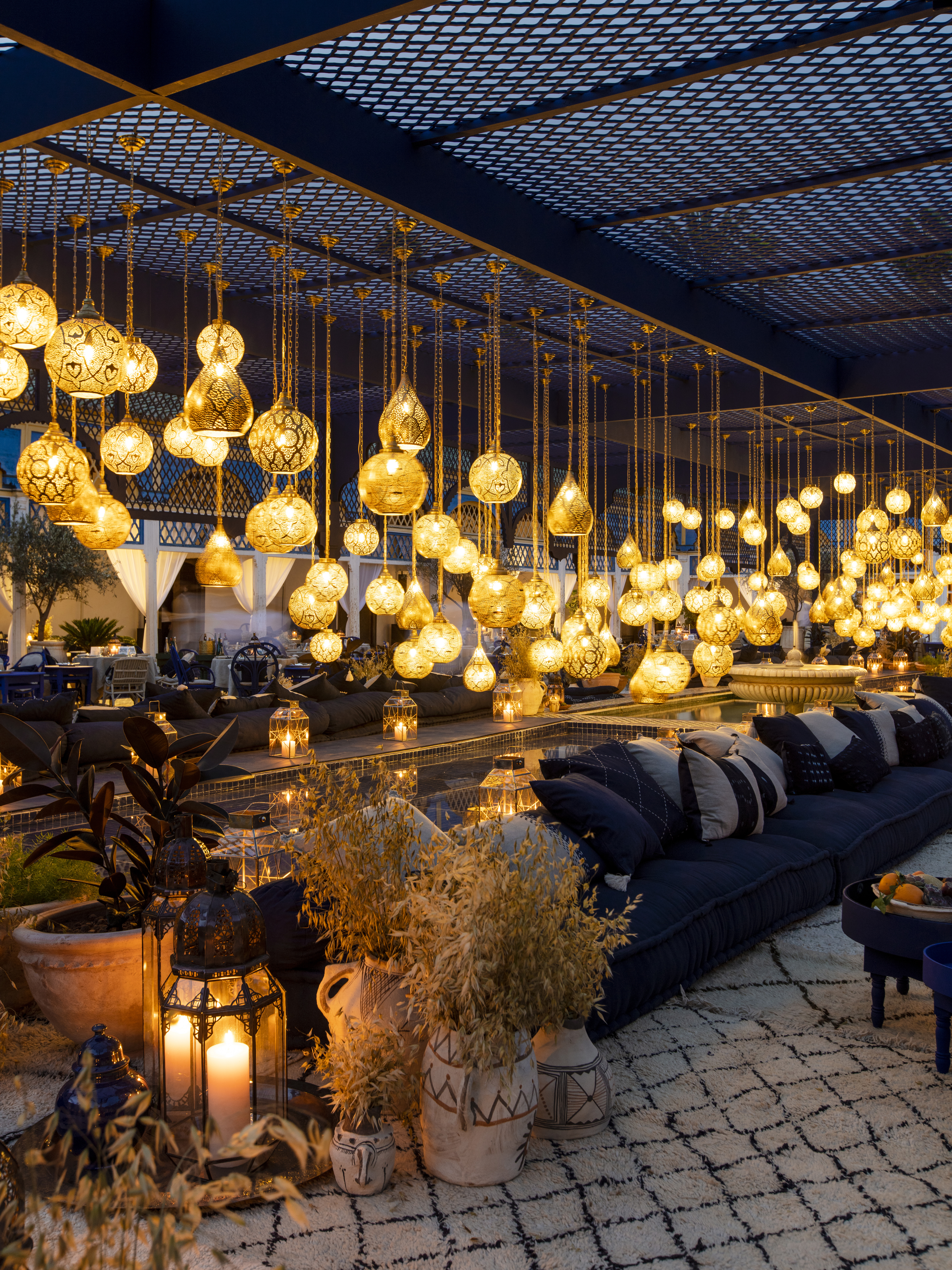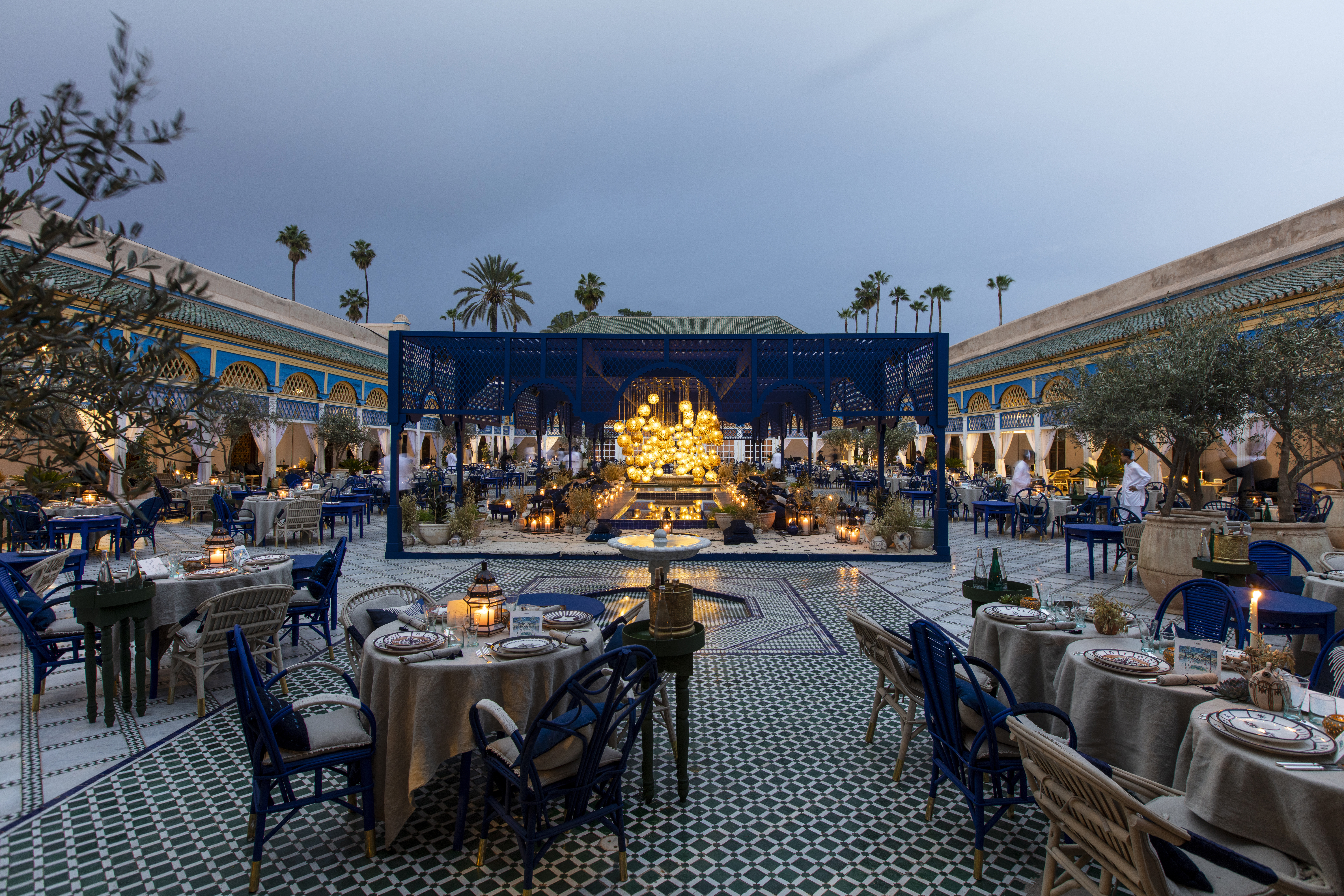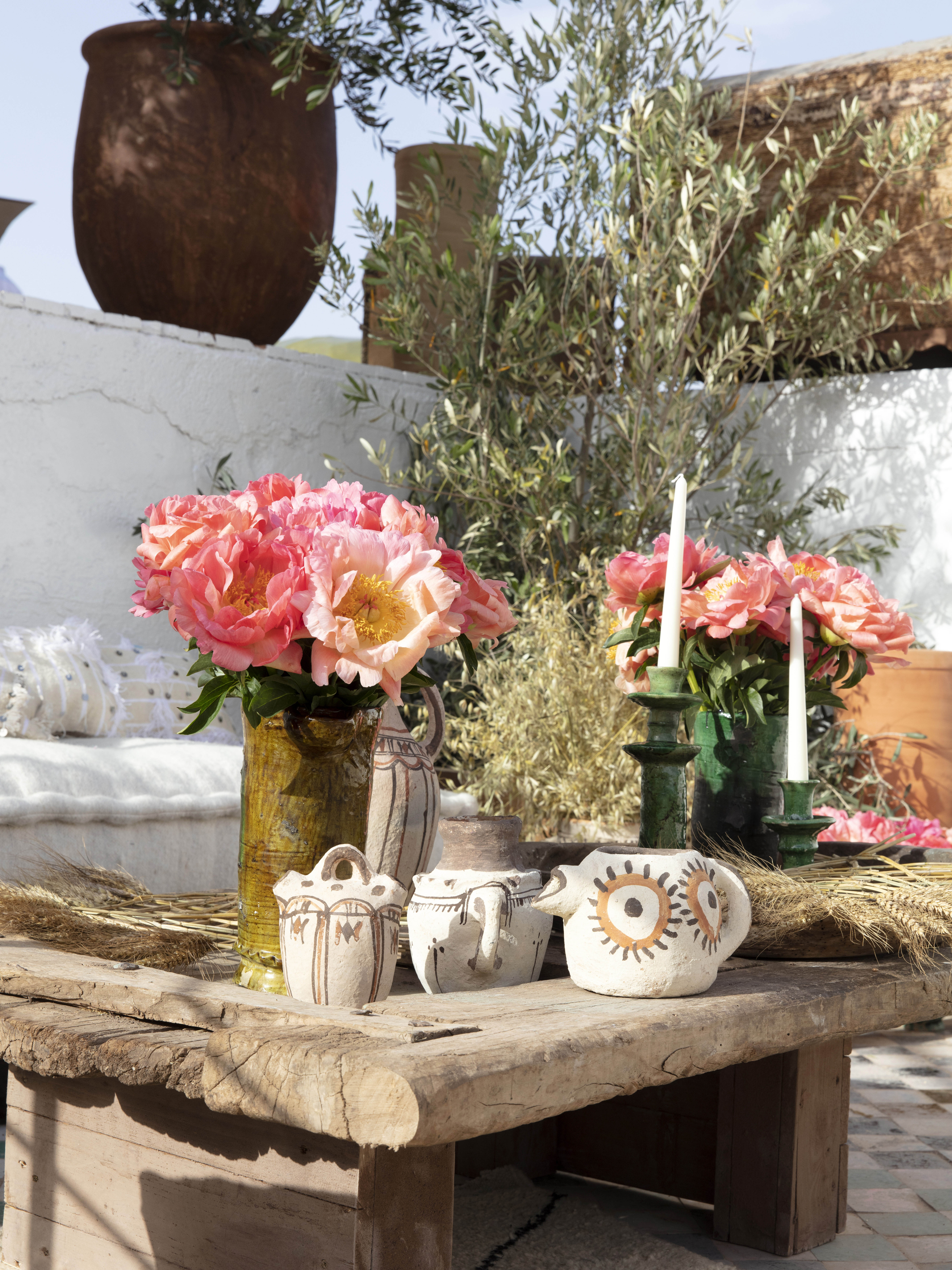 Autre belle rencontre culturelle – pour la scénographie et un manteau de la collection – celle de Sumano, association préservant le savoir-faire ancestral de tisserandes et de potières du Maroc. Coussins revêtus de tissages artisanaux peints au henné et décor rehaussé de poteries en céramique ont ainsi ponctué l’architecture d’exception du palais El Badi, somptueux écrin du défilé.