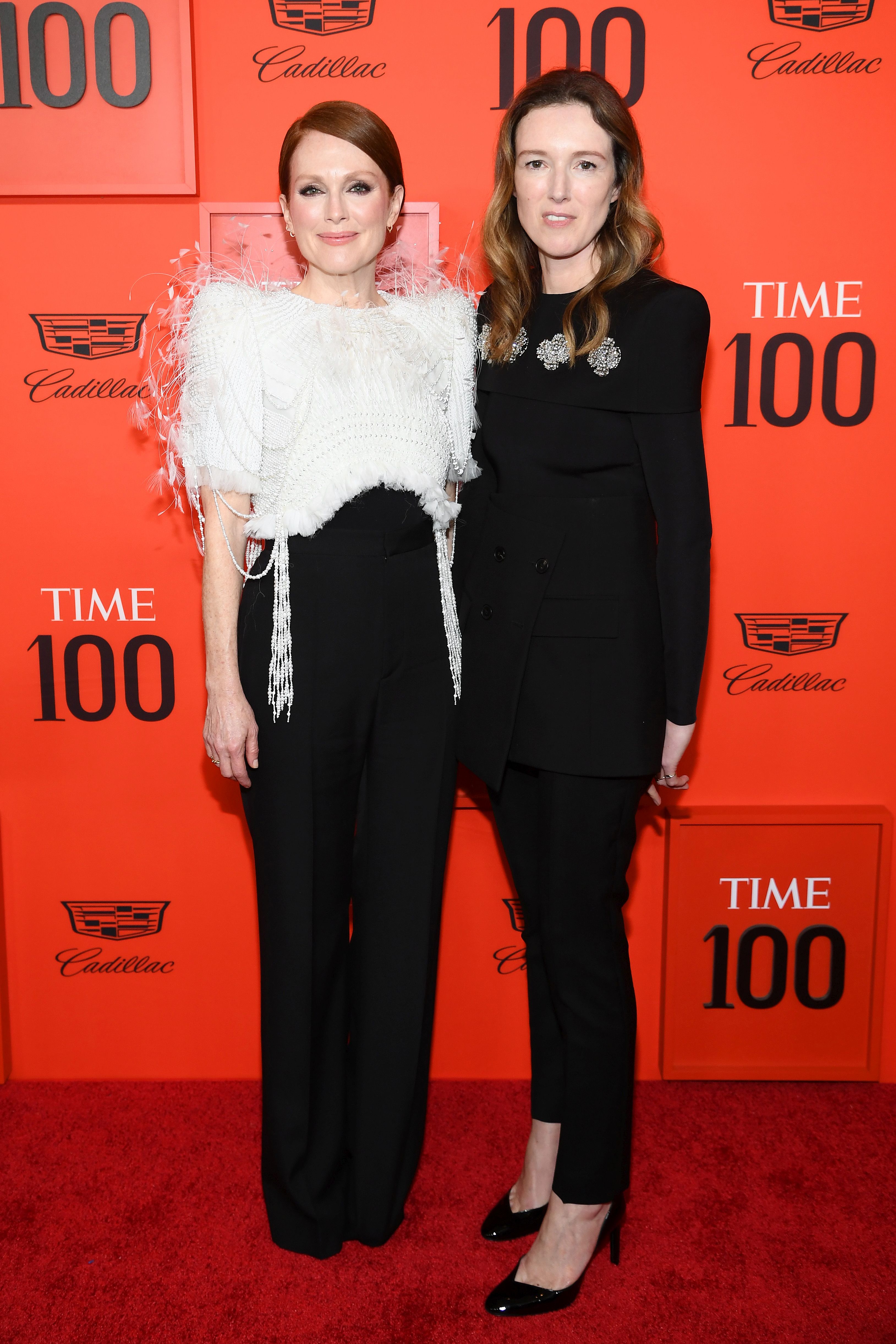 NEW YORK, NEW YORK – APRIL 23: Julianne Moore (L) and Clare Waight Keller attend the TIME 100 Gala 2019 Lobby Arrivals at Jazz at Lincoln Center on April 23, 2019 in New York City. (Photo by Dimitrios Kambouris/Getty Images for TIME)