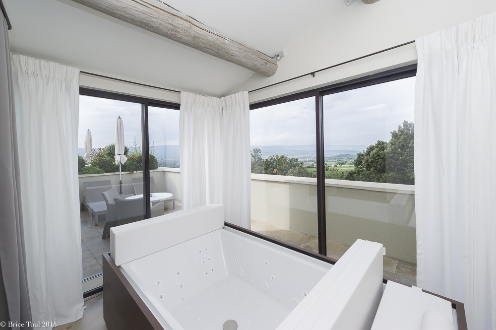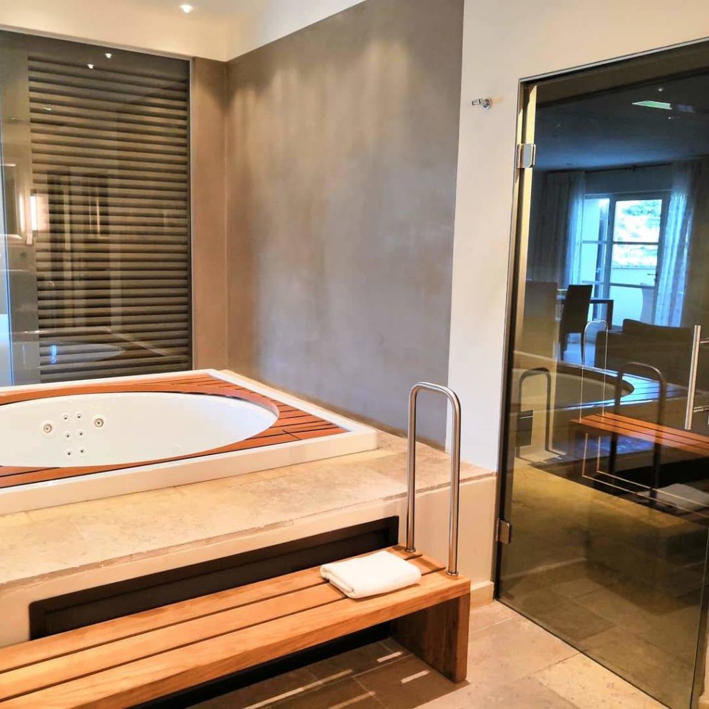 Jacuzzi à l’extérieur ou cabine Hammam deux places à l’intérieur, la Suite de Luxe Jacuzzi est le lieu de prédilection pour ceux qui souhaitent s’accorder un moment de relaxation dans un décor contemporain, élégant et authentique aux couleurs de la Provence.