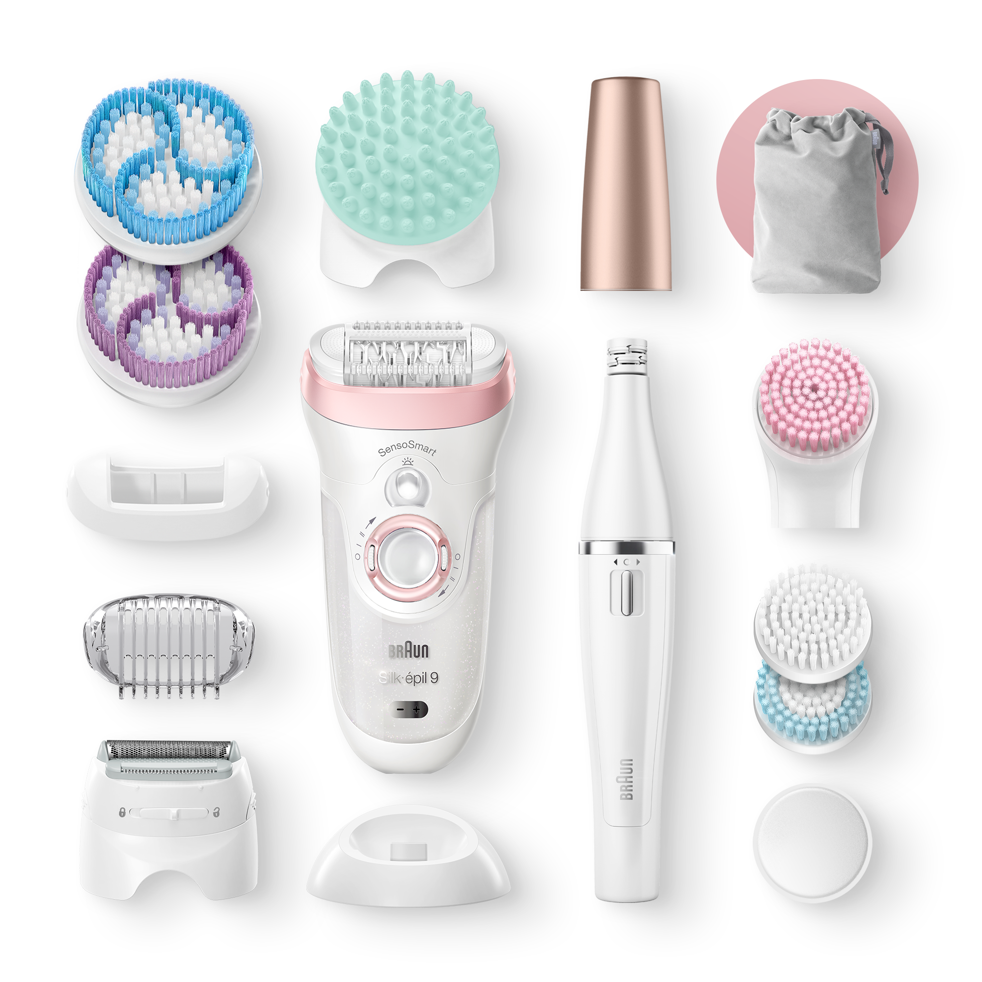 A l’intérieur de ce coffret se sont glissés l’épilateur le plus sophistiqué de la marque leader en épilation féminine en France, le Silk-épil 9, ainsi que le FaceSpa, un appareil permettant de réaliser 5 soins pour le visage.