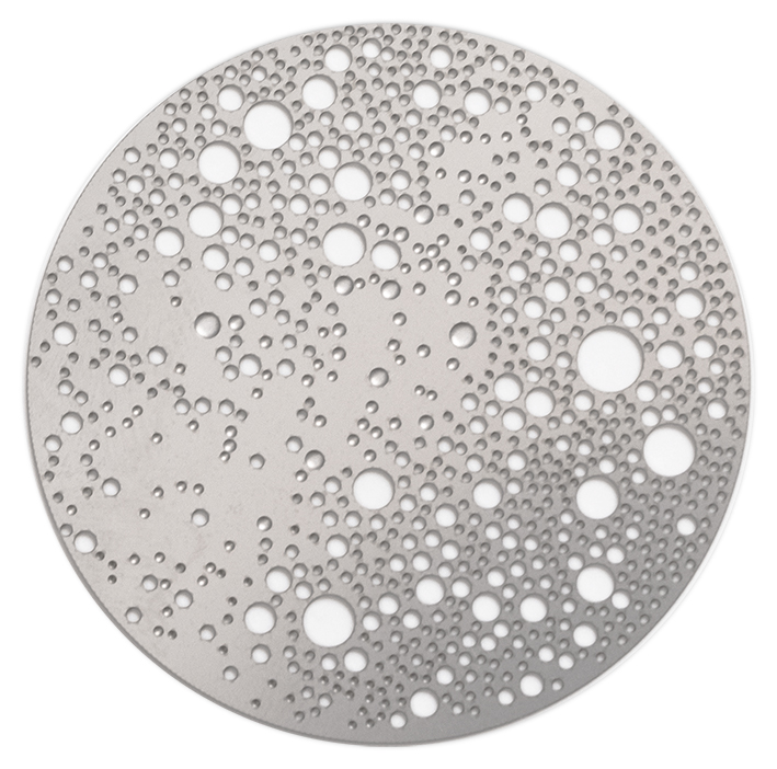 Lunar est une collection de broches stellaires, dont les effets de texture évoquent un relief astral, aux cratères abstraits.