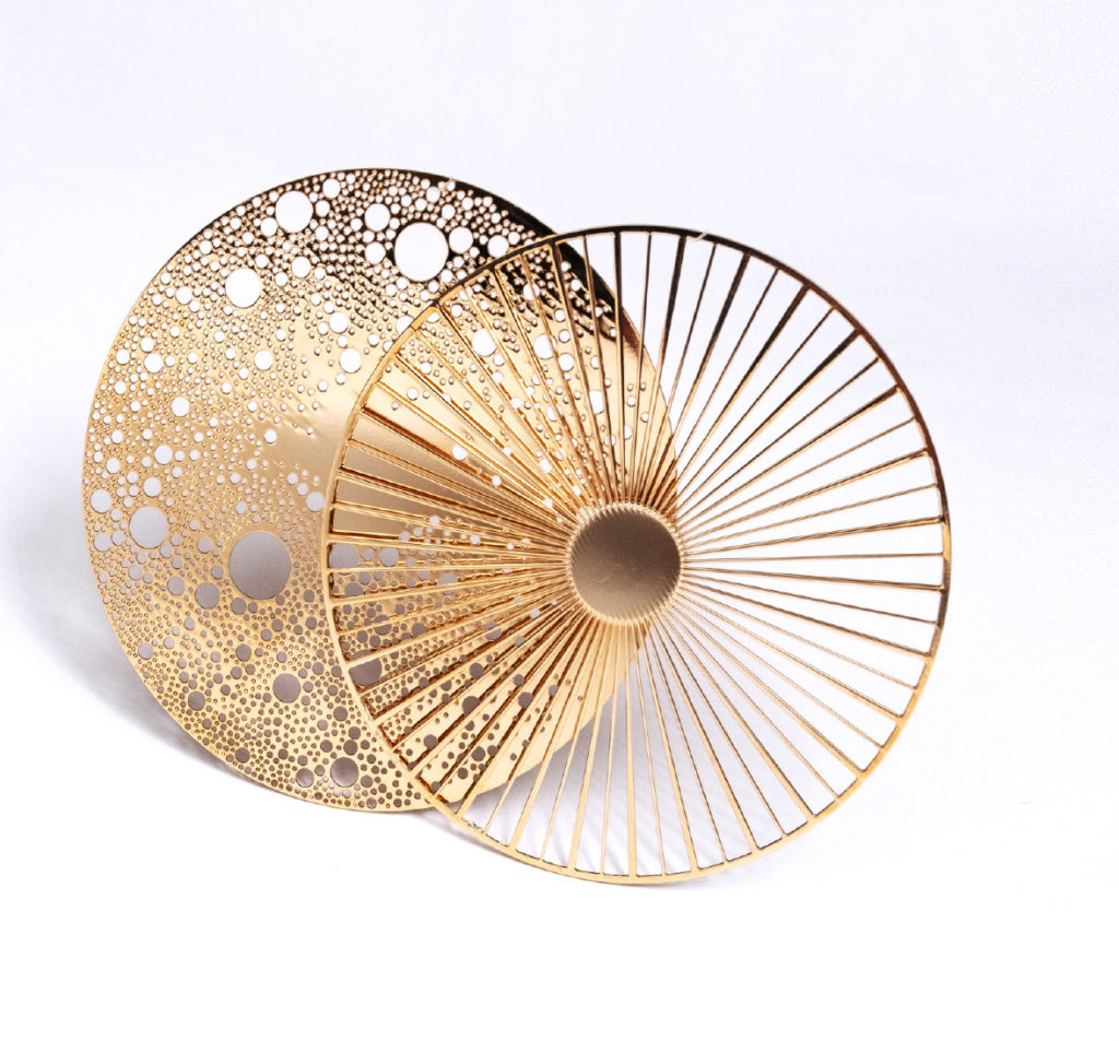LES BROCHES SOLAR ET LUNAR DE CONSTANCE GUISSET SOLAR Solar est une collection de broches, disponibles en deux tailles et quatre finitions : doré, argenté mat, argenté brillant, or rose. Géométrique et cinétique, chaque broche déploie ses rayons avec délicatesse. Très légère, Solar s’attache à l’aide d’un aimant, sans abimer les vêtements.
