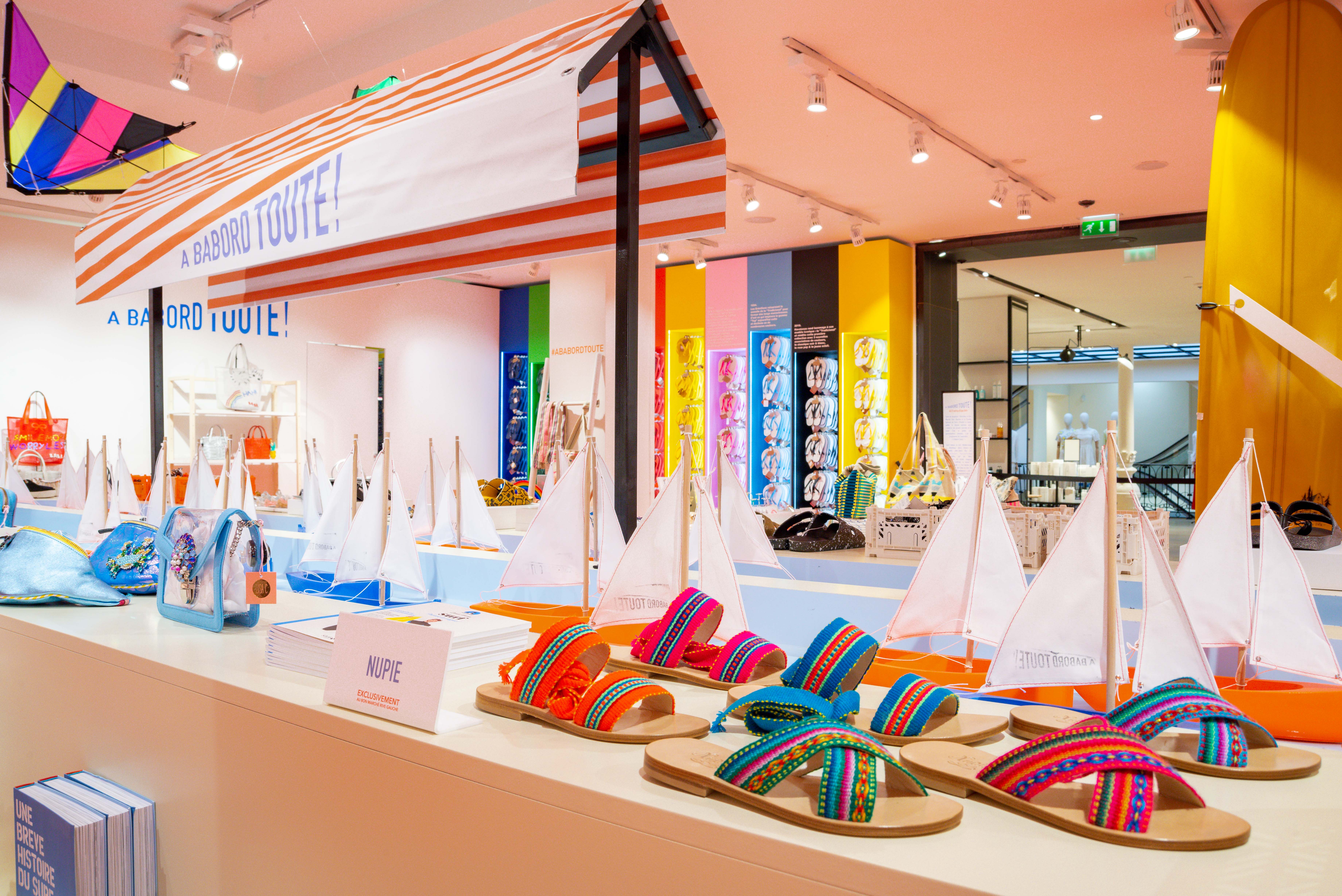 Un sac en paille, un bijou de style grec, des nu-pieds flashy, un chapeau de marin breton, une étole imprimée, une bouée pailletée, des parfums de glaces exclusifs, la sélection est éclectique et n’a qu’un objectif : donner des airs de vacances au quotidien. Et pour rendre l’expérience shopping unique, le Bon Marché offre toujours plus de possibilités de personnalisation.