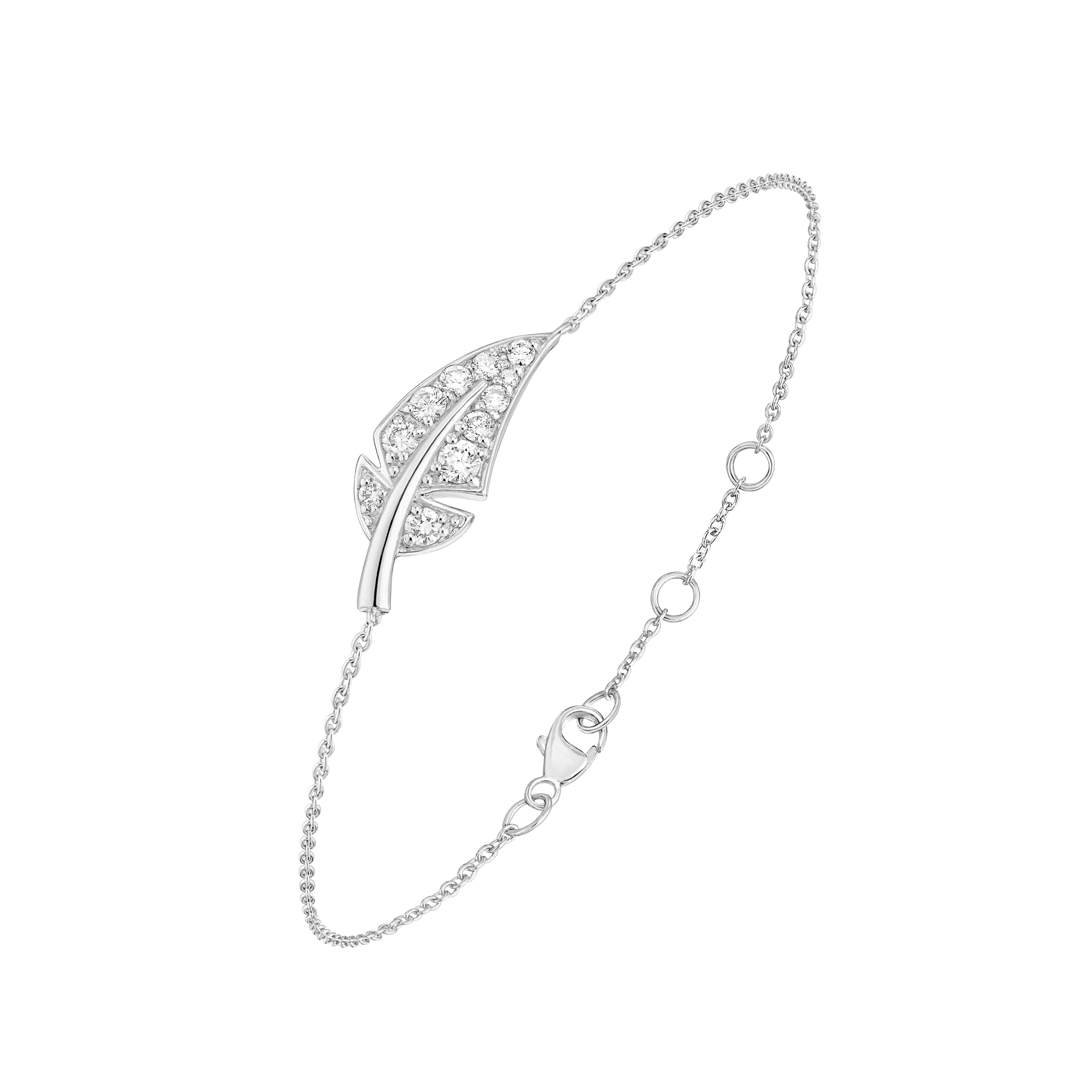 12 pièces composent ces nouvelles collections. Montées sur or blanc, elles se déclinent autour de deux thèmes iconiques et intemporels de la joaillerie, la plume et le nœud.