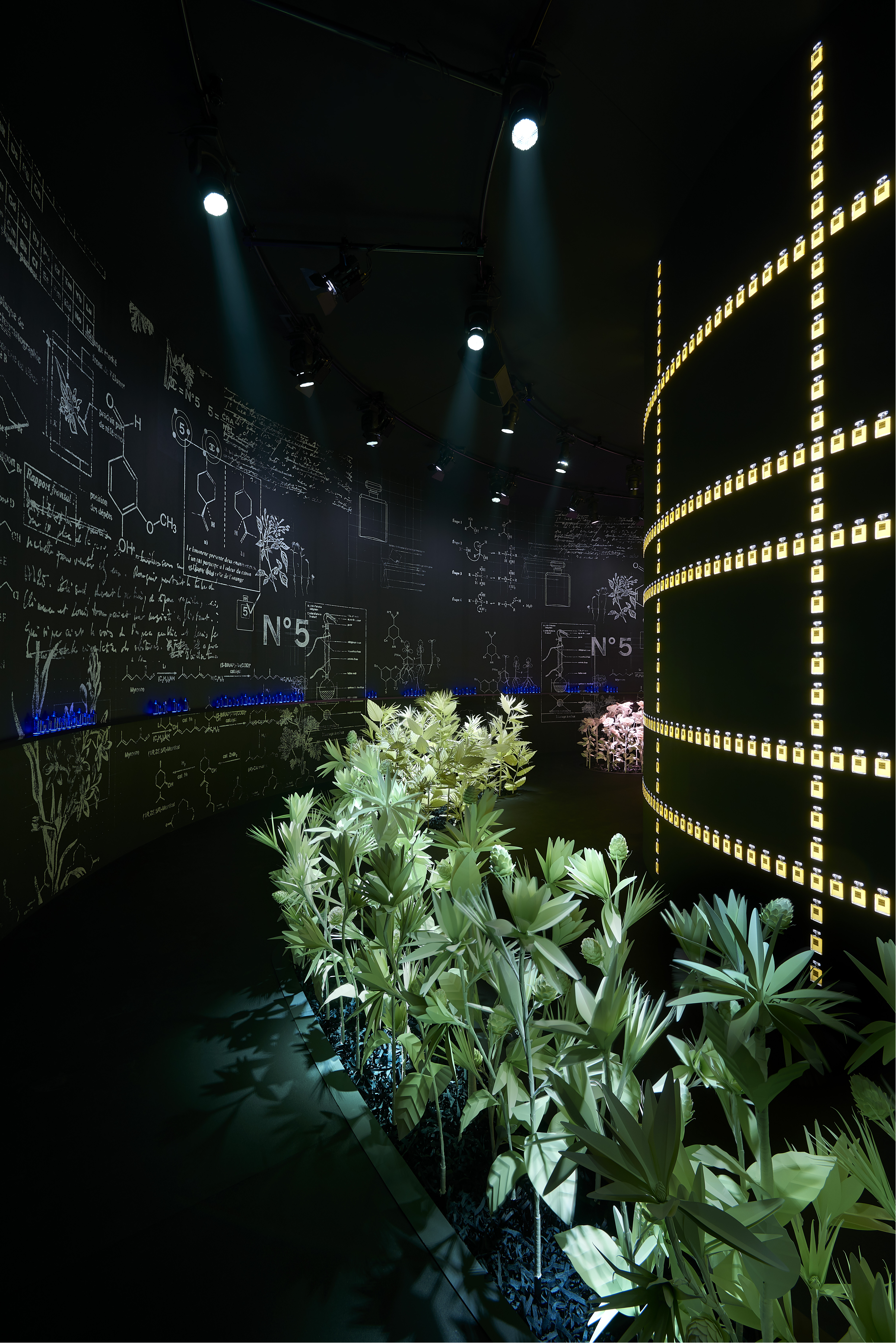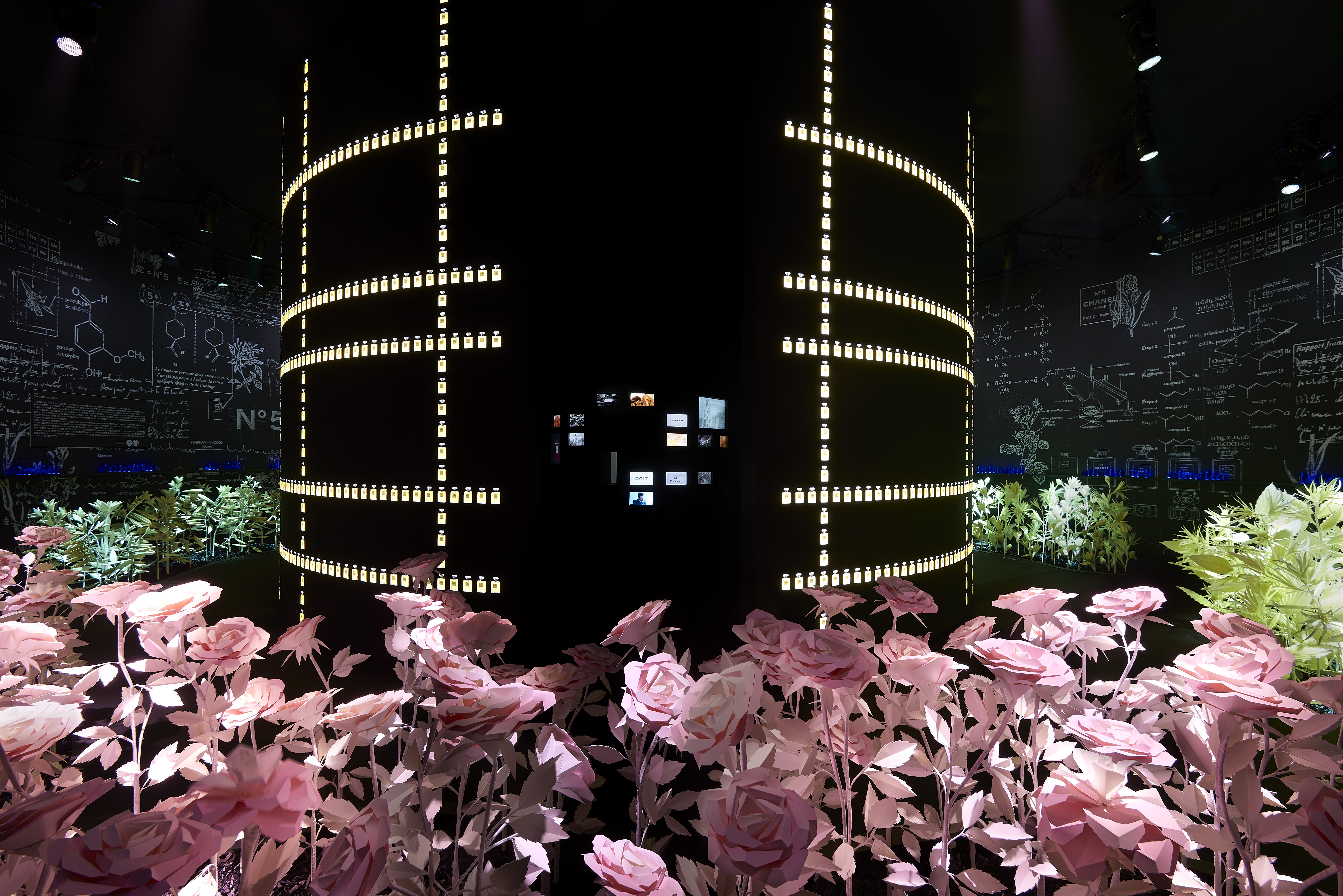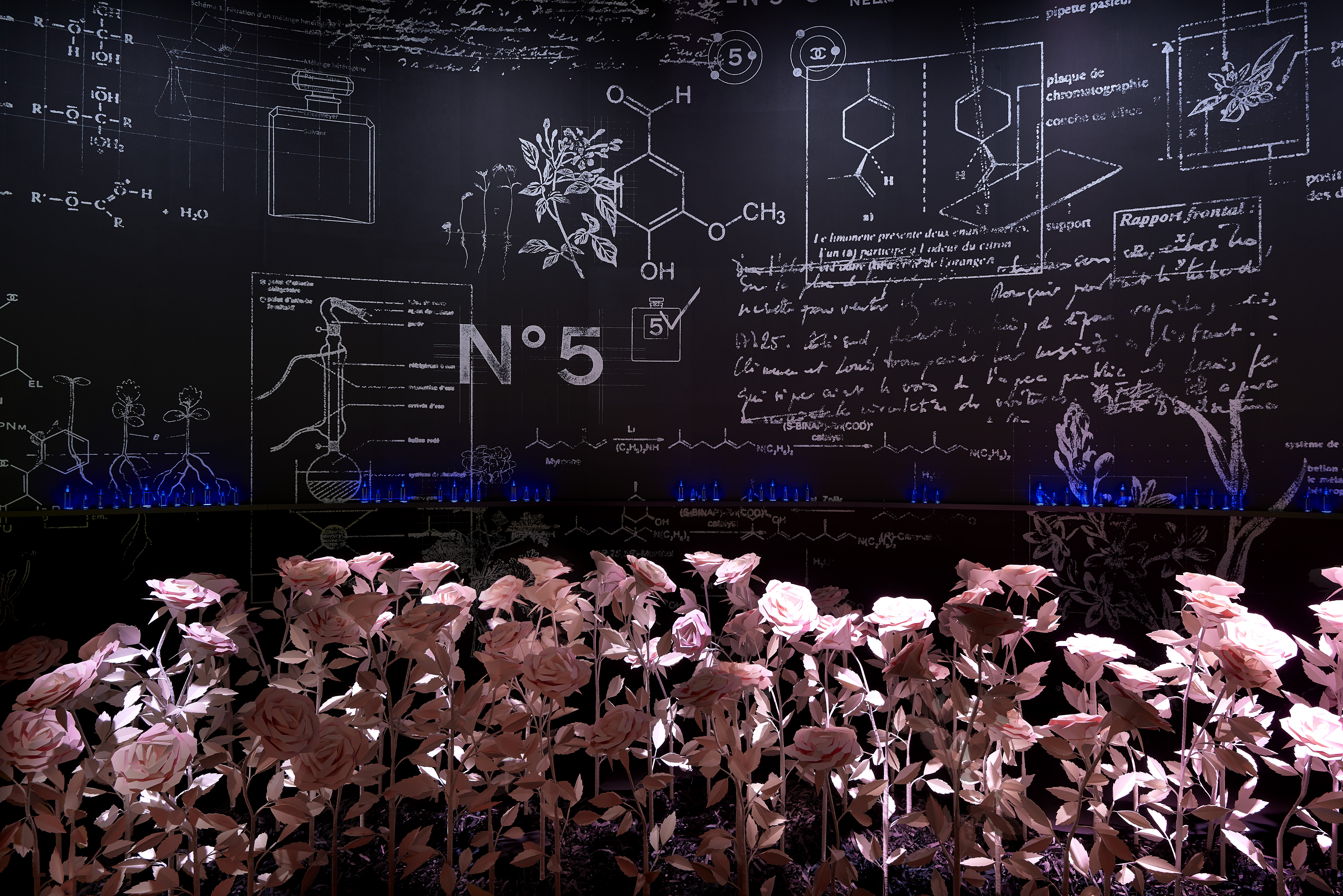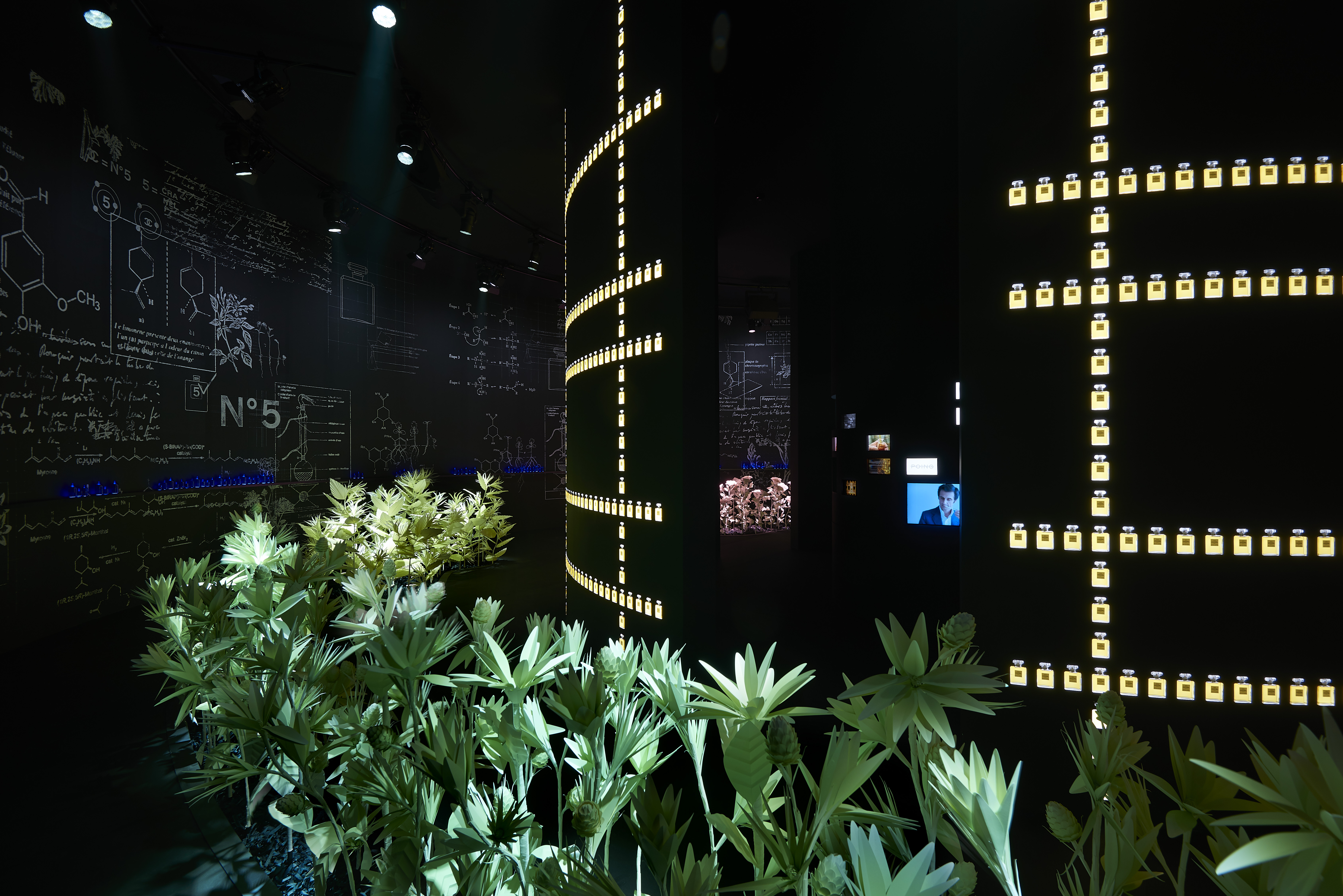 Cet intitulé, sésame de l’exposition, invite à la découverte des trois principaux univers créatifs de CHANEL : la Haute Couture réinventée par Karl Lagerfeld, le parfum CHANEL N°5 créé en 1921 et la Haute Joaillerie avec la réédition de « Bijoux de Diamants », unique collection imaginée par Gabrielle Chanel en 1932.