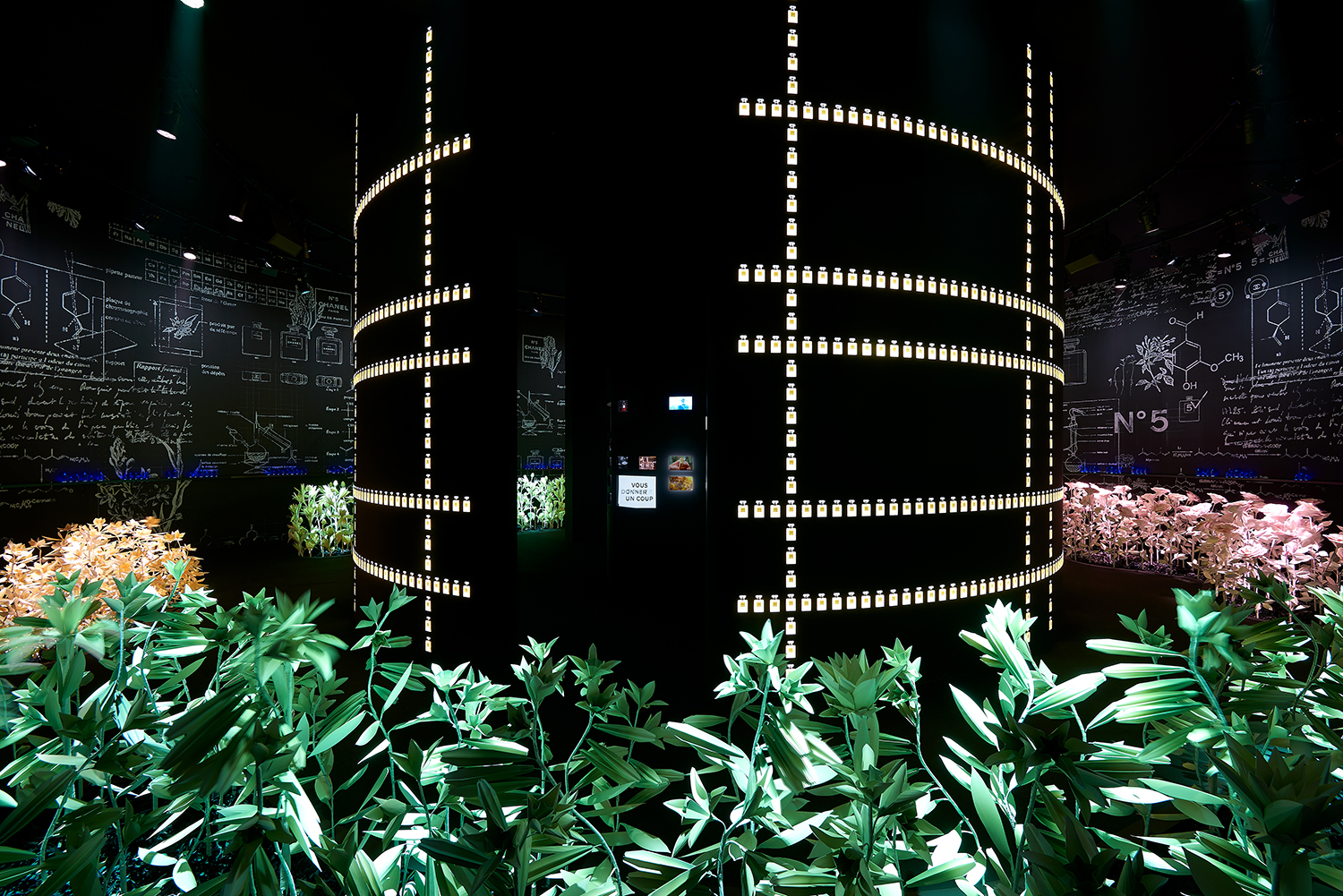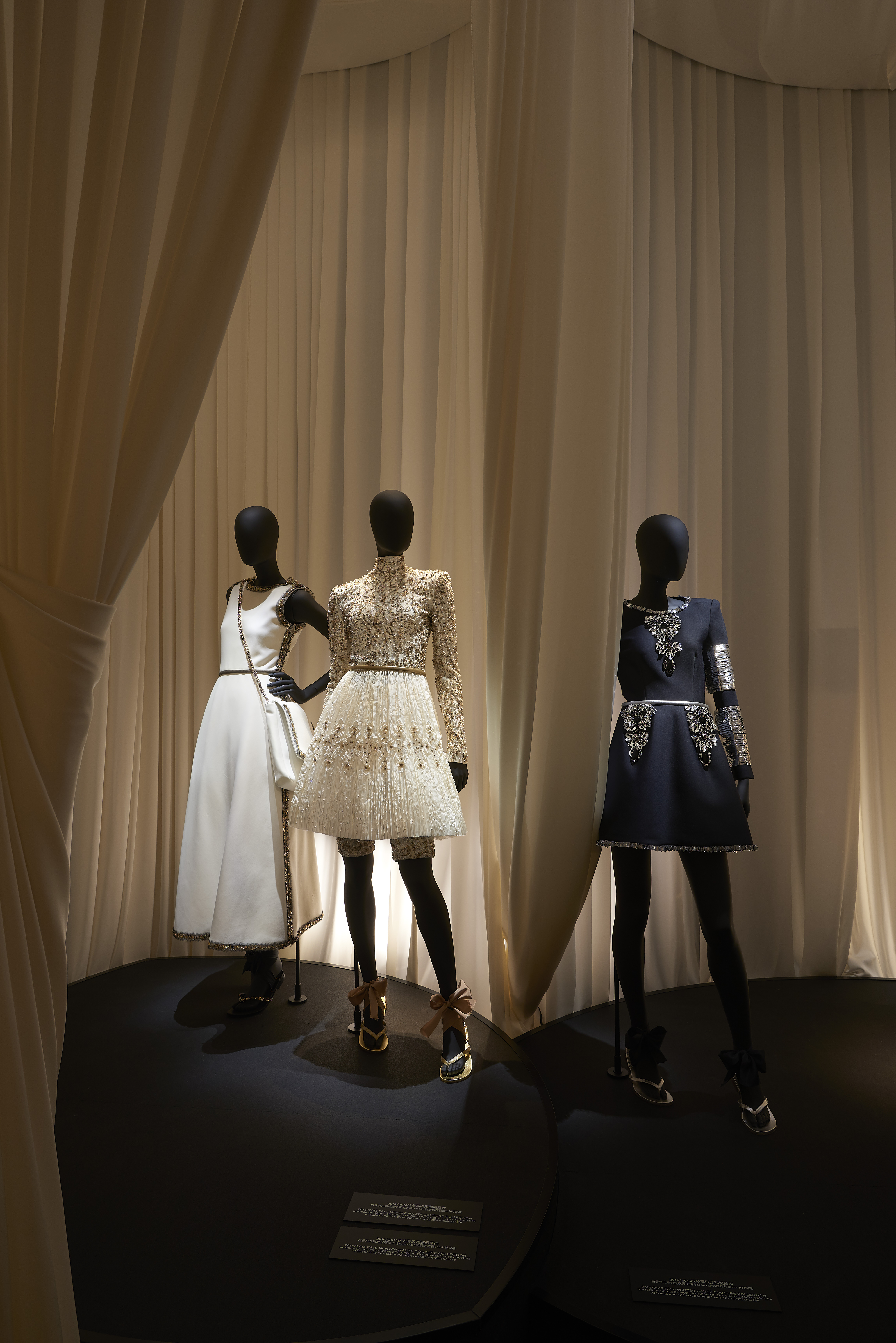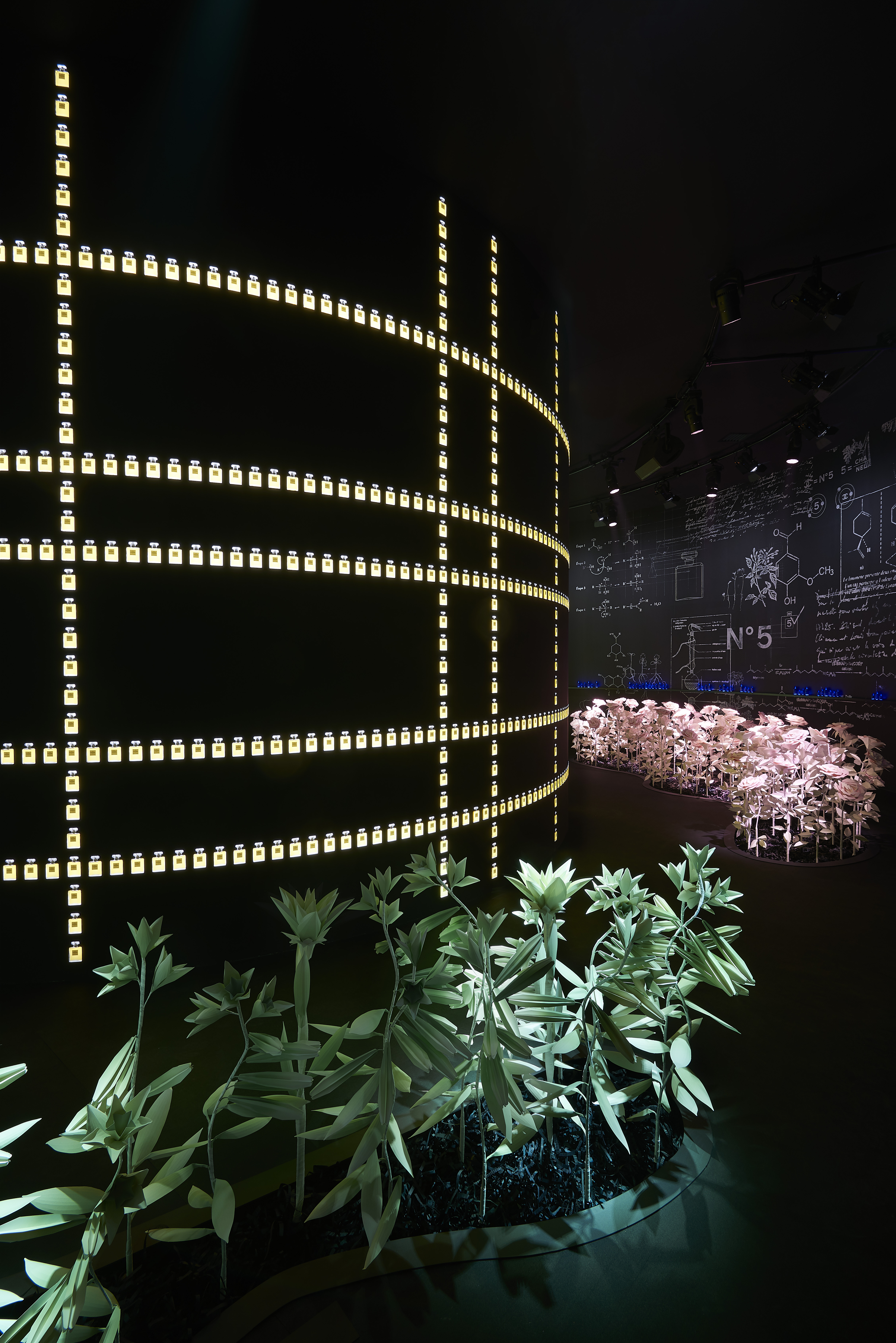 Cet intitulé, sésame de l’exposition, invite à la découverte des trois principaux univers créatifs de CHANEL : la Haute Couture réinventée par Karl Lagerfeld, le parfum CHANEL N°5 créé en 1921 et la Haute Joaillerie avec la réédition de « Bijoux de Diamants », unique collection imaginée par Gabrielle Chanel en 1932.
