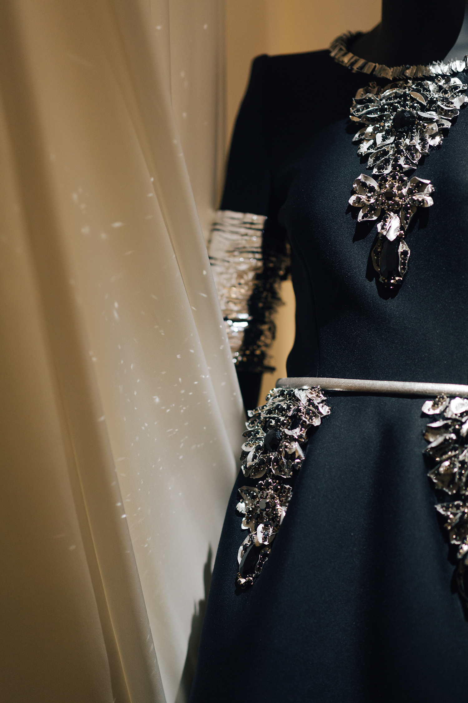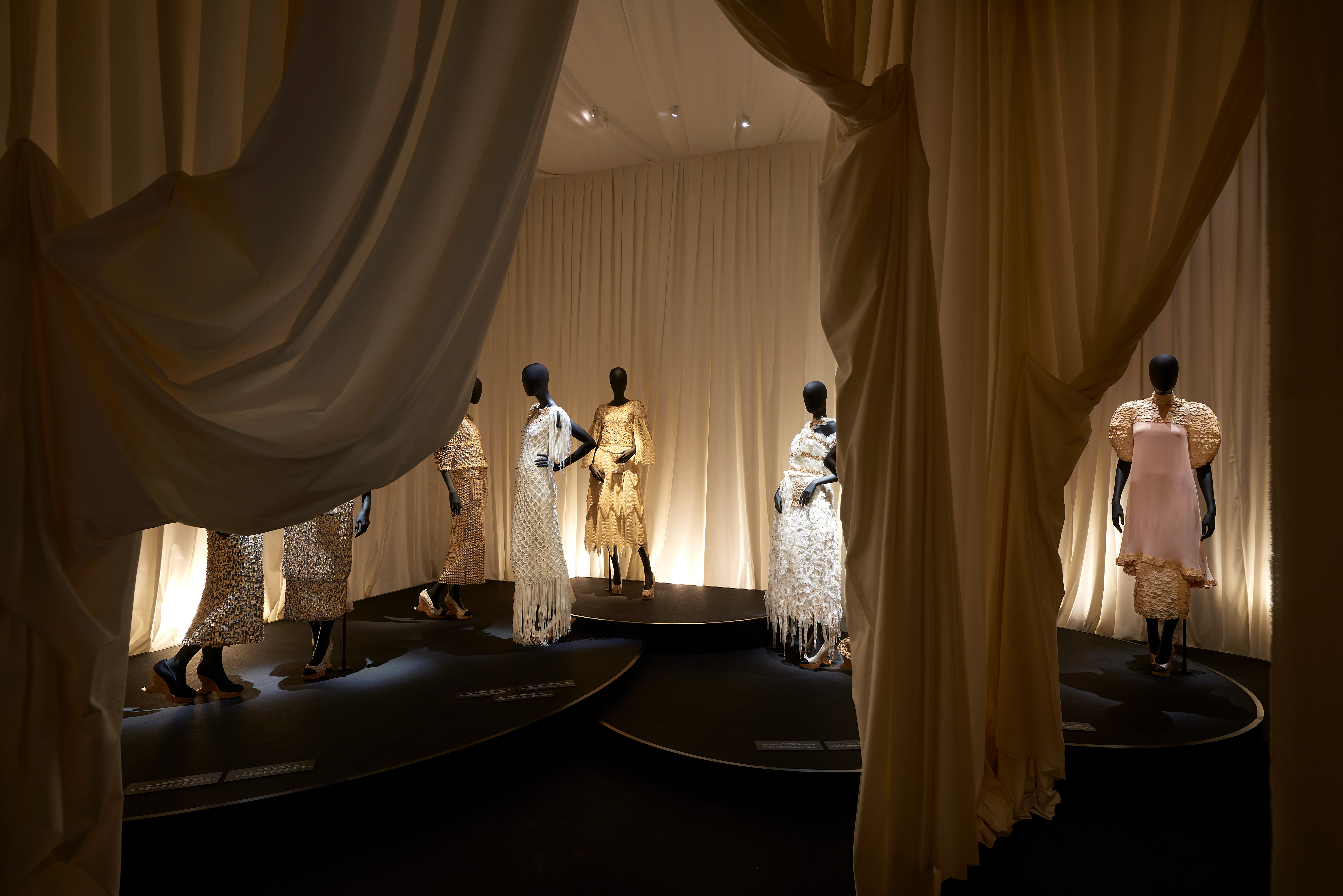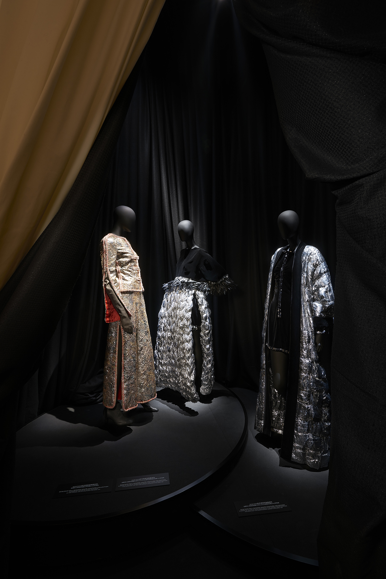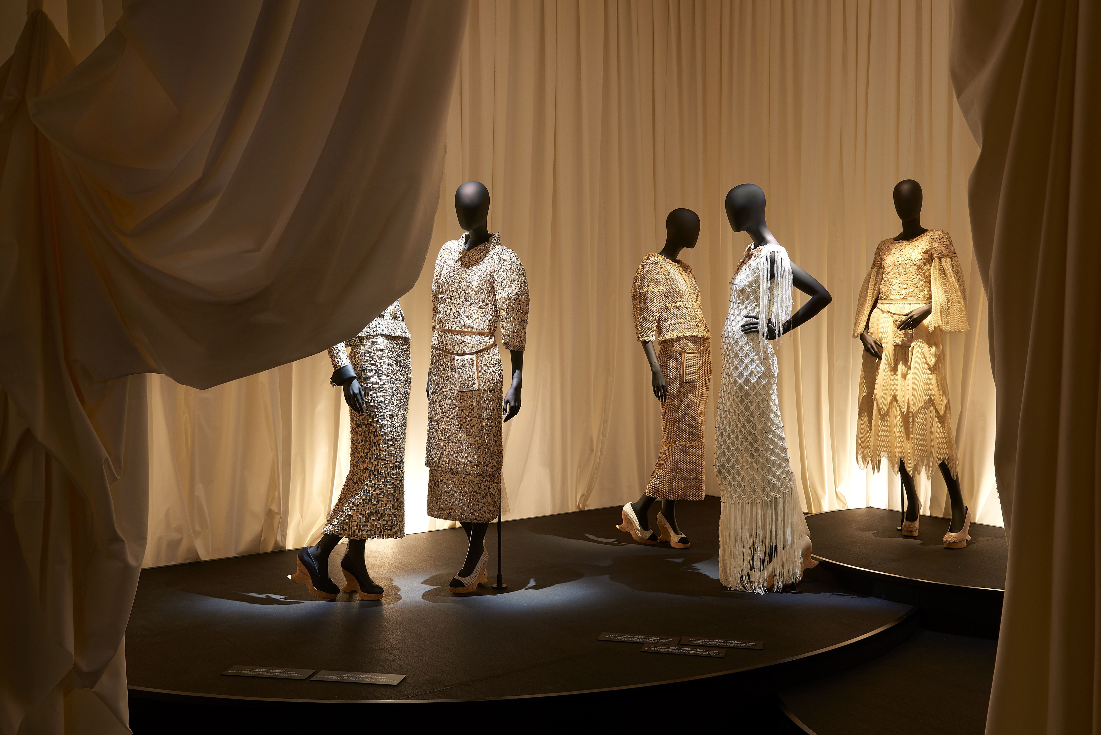 Cet intitulé, sésame de l’exposition, invite à la découverte des trois principaux univers créatifs de CHANEL : la Haute Couture réinventée par Karl Lagerfeld, le parfum CHANEL N°5 créé en 1921 et la Haute Joaillerie avec la réédition de « Bijoux de Diamants », unique collection imaginée par Gabrielle Chanel en 1932.