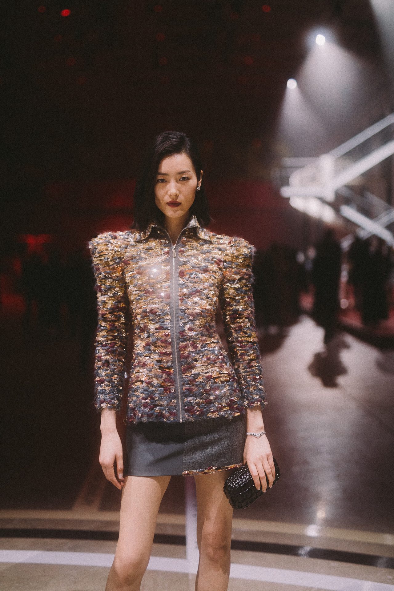 Brodée, tressée, surpiquée, mélangée à l’organza, la feuille d’aluminium prête sa légèreté et son éclat métallique à de somptueux manteaux, pyjamas du soir et jupes longues de la collection Haute Couture Automne-Hiver 2018/19 de CHANEL évoquant ainsi la palette des gris miroitants des toits de Paris. L’aluminium se fait ici précieux, insufflant ainsi à la silhouette une modernité inattendue.