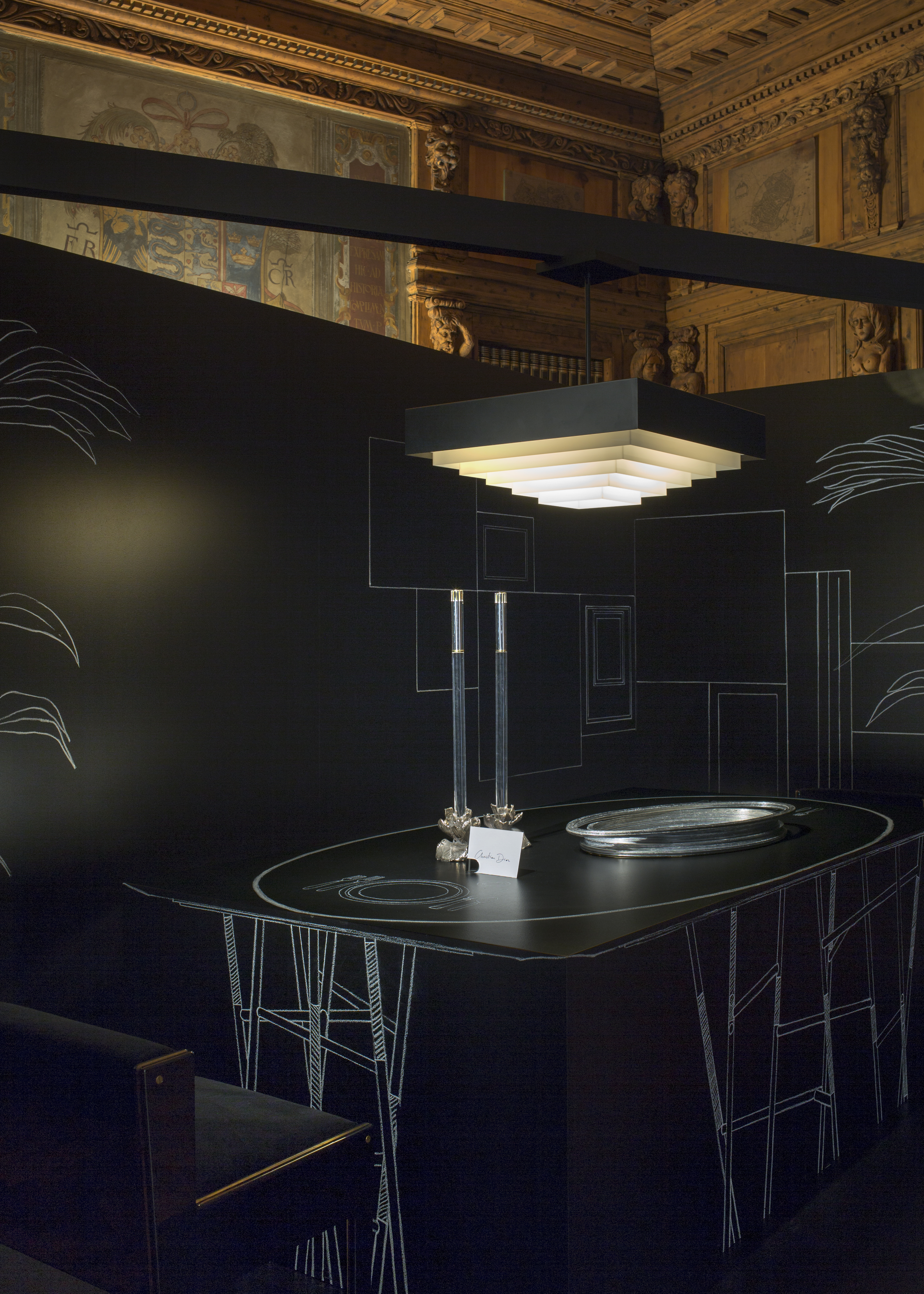 Disponible uniquement sur commande – durant un an – cette collection composée de vases, de plateaux, d’un chandelier, d’un briquet et d’un cendrier, de marque-places, de cadres et d’un porte-parapluies, était présentée, en avant-première, du 9 au 11 avril, à Milan, dans la superbe Casa degli Atellani.