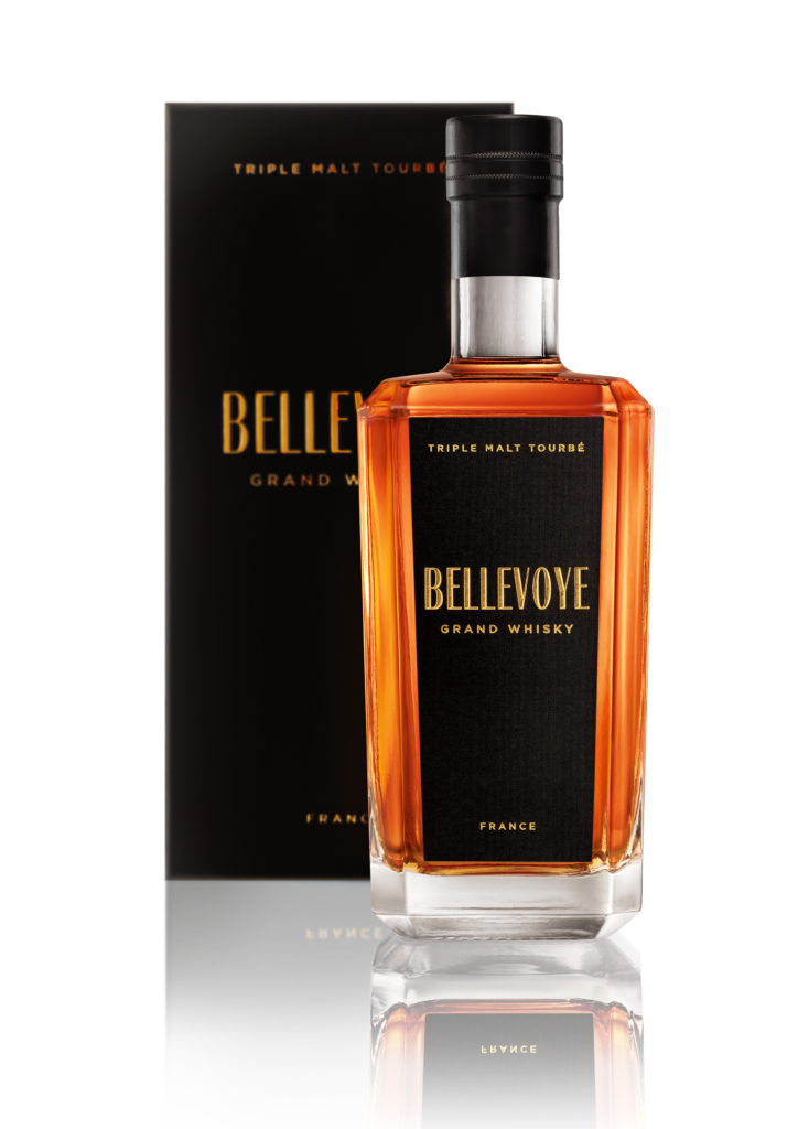 BELLEVOYE NOIR est le 1er Triple Malté tourbé 100% Français, il est issu d’un assemblage des 3 meilleurs Single Malt tourbés de France (Nord, Alsace et Lorraine). Dans chacune des distilleries sélectionnées, les whiskies sont élevés de 5 à 10 ans en barriques de chêne Français, une fois assemblés, l’élevage final dure de 9 à 12 mois en barriques neuves de chêne français dont l’origine du bois et la qualité du grain sont spécifiques au Bellevoye Noir. La chauffe particulière de ces barriques relève d’un procédé inédit mis au point par l’équipe Bellevoye.