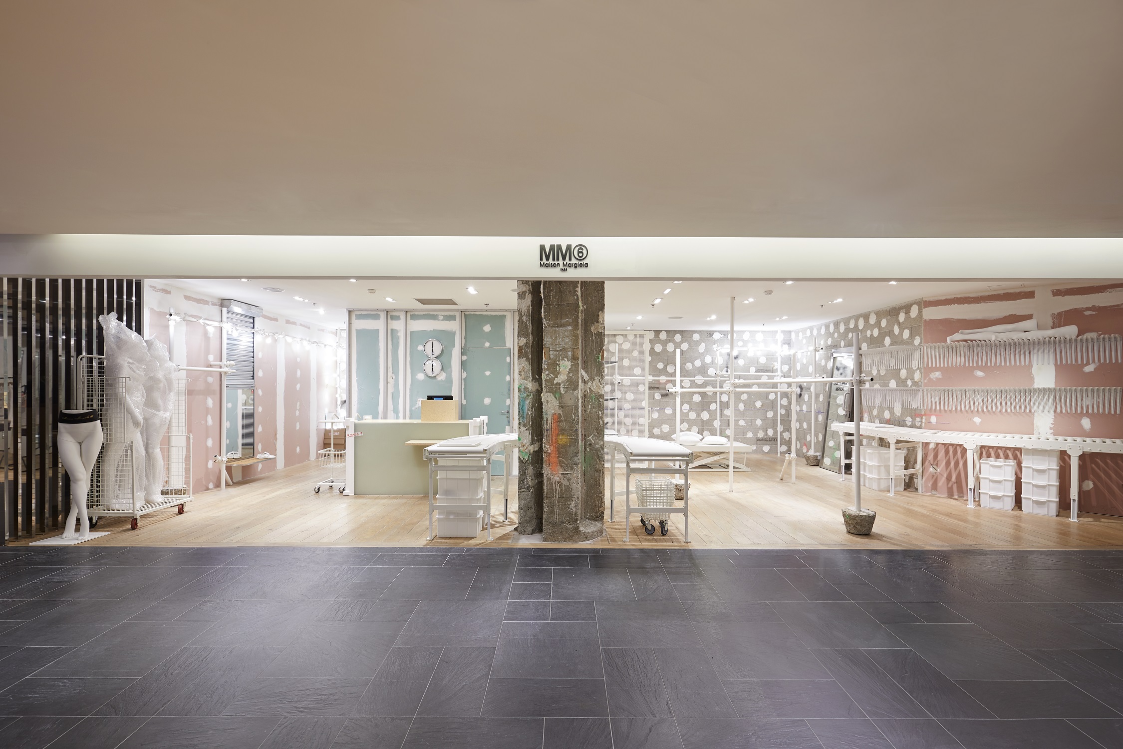 Avec ce lieu singulier, MM6 Maison Margiela remet en jeu son sens de l’innovation, repousse les limites et joue avec la matérialité. Cet espace est aussi une allégorie de la mode qui évolue sans cesse : elle offre un environnement vivant, transitionnel, cadre idéal pour les collections à venir.