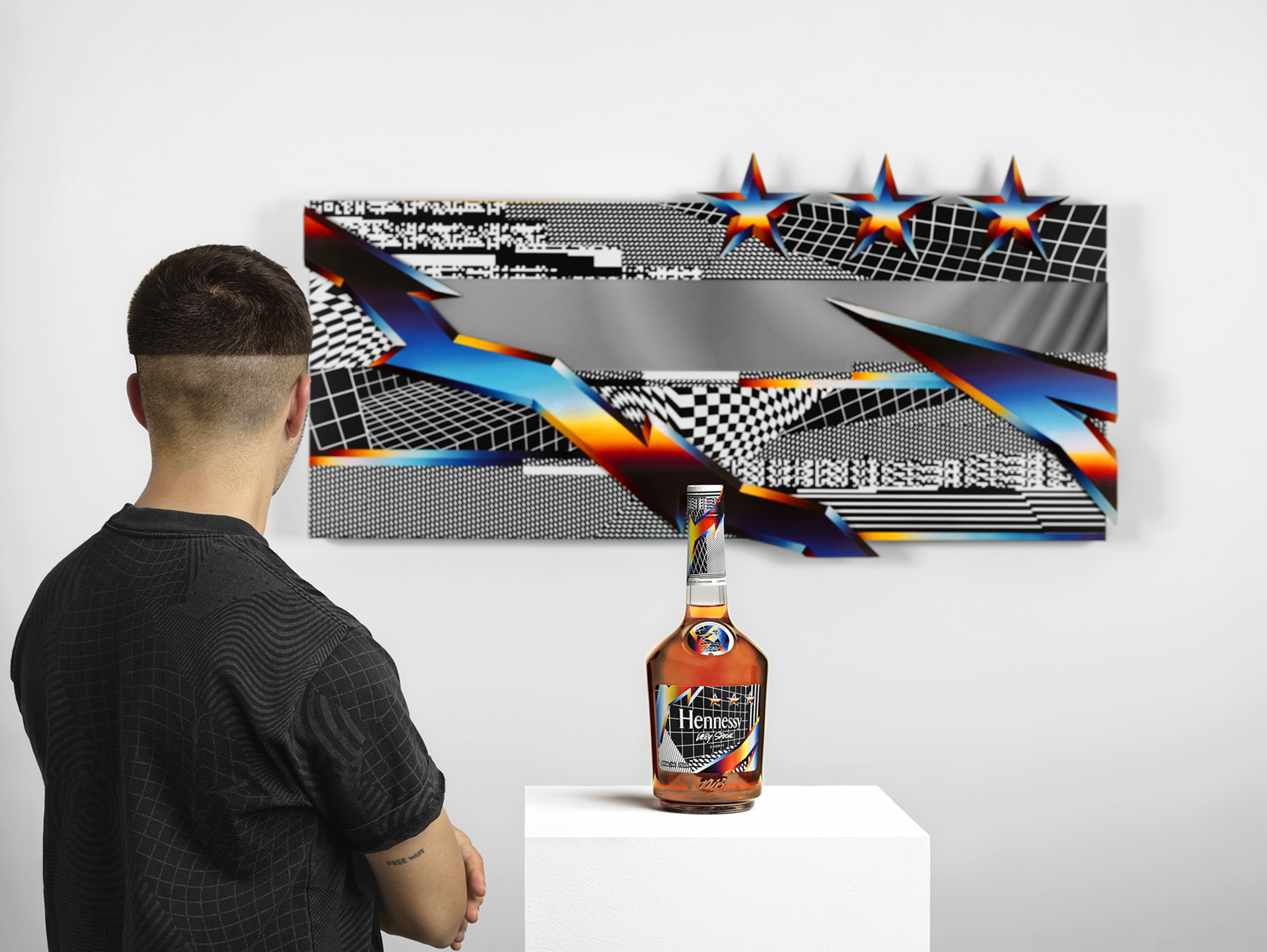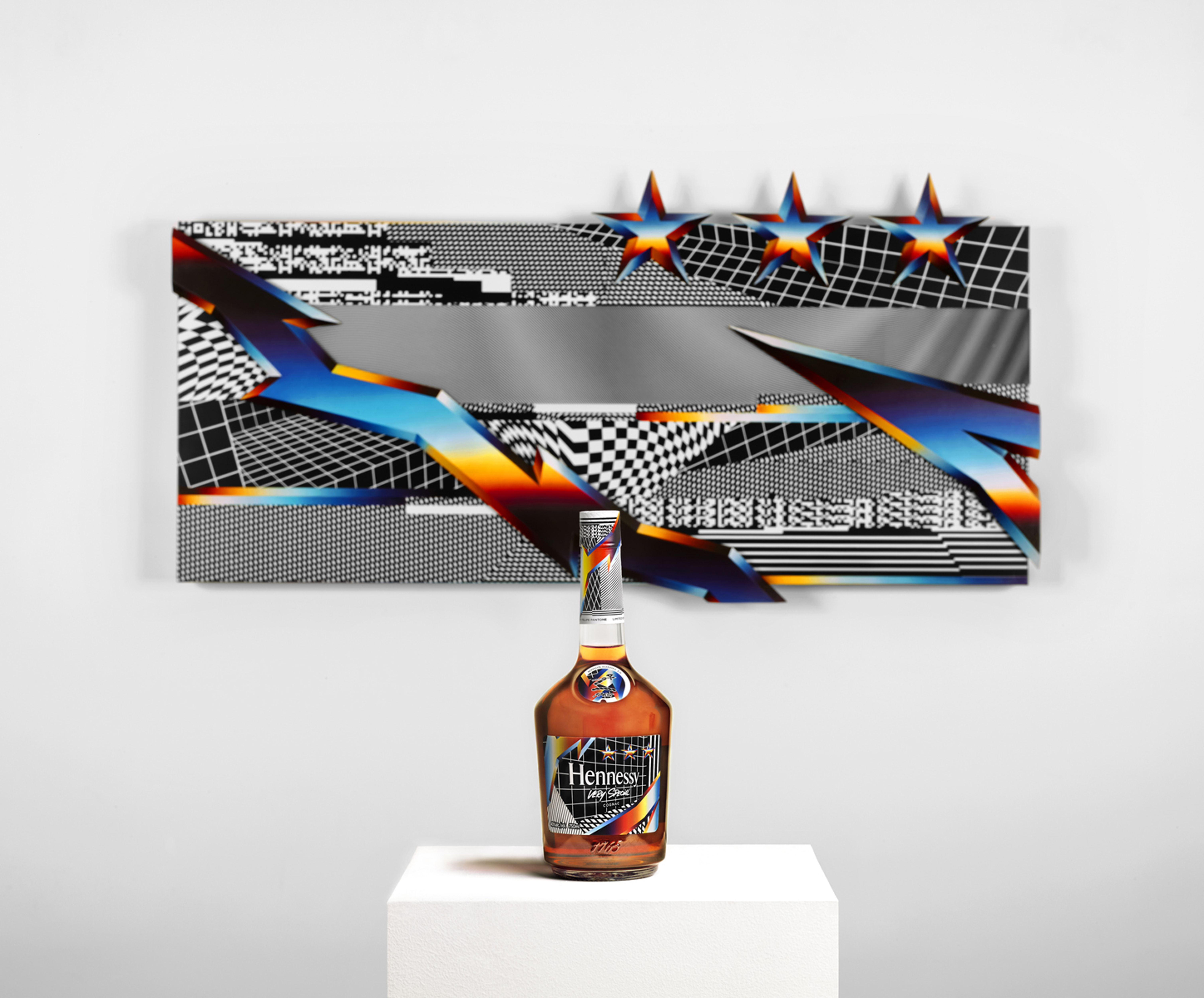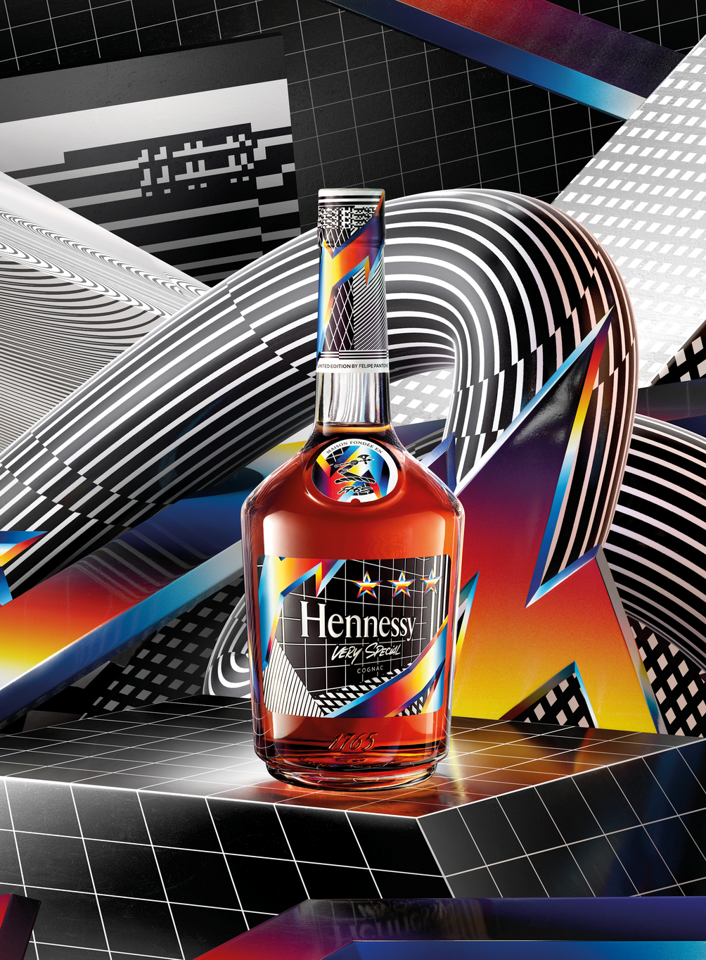 Associant certains de ses motifs favoris à ceux qu’il a collecté au sein des archives de la Maison Hennessy, Felipe Pantone marque de son empreinte l’Edition Limitée de Hennessy Very Special : reprenant le motif des trois étoiles, utilisé par le passé par Maurice Hennessy, il associe cet élément avec un éclair de couleur, symbolisant la vitesse de l’ère digitale.