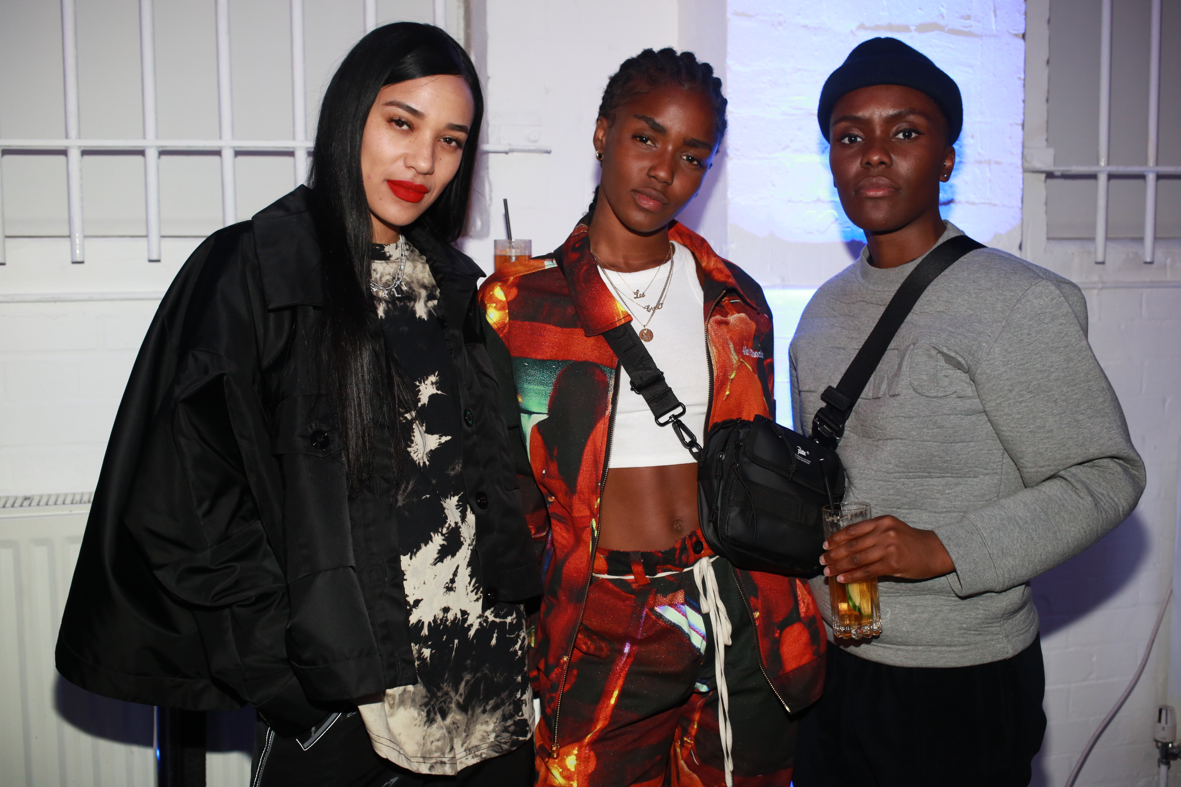 - LONDON, ENGLAND – JUNE 08: (L-R) Poppy Ajudha, Amesh Wijesekera and a guest attend the celebration by Mercedes-Benz and Lena Waithe for How To in London on June 08, 2019 in London, England. (Photo by Darren Gerrish/WireImage for Mercedes-Benz and Lena Waithe )