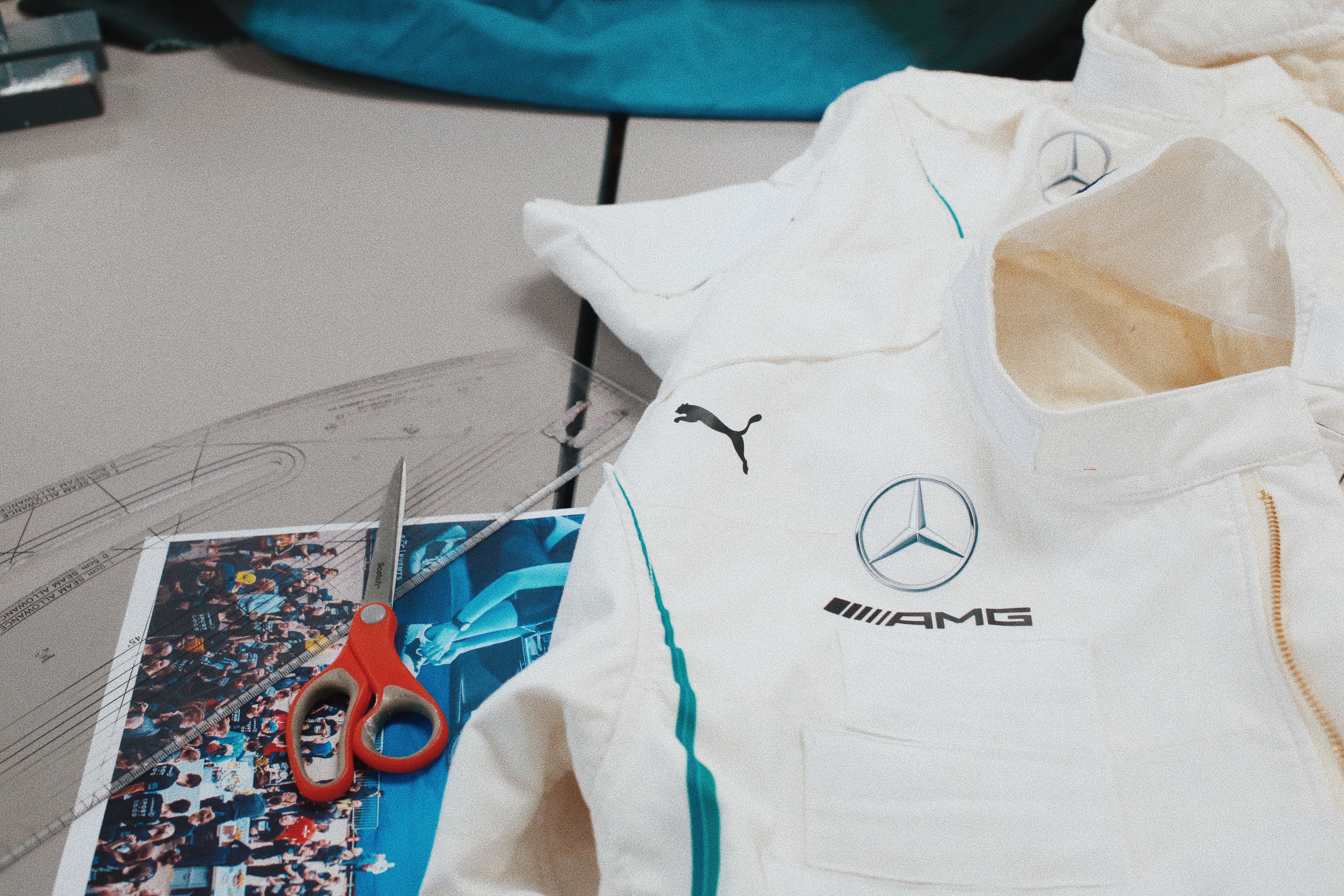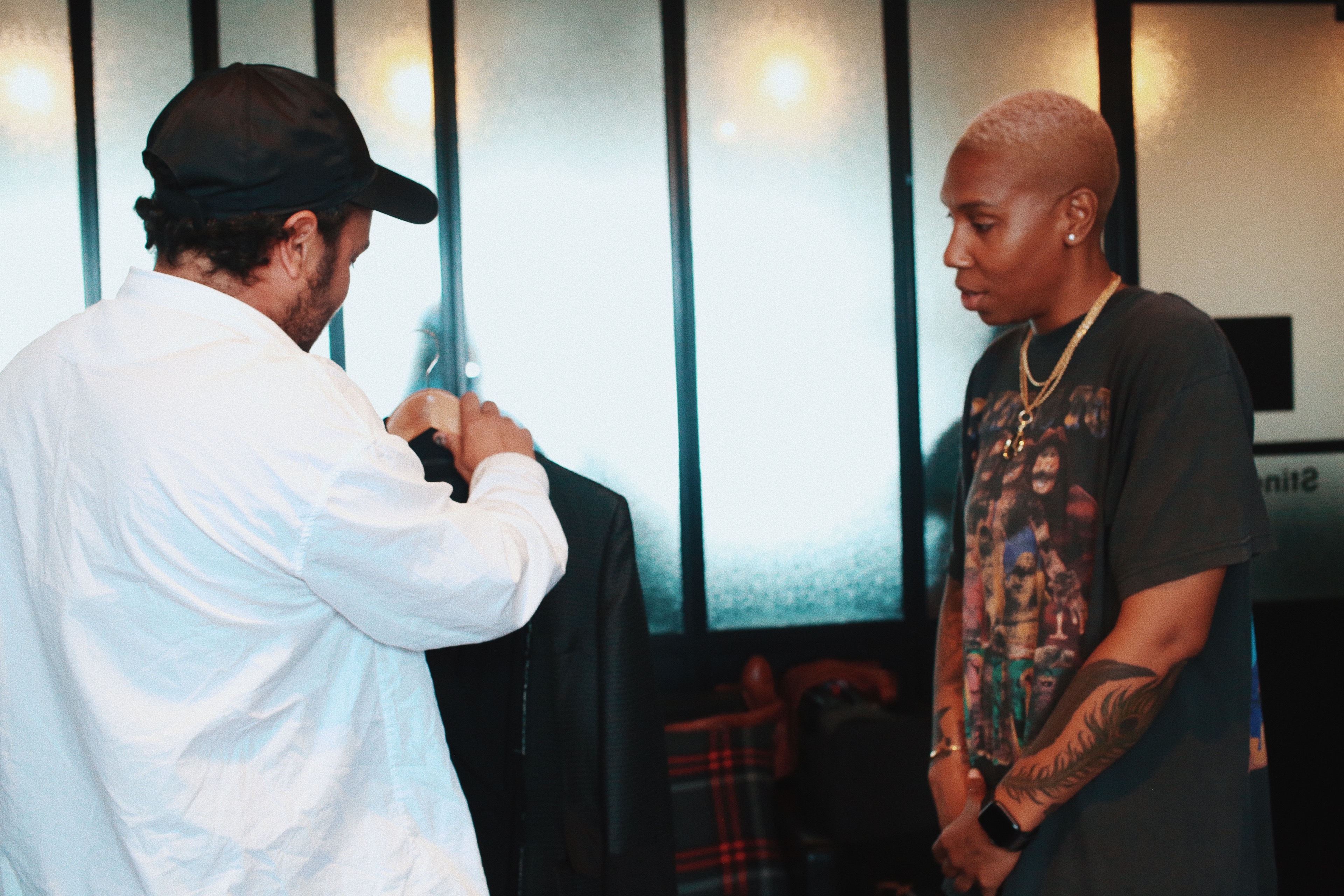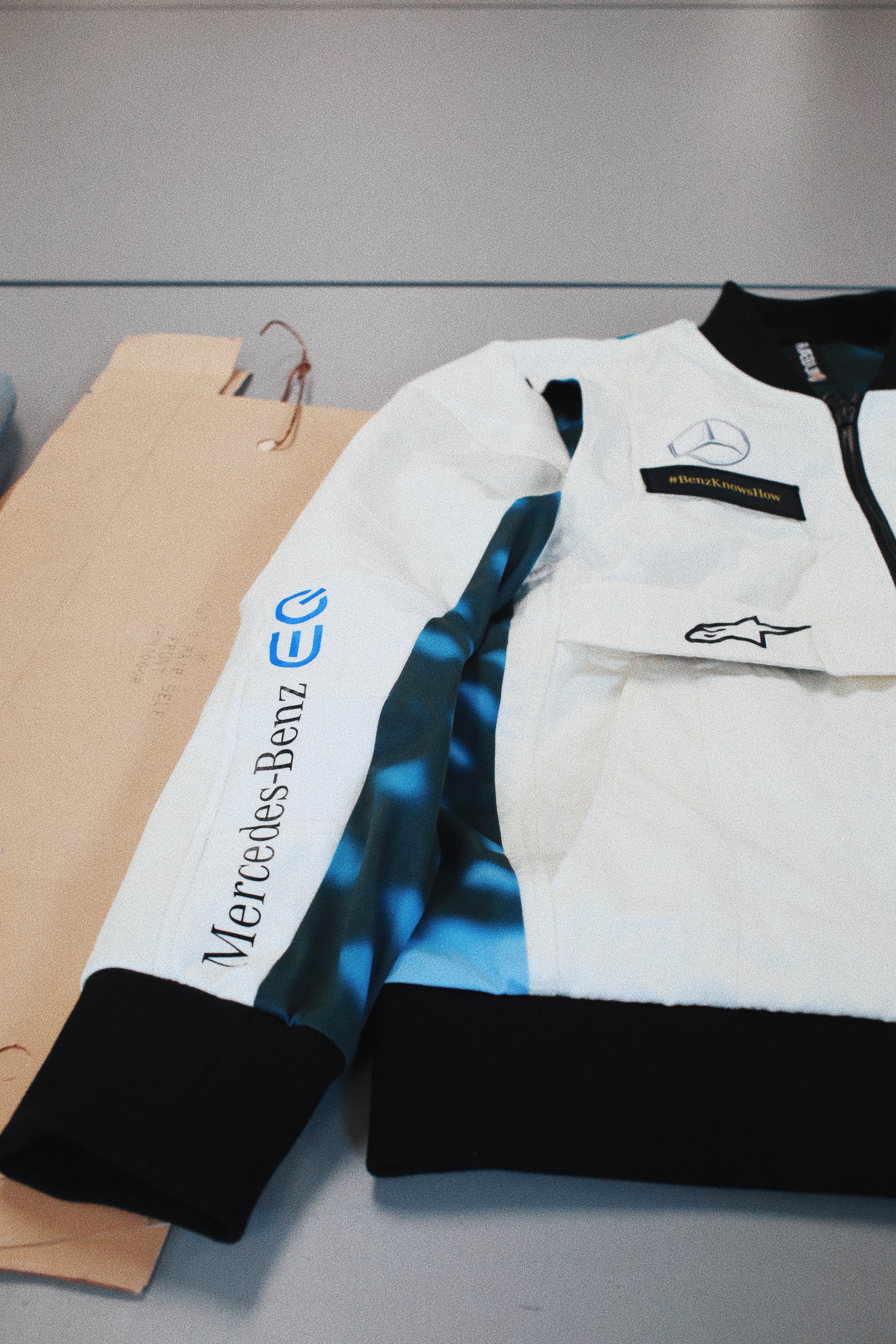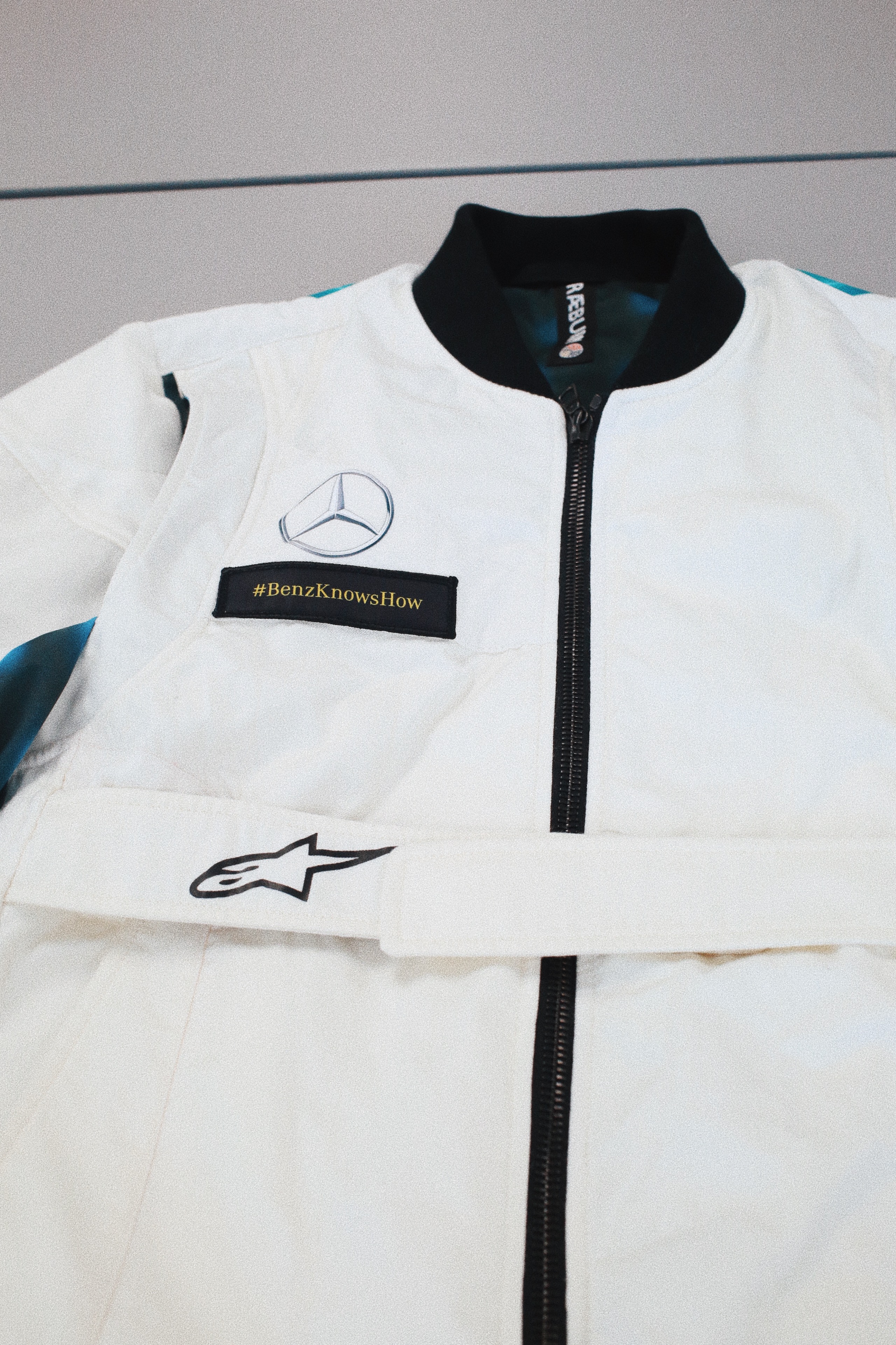 L’initiative How To de Waithe témoigne également de la puissance du nombre. Conjointement avec Mercedes-Benz, Lena s’est laissé guider, dans le cadre de sa mission, par Christopher Raeburn, directeur artistique de sa propre marque RÆBURN, directeur artistique de Timberland et surtout expert en upcycling. Cette année marque le 125e anniversaire de la présence de Mercedes-Benz dans la compétition automobile ; inspiré par cet héritage et par sa future participation à la Formule E, le constructeur automobile a fourni des tenues des équipes de Formule 1 et de Formule E que Raeburn a réutilisé pour en faire un coupe-vent unique pour Waithe. Le créateur néerlandais Duran Lantink a lui aussi aidé Lena Waithe à approfondir sa maîtrise de l’upcycling. Il a ainsi réalisé un « collage » à partir de plusieurs pièces préexistantes de la garde-robe de Lena (technique pour laquelle Lantink est connu et qu’il utilise pour sa marque éponyme) afin de créer pour elle un style entièrement sur-mesure.