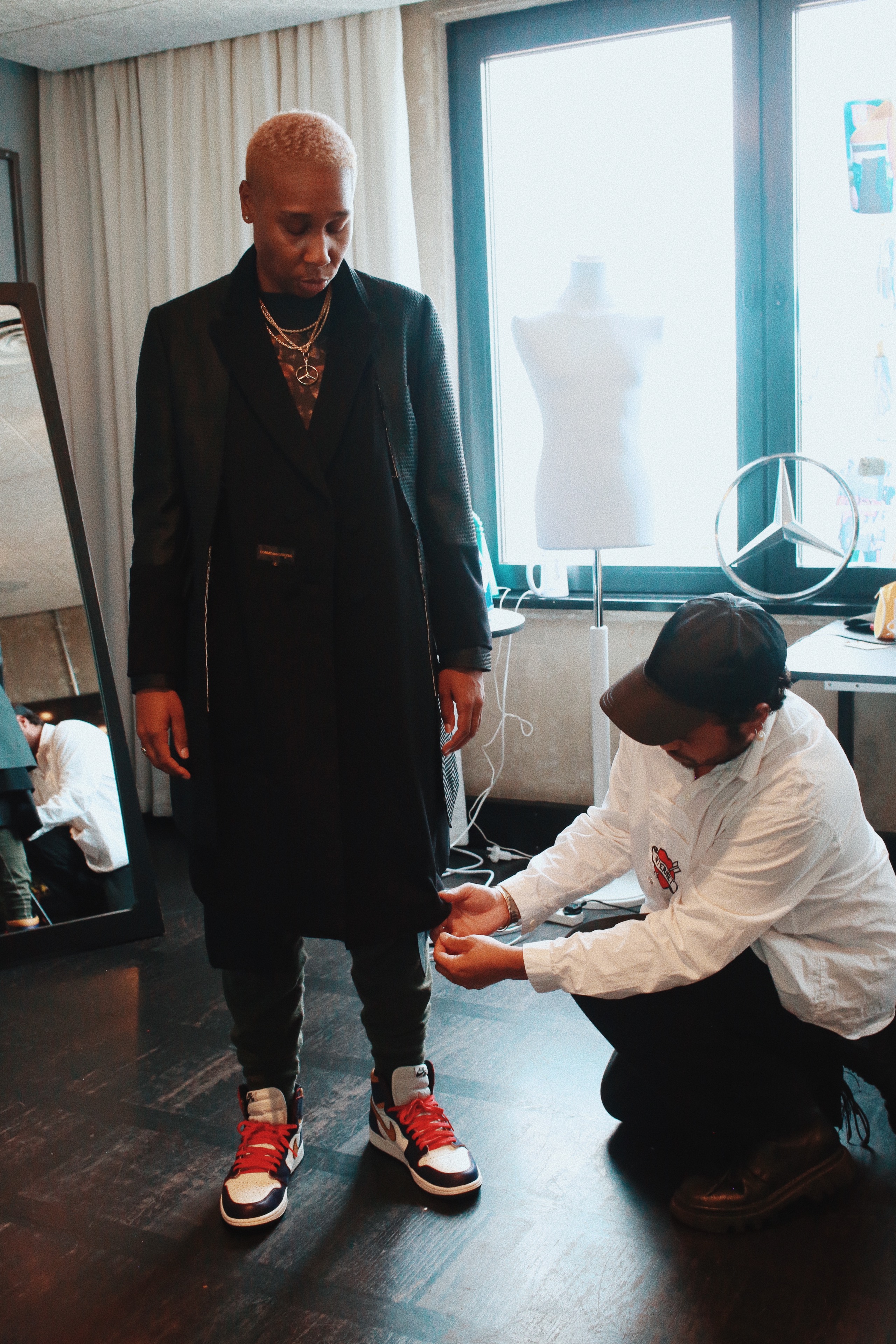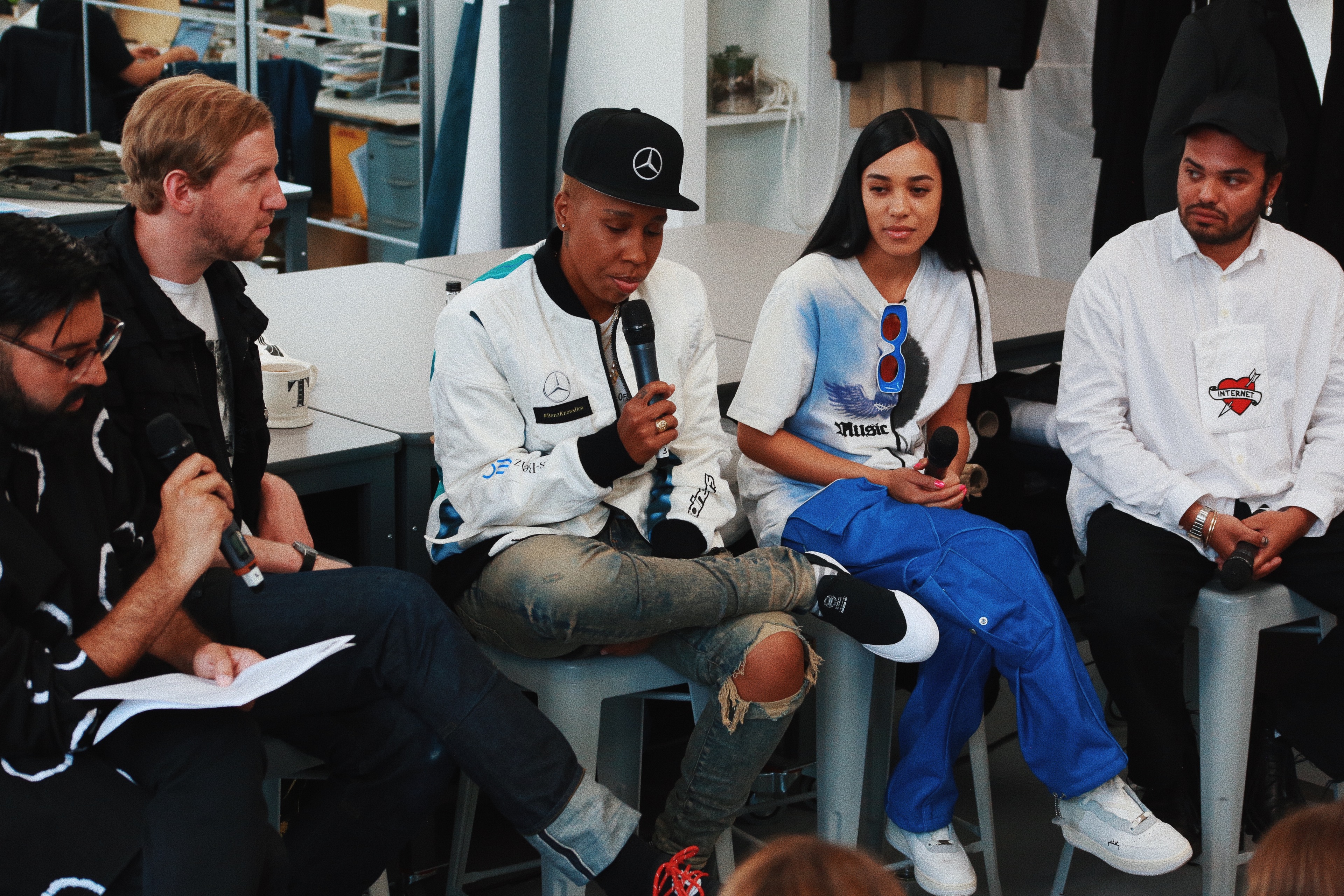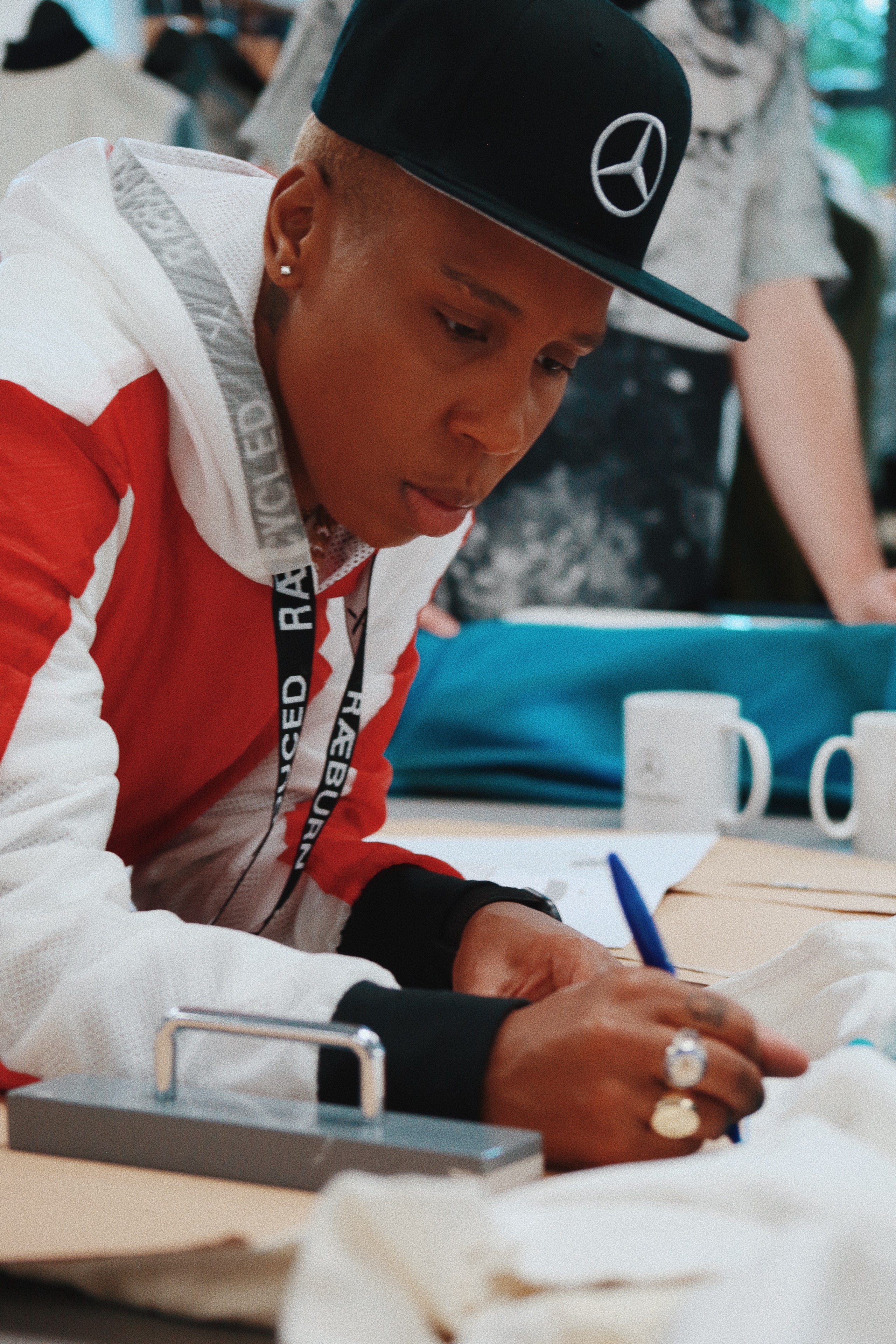 Ensuite, le 8 juin, Mercedes-Benz et Lena Waithe ont organisé une table ronde avec Raeburn, Lantink et Aleali May, figure proéminente dans l’industrie mode, et par ailleurs première femme à avoir participé à la conception des Air Jordans pour homme et femme. Animée par Rishi Ranjani, partenaire créatif et producteur exécutif de Waithe, la discussion a permis de partager les expériences How To de la protagoniste avec des journalistes qui étaient invités, conjointement avec des membres du public, à prendre part à un cours magistral afin qu’ils puissent eux aussi apprendre « How To upcycle ». Les créations upcyclées de Waithe ont été présentées lors de la soirée d’inauguration de la London Fashion Week Men’s, au cours de laquelle la présentatrice de Radio 1 Clara Amfo a effectué un set d’une heure.
