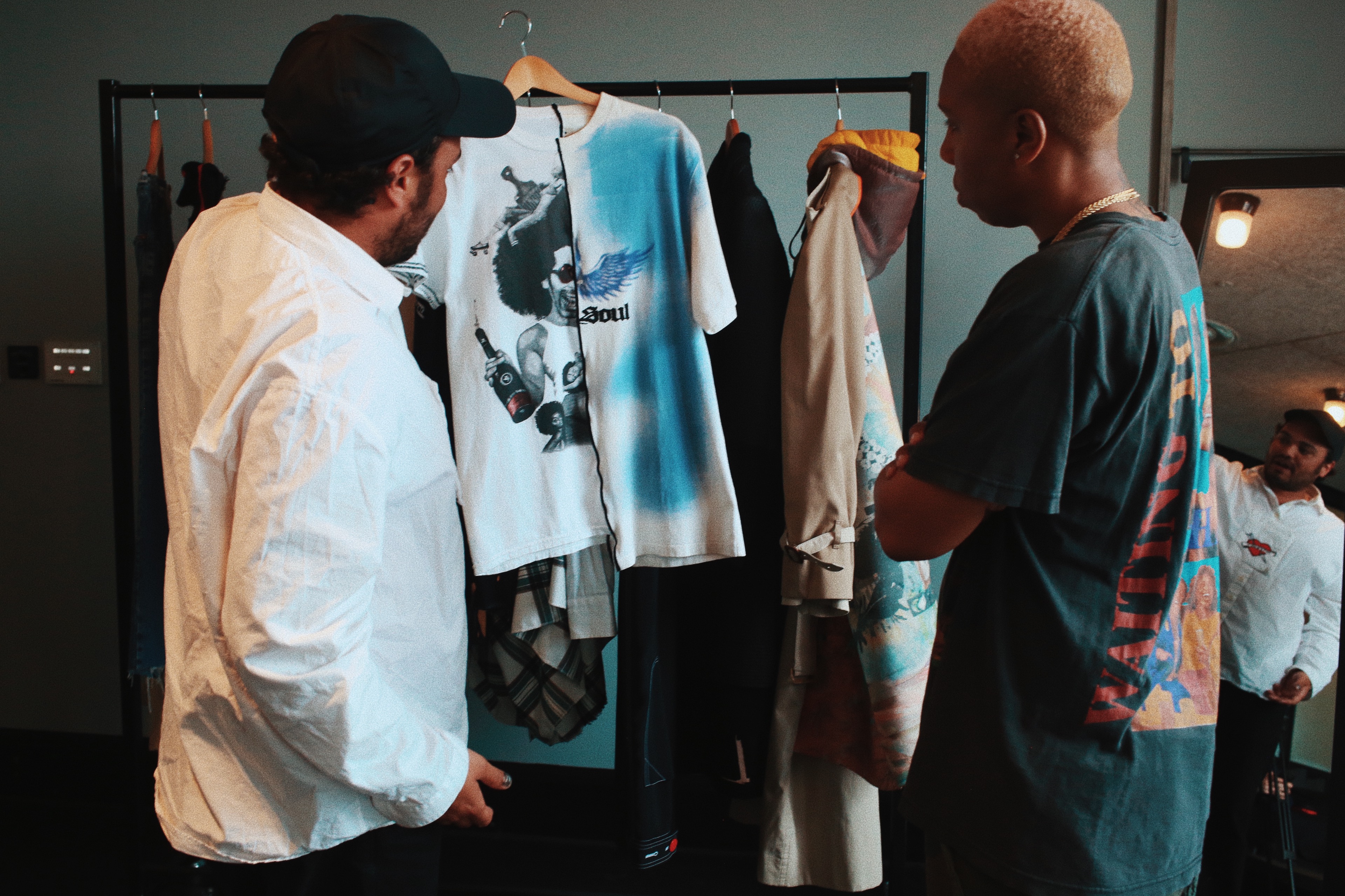 Ce genre d’initiative avant-gardiste tend à soutenir le développement d’une communauté diverse de talents créatifs et c’est ce qui me tient à cœur. J’achète depuis toujours des t-shirts vintage, ce qui contribue à nourrir une collection de pièces qui ont des souvenirs et des émotions liées à celles-ci. C’était formidable d’avoir pu avoir un rôle moteur dans l’apprentissage de l’upcycling dans la mode avec Chris et Duran. » a dit Lena Waithe