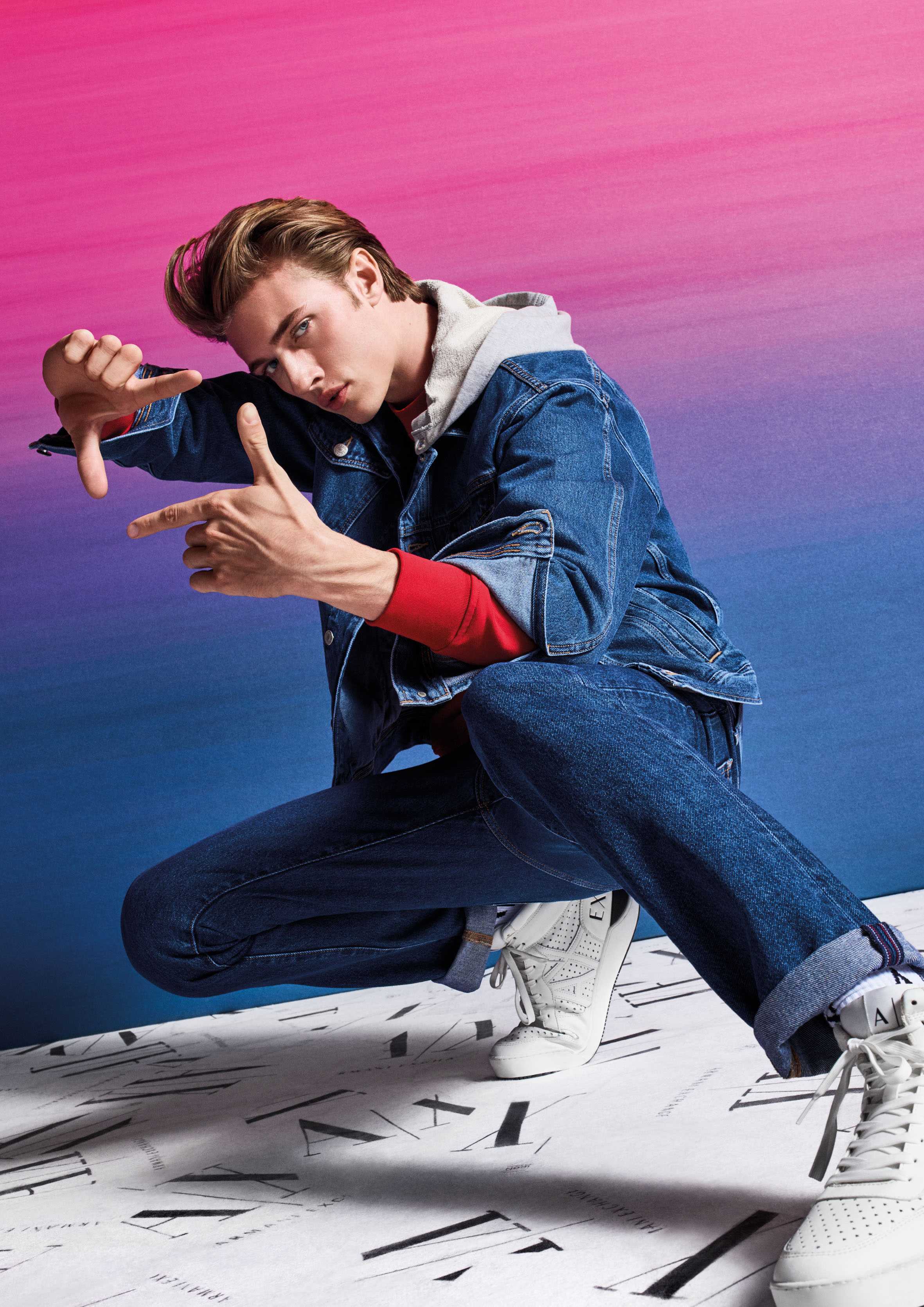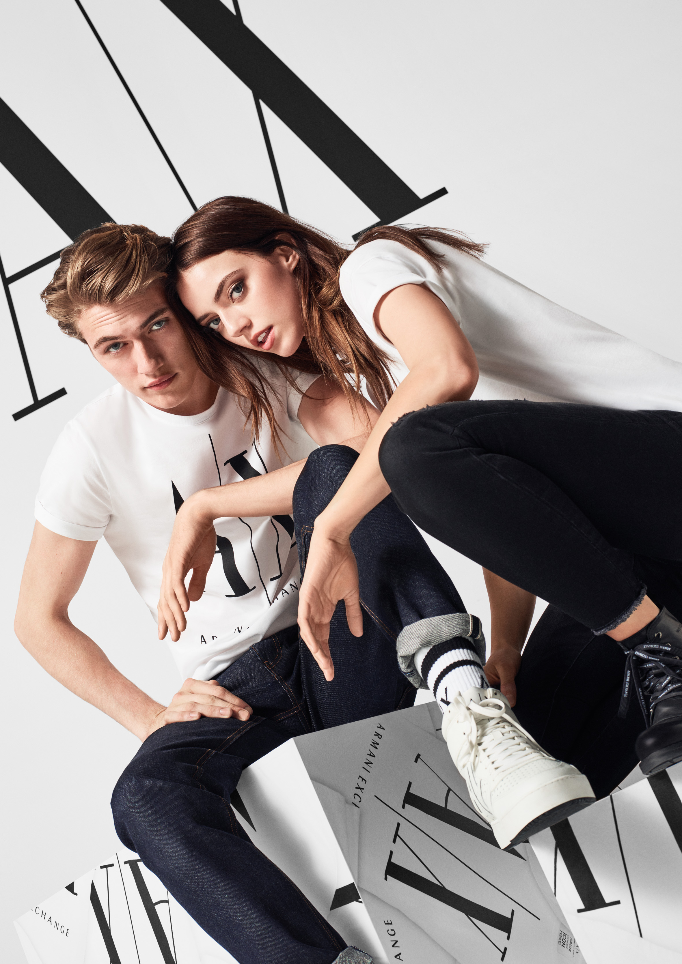 La nouvelle campagne Armani Exchange Automne/Hiver 19-20 capture l’esprit ironique et irrévérent de la marque. Le logo est présent sur le devant et au centre, étalé sur les murs et le sol, sur les bandes et les boites. Dans ce contexte graphique, les protagonistes se révèlent comme Lucky Blue Smith et sa soeur Pyper America Smith, Kento Yamazaki et Nana Ouyang.
