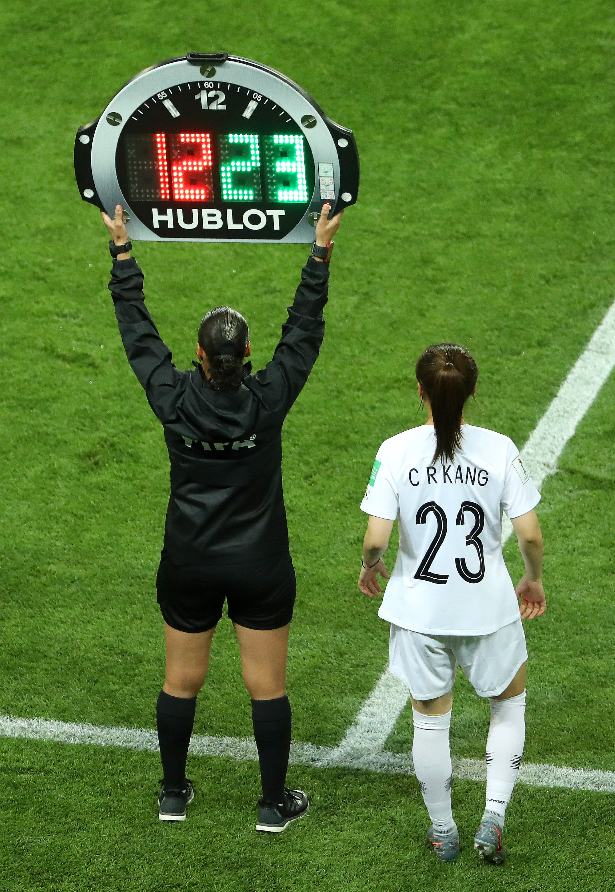 - PARIS, FRANCE – JUNE 07: Chaerim Kang of Korea Republic is substituted on during the 2019 FIFA Women’s World Cup France group A match between France and Korea Republic at Parc des Princes on June 07, 2019 in Paris, France. (Photo by Robert Cianflone/Getty Images)