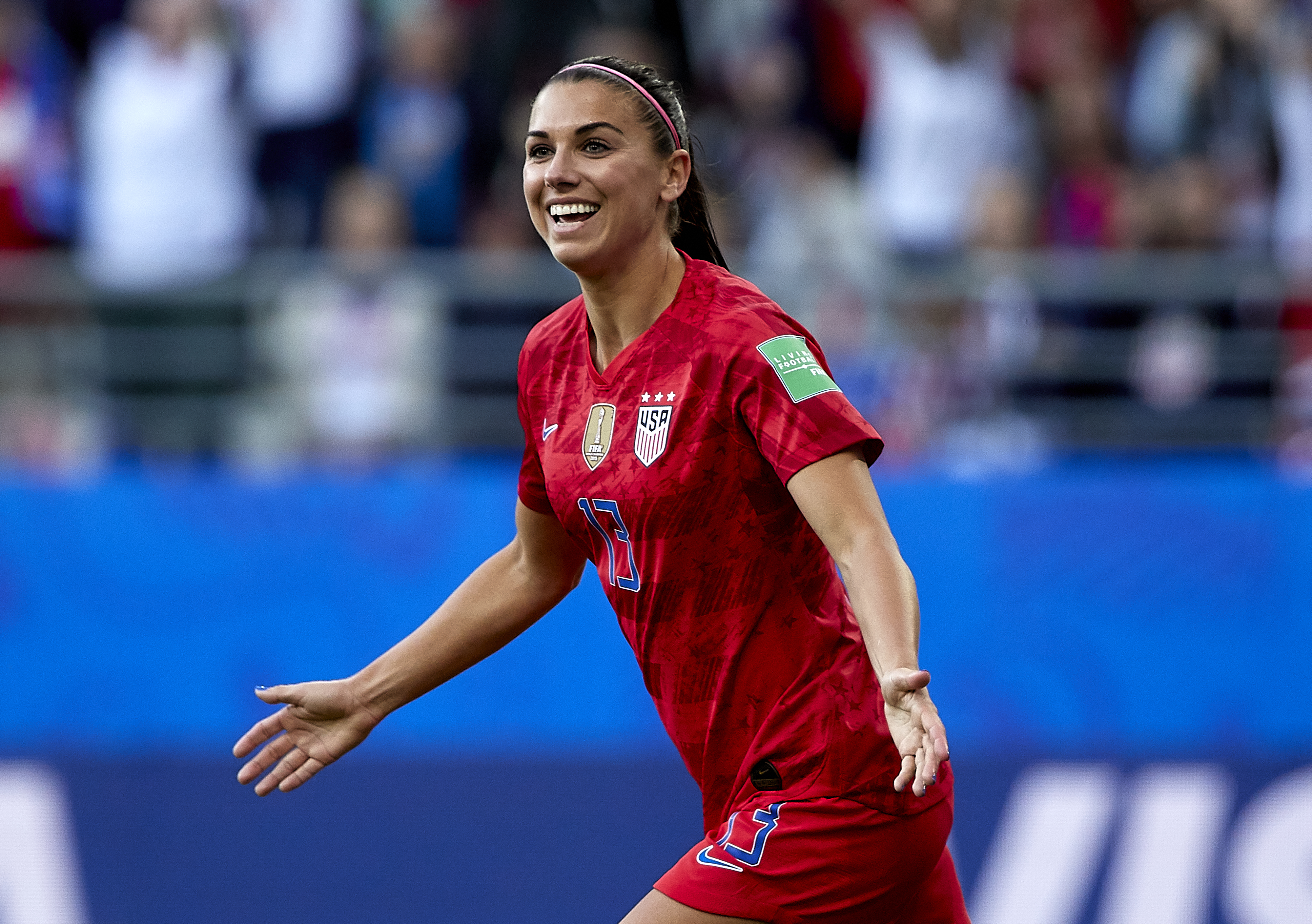 - REIMS, FRANCE – JUNE 11: Alex Morgan of USA celebrates their team’s first goal during the 2019 FIFA Women’s World Cup France group F match between USA and Thailand at Stade Auguste Delaune on June 11, 2019 in Reims, France. (Photo by Quality Sport Images/Getty Images)