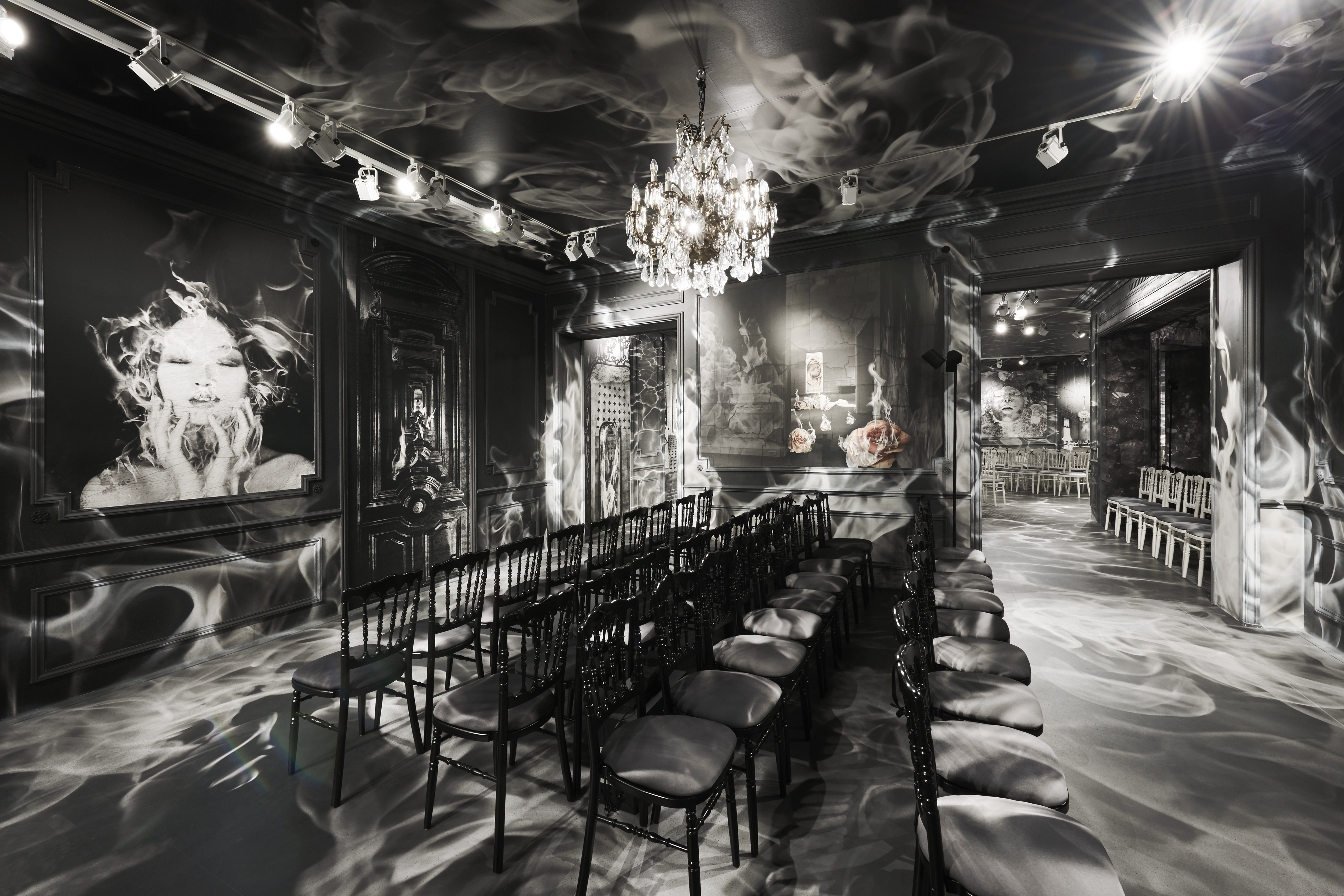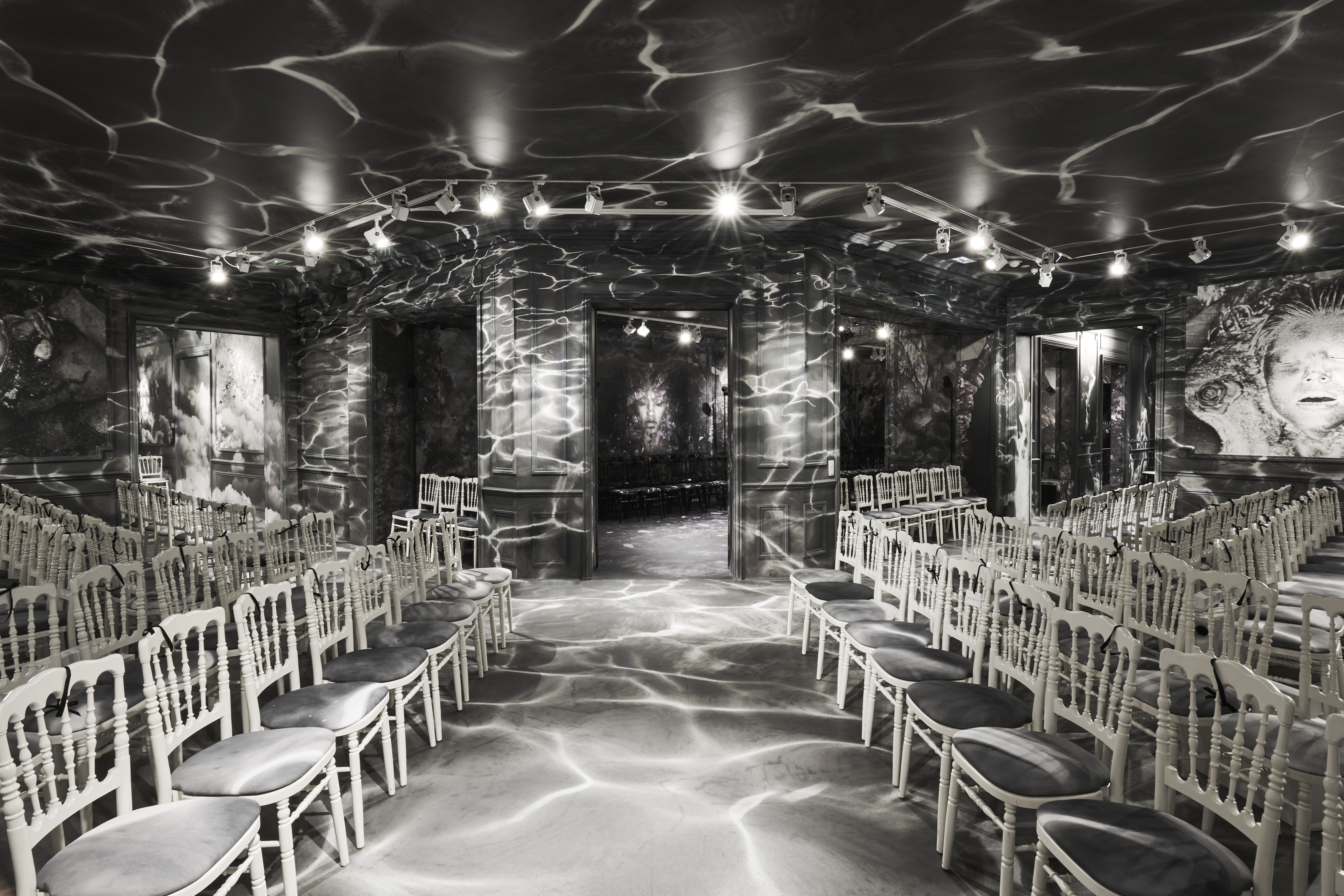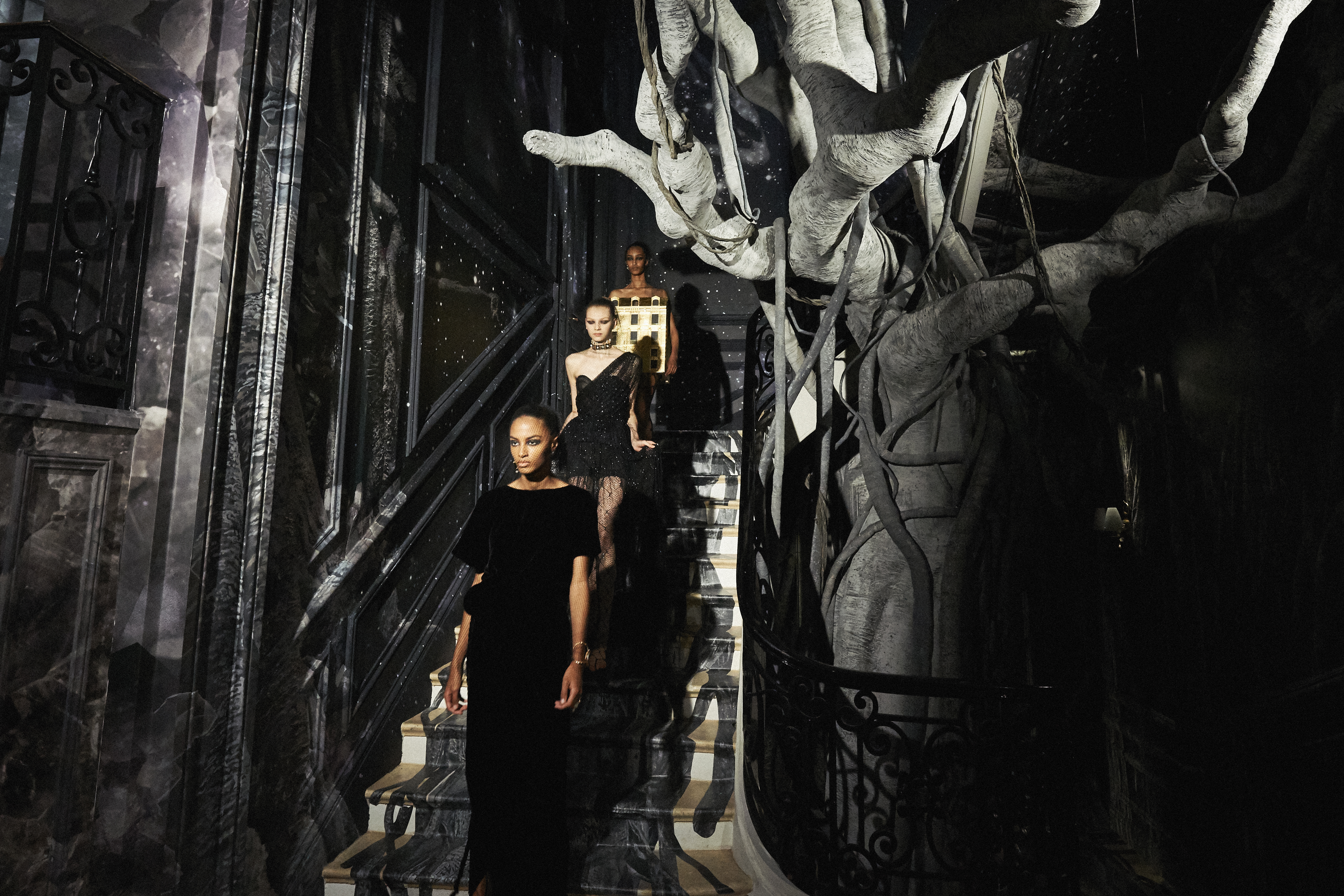 Pour son défilé haute couture automne-hiver 2019-2020, qui s’est tenu au 30, avenue Montaigne, berceau du succès et adresse iconique du couturier-fondateur, Maria Grazia Chiuri signe une collection inspirée des cariatides, ces femmes-statues poétiques qui sont tout autant de merveilleuses colonnes – les piliers fondateurs et porteurs de la société – que de sublimes ornements, décorant de leurs courbes épurées certains édifices parisiens tout comme les temples grecs. Presque entièrement noires, ponctuées de rares couleurs, les créations de la Directrice Artistique révèlent ainsi toute leur puissance architecturale. Un concept qui suppose de repartir des fondamentaux, des fondations de la haute couture pour mieux les confronter aux modes de vie contemporains. Ainsi, dans le prolongement de la pensée de l’architecte Bernard Rudofsky, cette collection dessine un paysage inédit permettant de questionner les notions du corps, d’habit et d’habitat, de l’espace et du temps, de la nature et de la culture, du flou et du tailleur constitutifs de la haute couture. Une idée également explorée par la scénographie imaginée par l’artiste féministe Penny Slinger. Dans un décor chimérique, elle fait revivre toutes les femmes qui ont animé, habité de leur esprit et de leur beauté, l’hôtel particulier de Dior : Catherine Dior, sœur chérie du couturier, amies et muses, petites mains et clientes fidèles. Une fusion entre féminité et architecture d’une intensité magique.