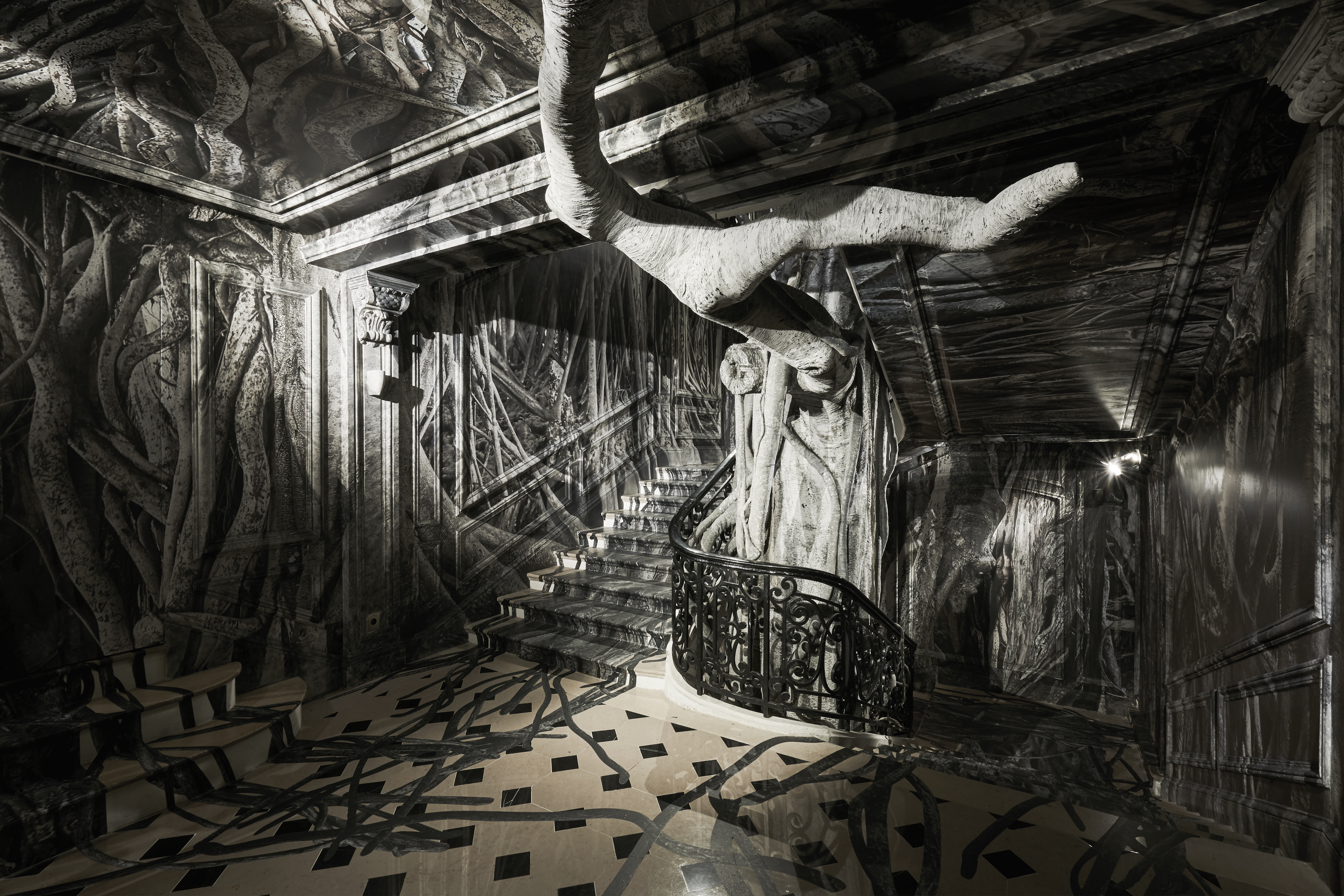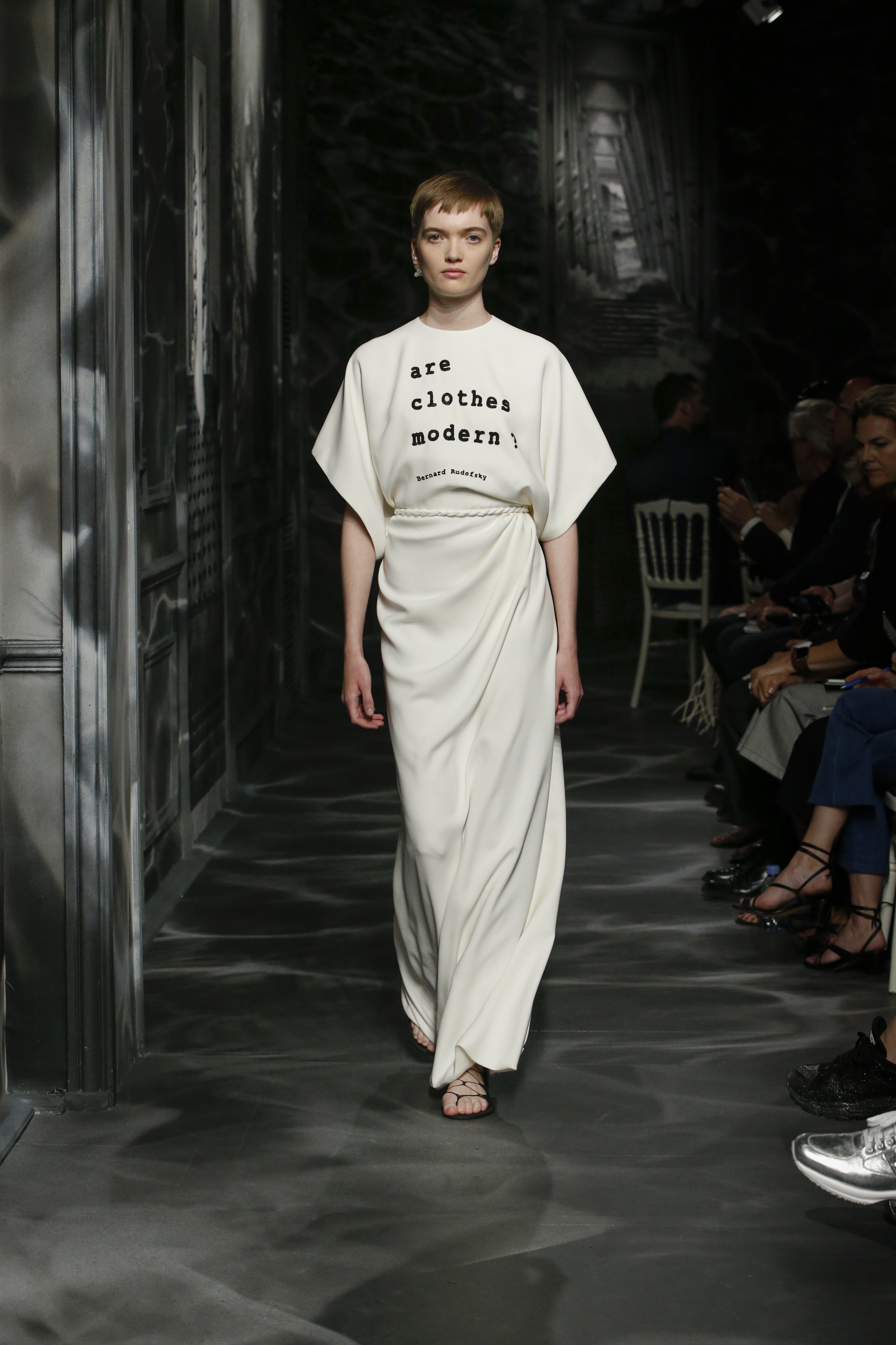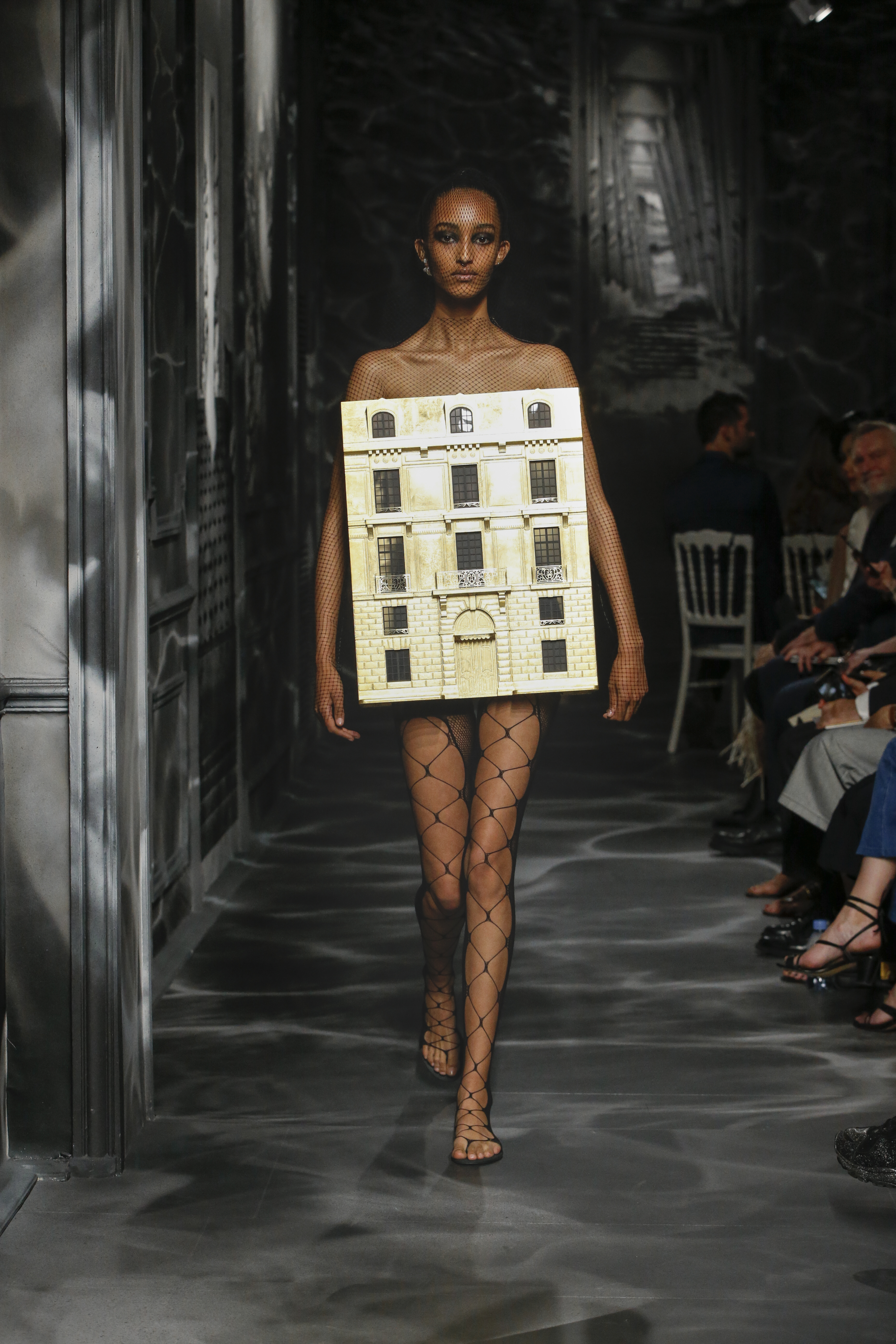 Pour son défilé haute couture automne-hiver 2019-2020, qui s’est tenu au 30, avenue Montaigne, berceau du succès et adresse iconique du couturier-fondateur, Maria Grazia Chiuri signe une collection inspirée des cariatides, ces femmes-statues poétiques qui sont tout autant de merveilleuses colonnes – les piliers fondateurs et porteurs de la société – que de sublimes ornements, décorant de leurs courbes épurées certains édifices parisiens tout comme les temples grecs. Presque entièrement noires, ponctuées de rares couleurs, les créations de la Directrice Artistique révèlent ainsi toute leur puissance architecturale. Un concept qui suppose de repartir des fondamentaux, des fondations de la haute couture pour mieux les confronter aux modes de vie contemporains. Ainsi, dans le prolongement de la pensée de l’architecte Bernard Rudofsky, cette collection dessine un paysage inédit permettant de questionner les notions du corps, d’habit et d’habitat, de l’espace et du temps, de la nature et de la culture, du flou et du tailleur constitutifs de la haute couture. Une idée également explorée par la scénographie imaginée par l’artiste féministe Penny Slinger. Dans un décor chimérique, elle fait revivre toutes les femmes qui ont animé, habité de leur esprit et de leur beauté, l’hôtel particulier de Dior : Catherine Dior, sœur chérie du couturier, amies et muses, petites mains et clientes fidèles. Une fusion entre féminité et architecture d’une intensité magique.