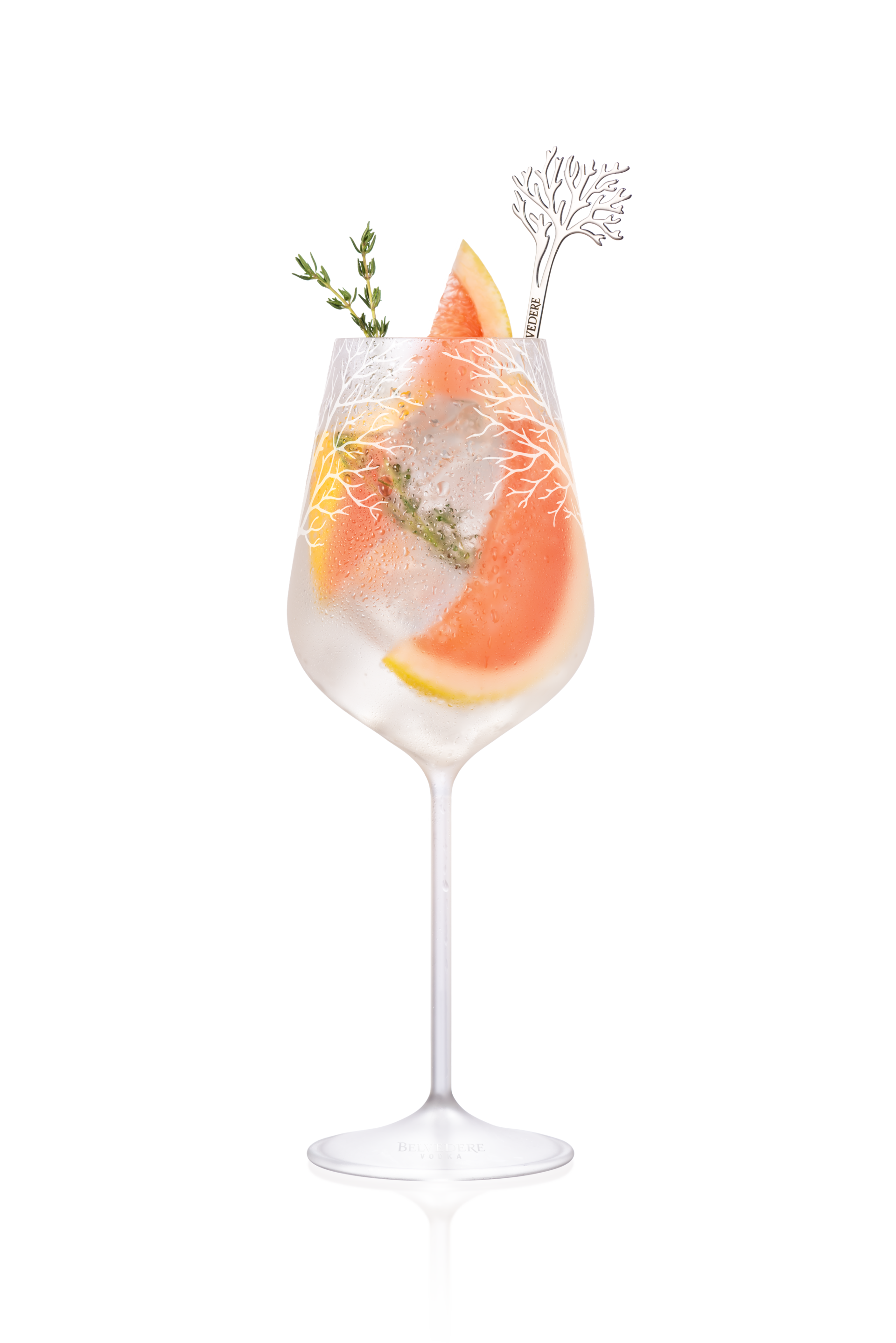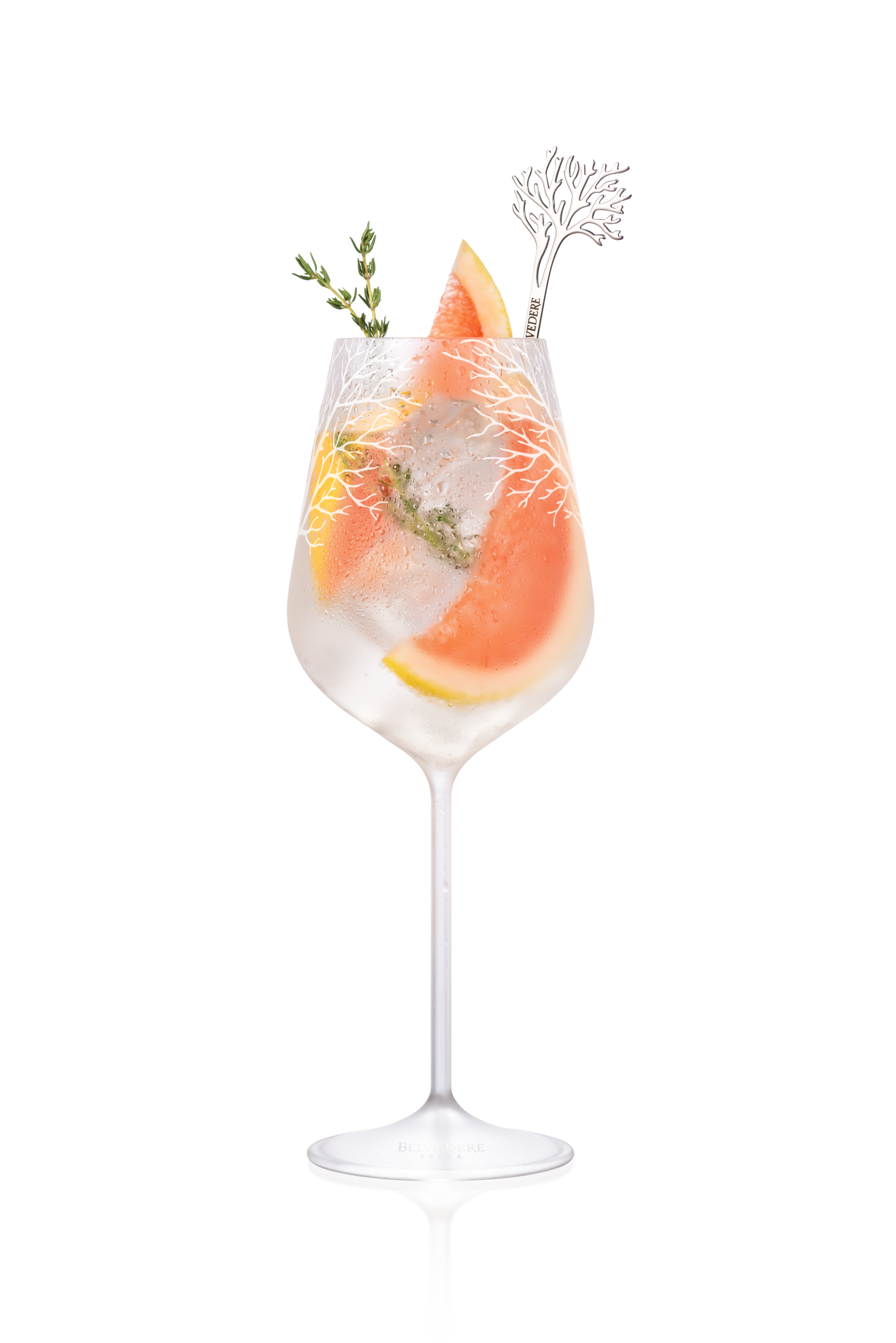 4 cl de Belvedere Vodka 12 cl de Fever Tree Mediterranean Tonic 2 branches de thym frais ½ tranche de pamplemousse