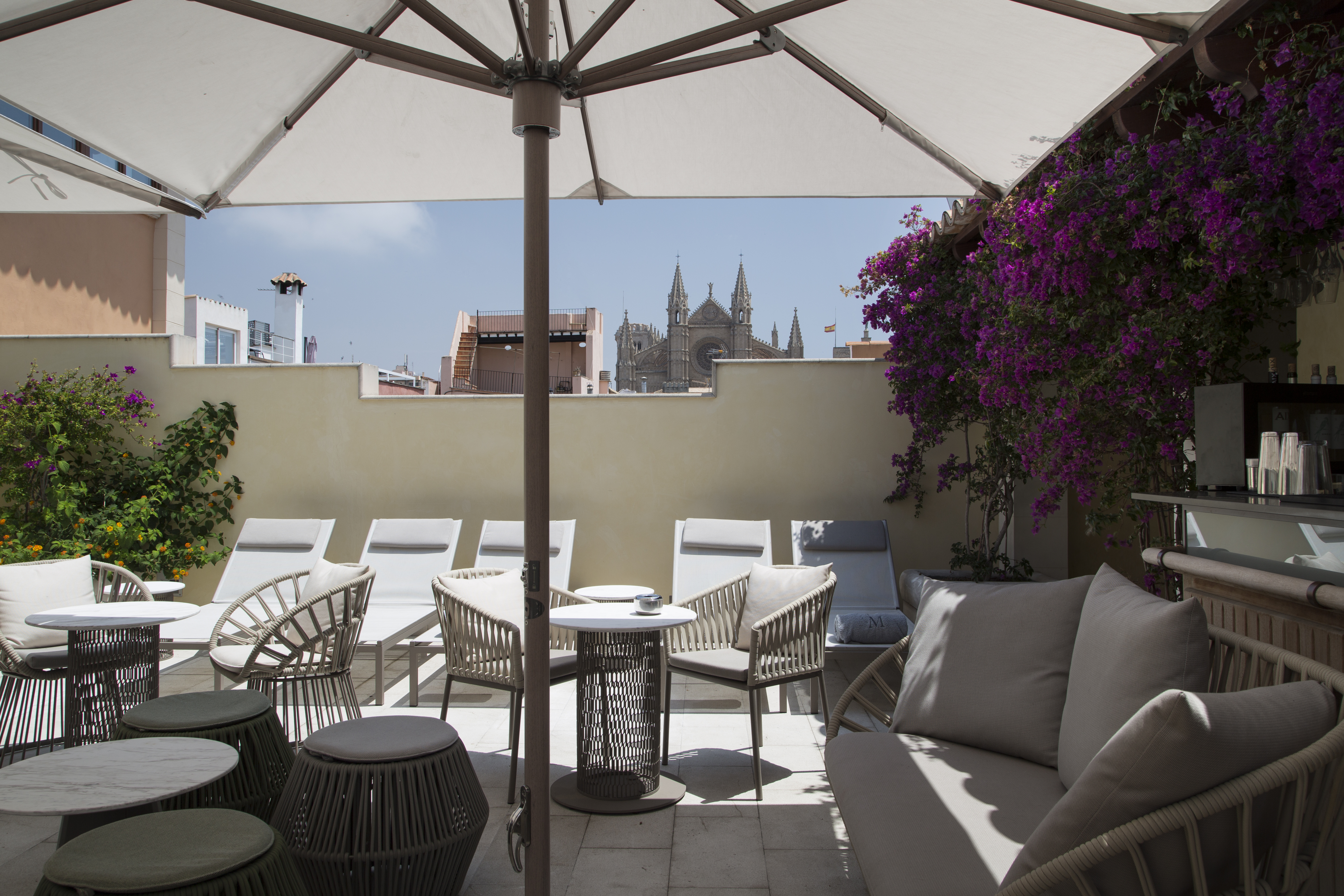 Idéalement situé, le restaurant est déjà un passage obligé pour les hôtes de l’hôtel et la clientèle extérieure. Mais le Palacio Can Marques, dont le patio – l’un des plus beaux d’Espagne – vaut à lui seul une visite, est aussi un havre de paix en plein cœur du centre très animé de Palma. L’hôtel n’offre pas moins de quatre lieux de détente pour prendre un verre. Si le ravissant jardin planté de palmiers et d’oliviers est un endroit très agréable pour prendre le thé, c’est au Bar à Champagne, situé dans le patio couvert, que l’on peut déguster une coupe de champagne Lanson. A l’étage, le bar en terrasse, qui jouit d’une vue sur la célèbre cathédrale de Palma, est un lieu rêvé pour siroter un cocktail au coucher du soleil. Le restaurant dispose aussi d’un bar, où l’on accède directement depuis la Calle Apuntadores.