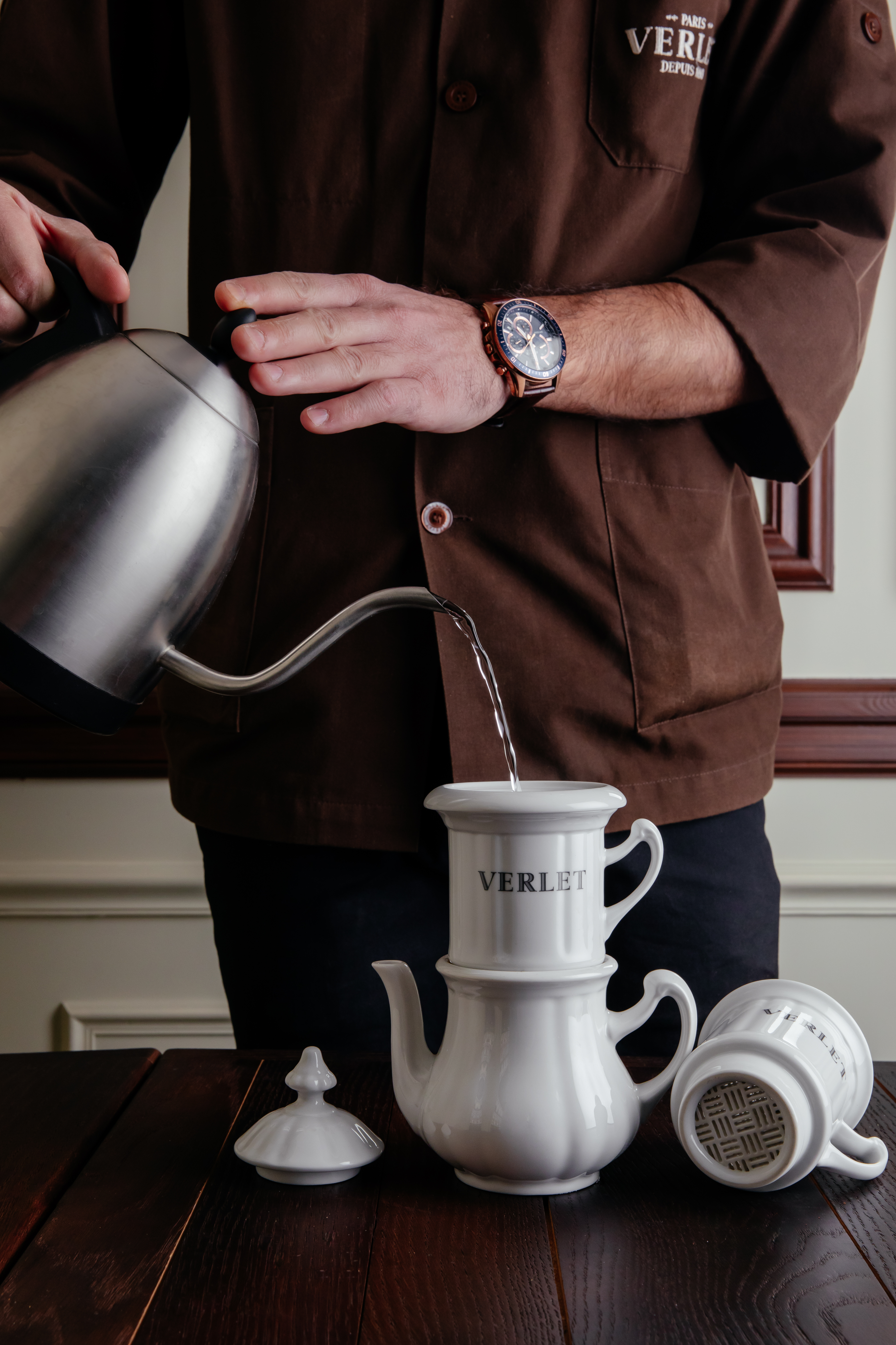 A savourer chez Verlet ou chez soi, le café servi dans la cafetière Du Belloy est une dégustation, de grande qualité, dite à la française.