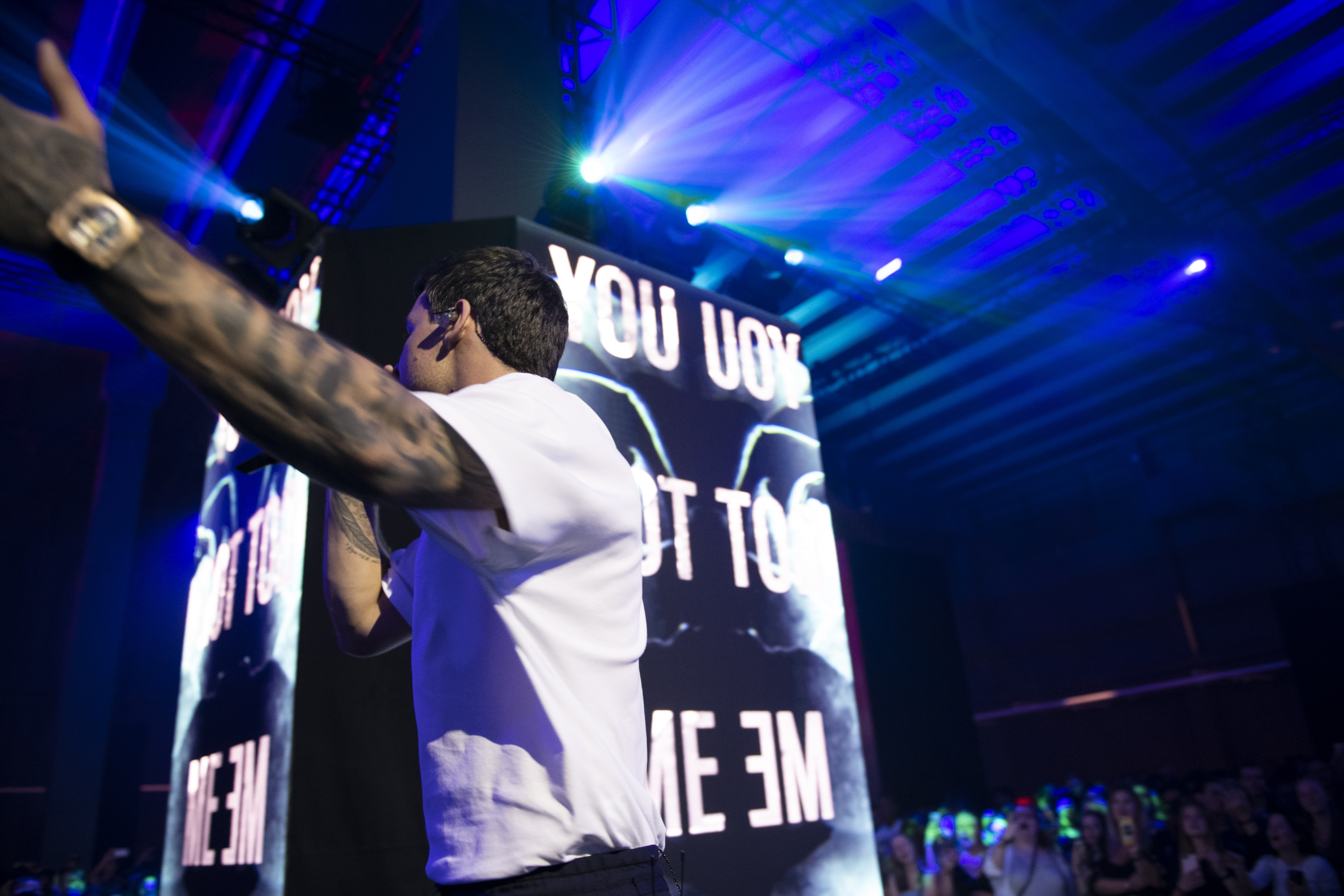 Le nouvel ambassadeur de la marque HUGO portait un total look de la collection « see now buy now », disponible exclusivement sur le compte instagram HUGO le 4 juillet et a interprété trois de ses chansons : Strip That Down, For You and Polaroid.
