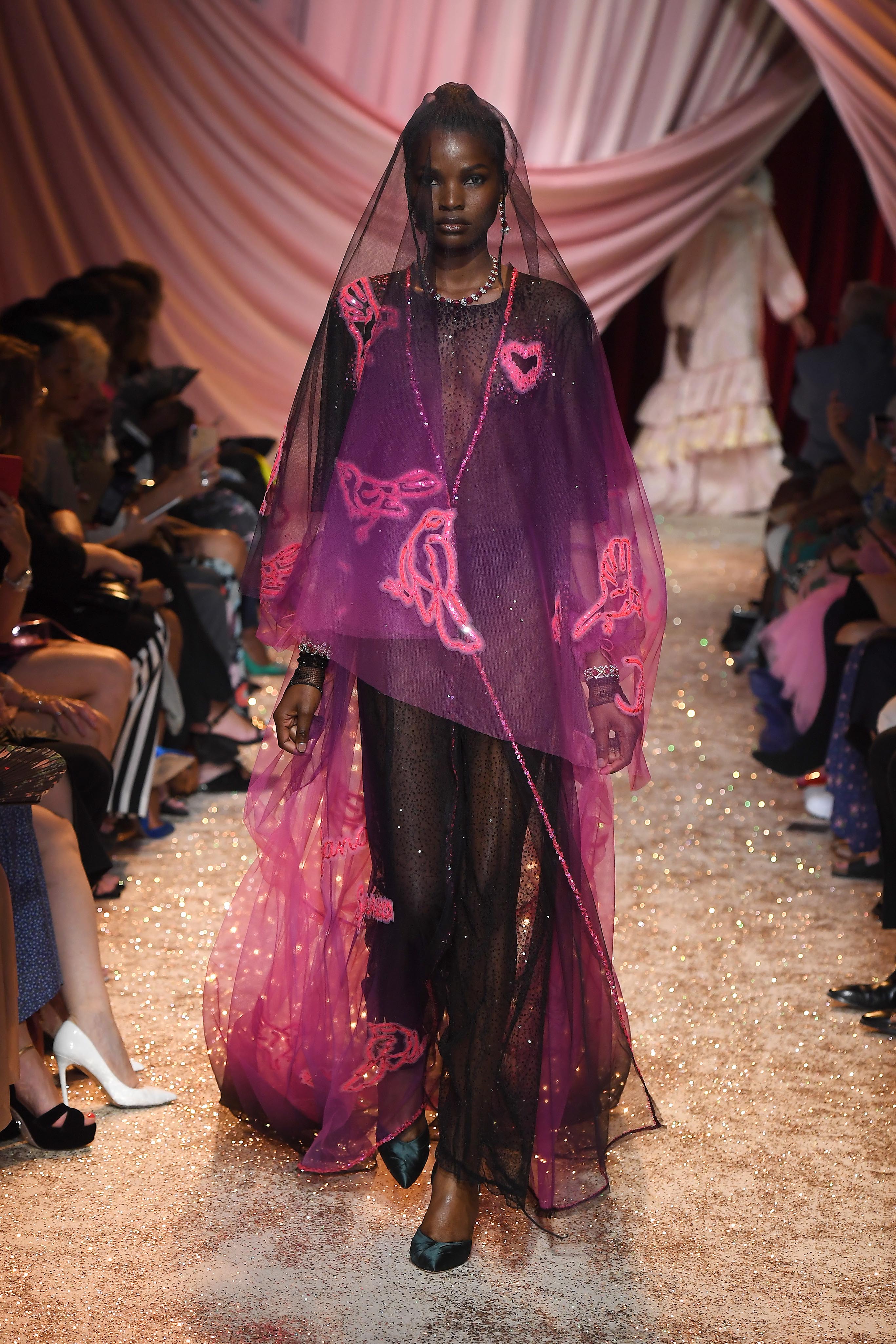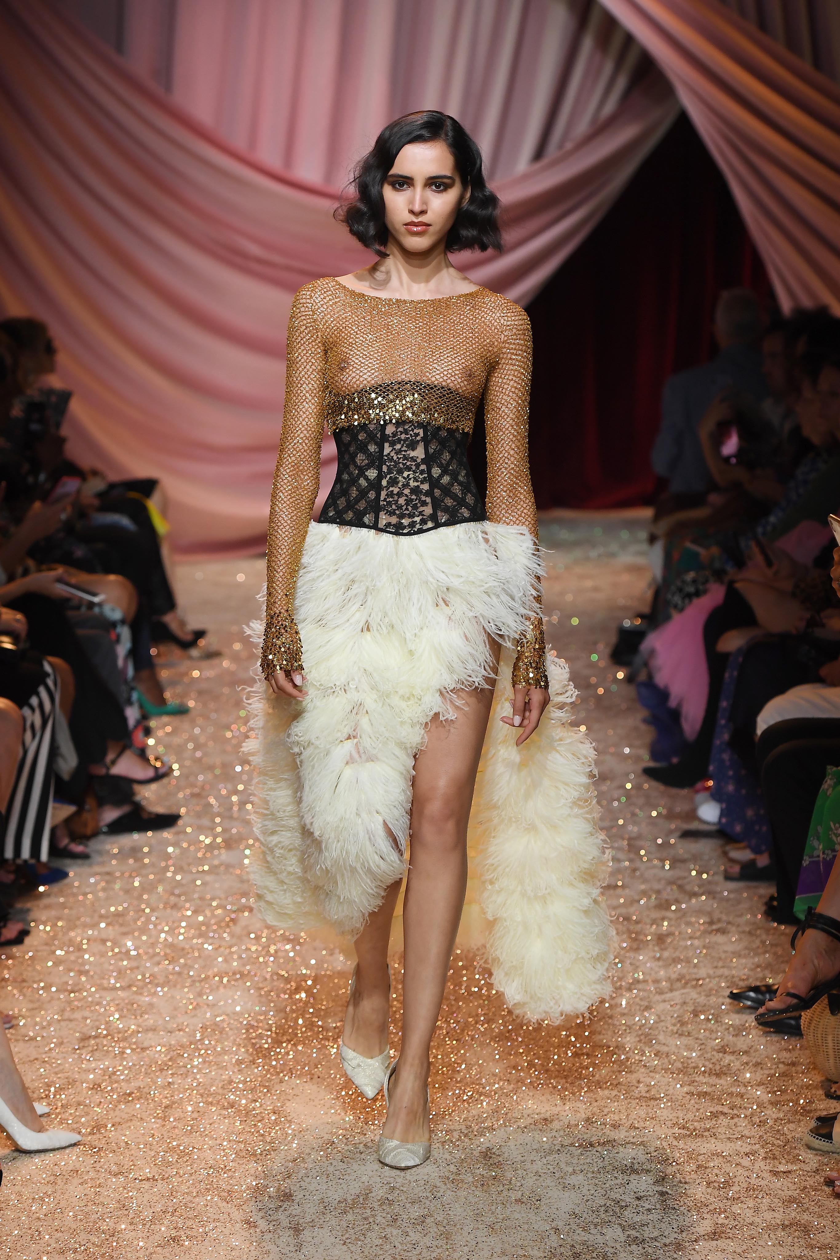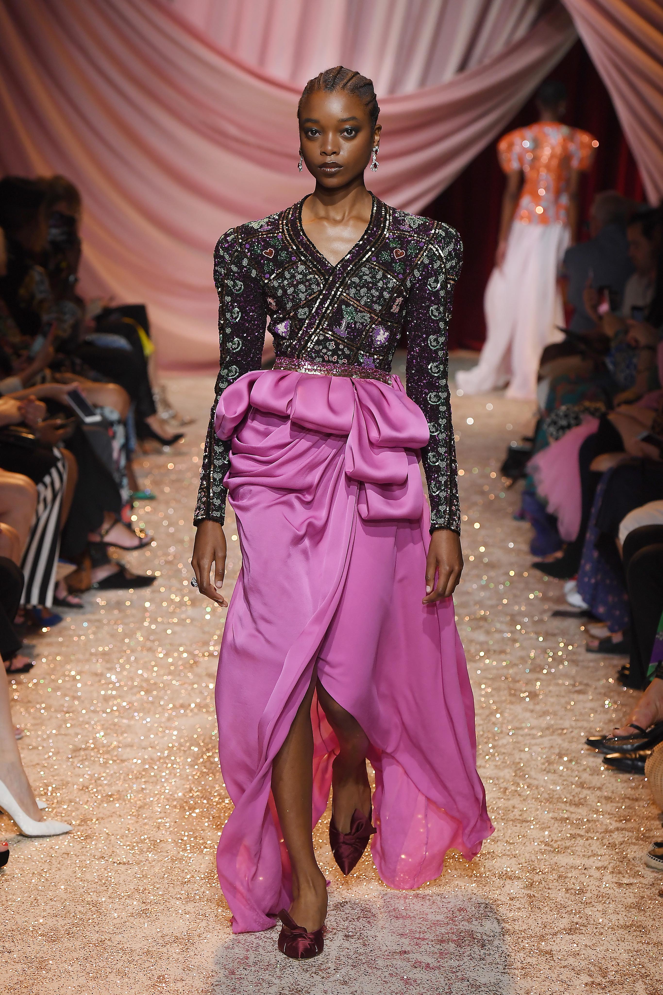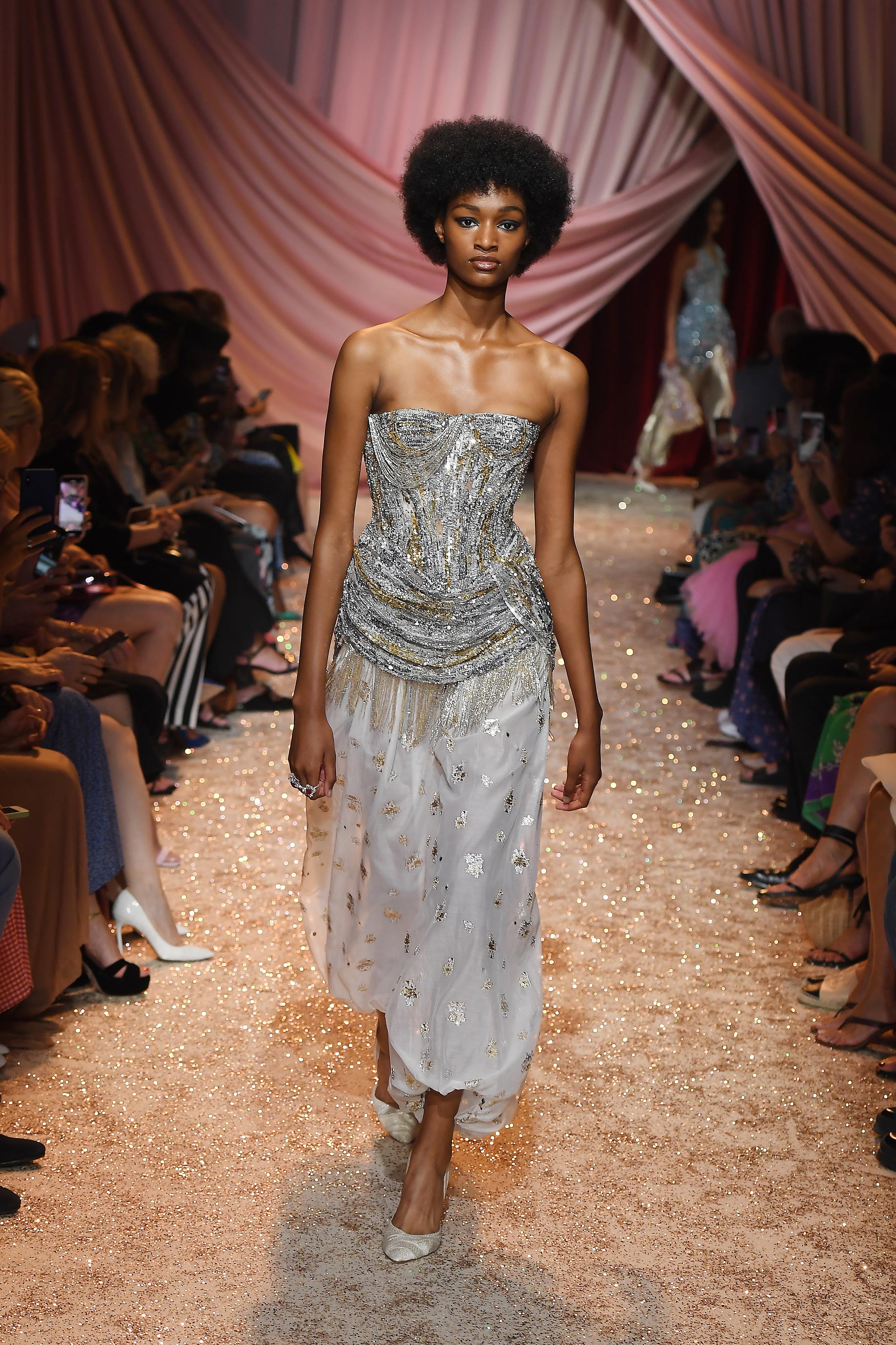 - PARIS, FRANCE – JULY 01: Model walks the runway at the Ulyana Sergeenko Haute Couture Fall/Winter 2019 2020 show as part of Paris Fashion Week on July 01, 2019 in Paris, France. (Photo by Victor Boyko/Getty Images for Ulyana Sergeenko)