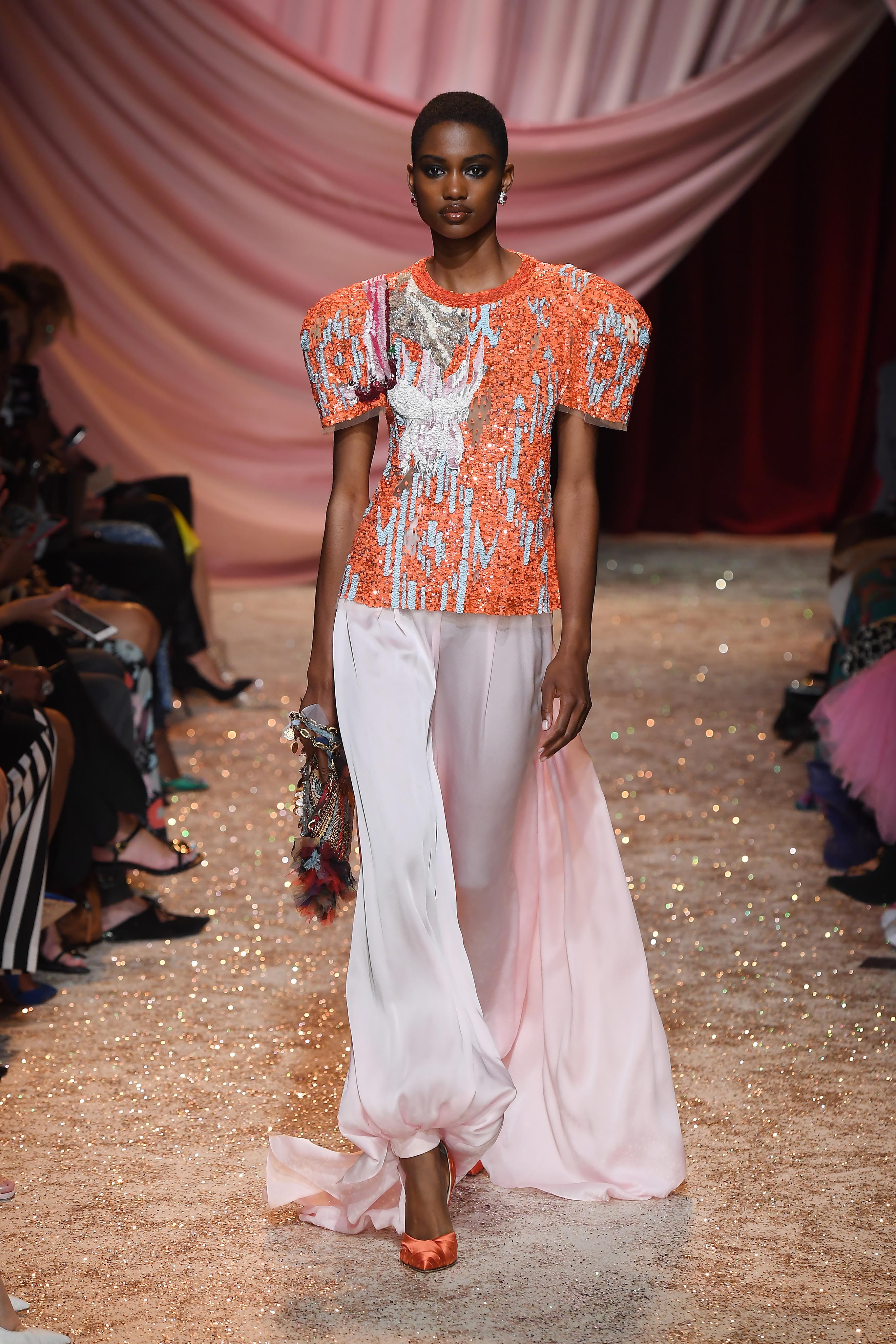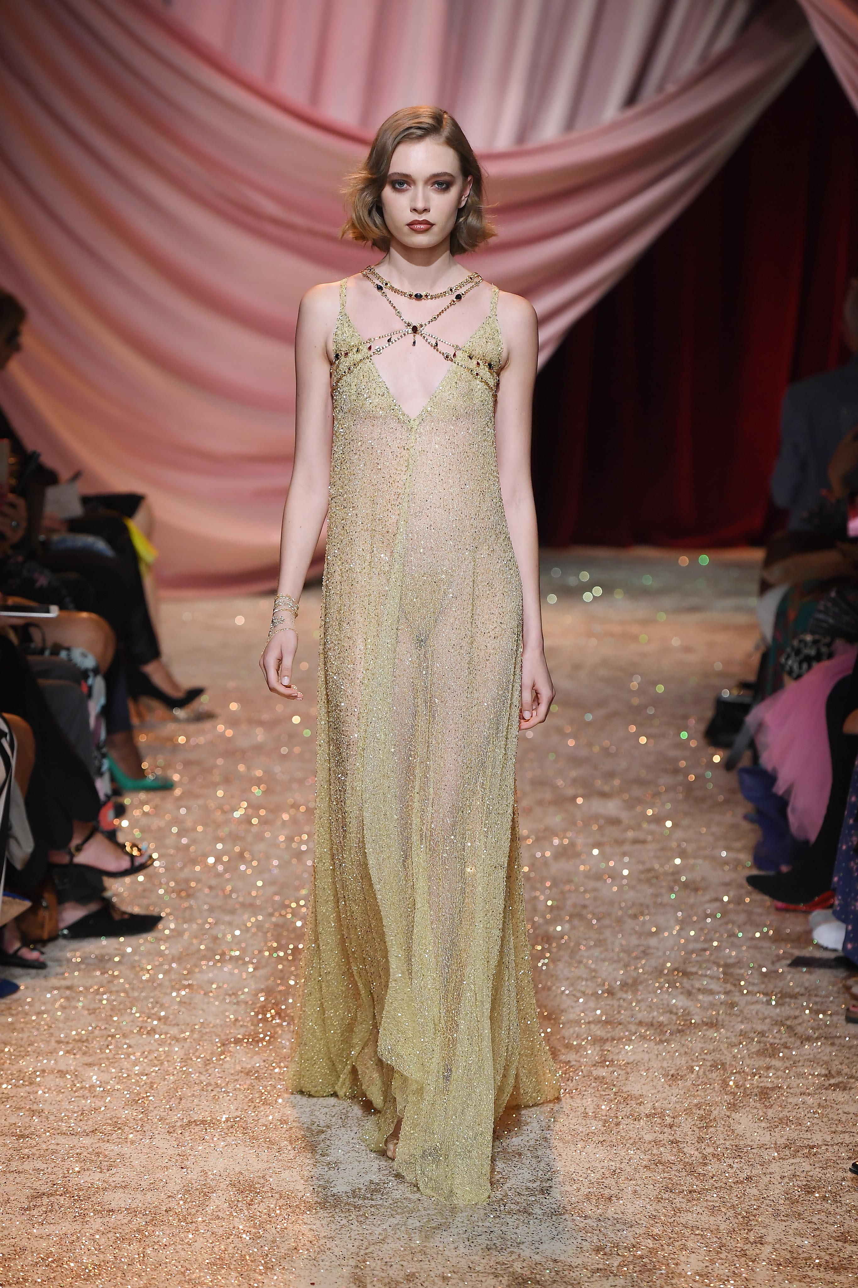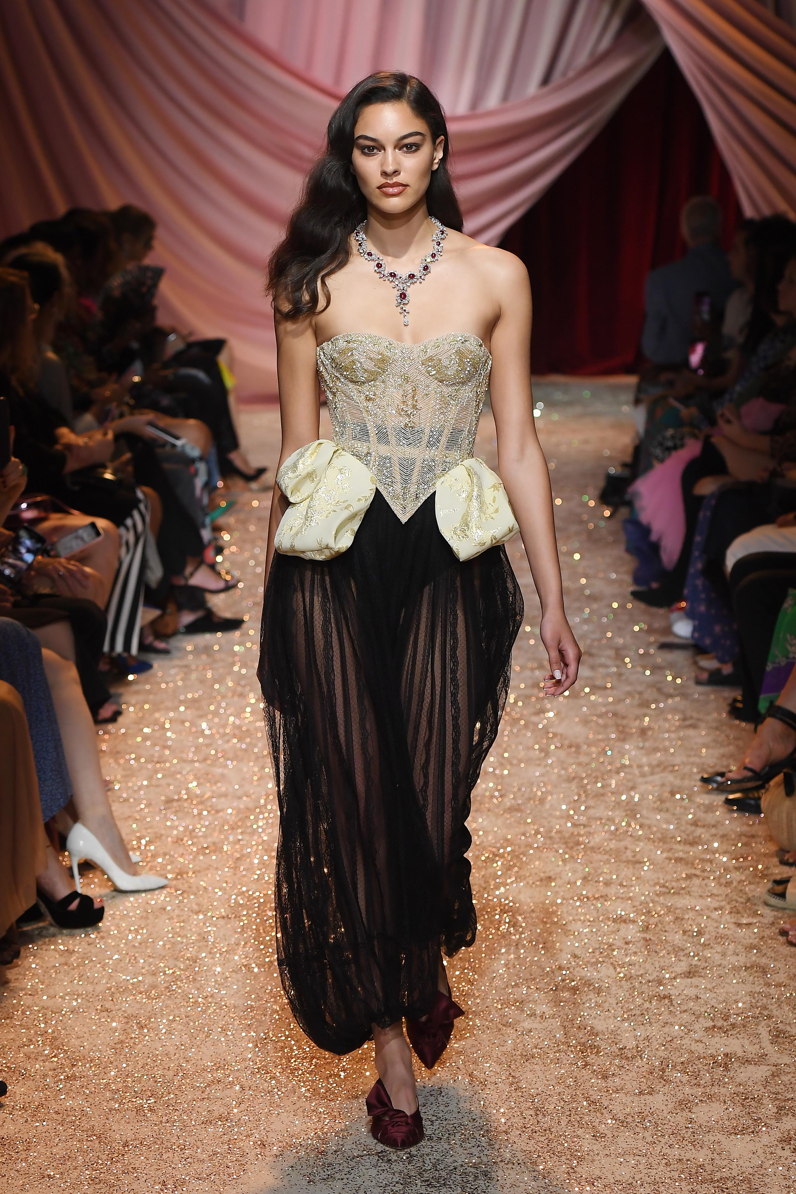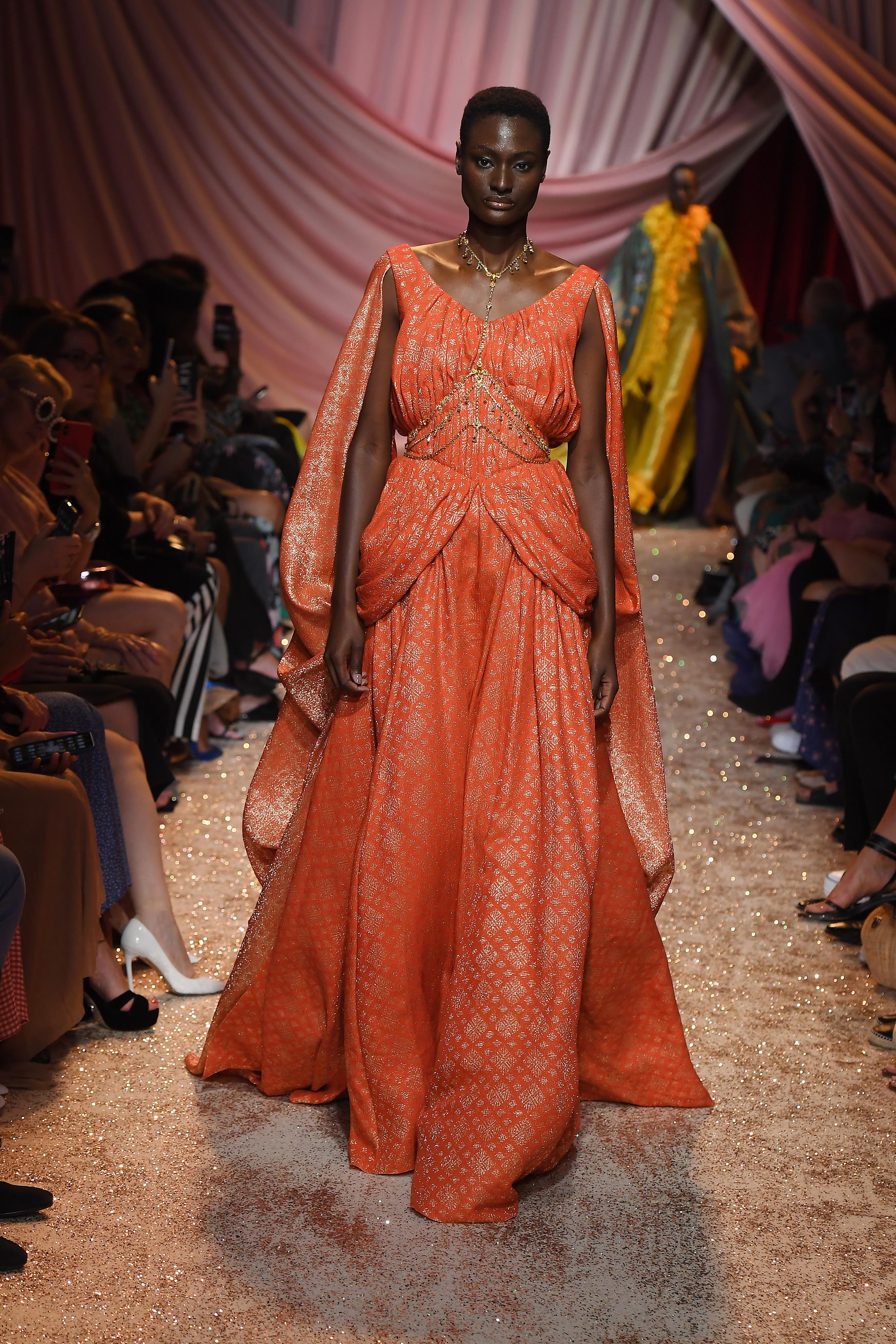 - PARIS, FRANCE – JULY 01: Model walks the runway at the Ulyana Sergeenko Haute Couture Fall/Winter 2019 2020 show as part of Paris Fashion Week on July 01, 2019 in Paris, France. (Photo by Victor Boyko/Getty Images for Ulyana Sergeenko)