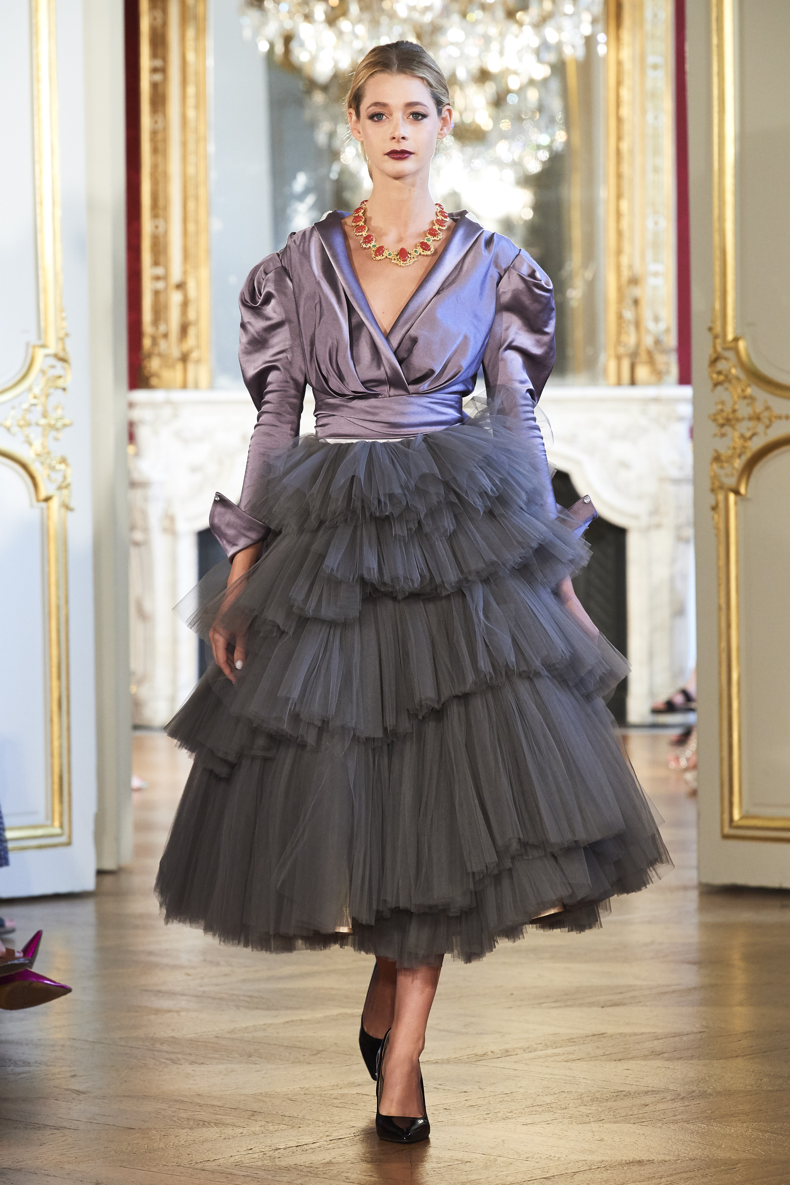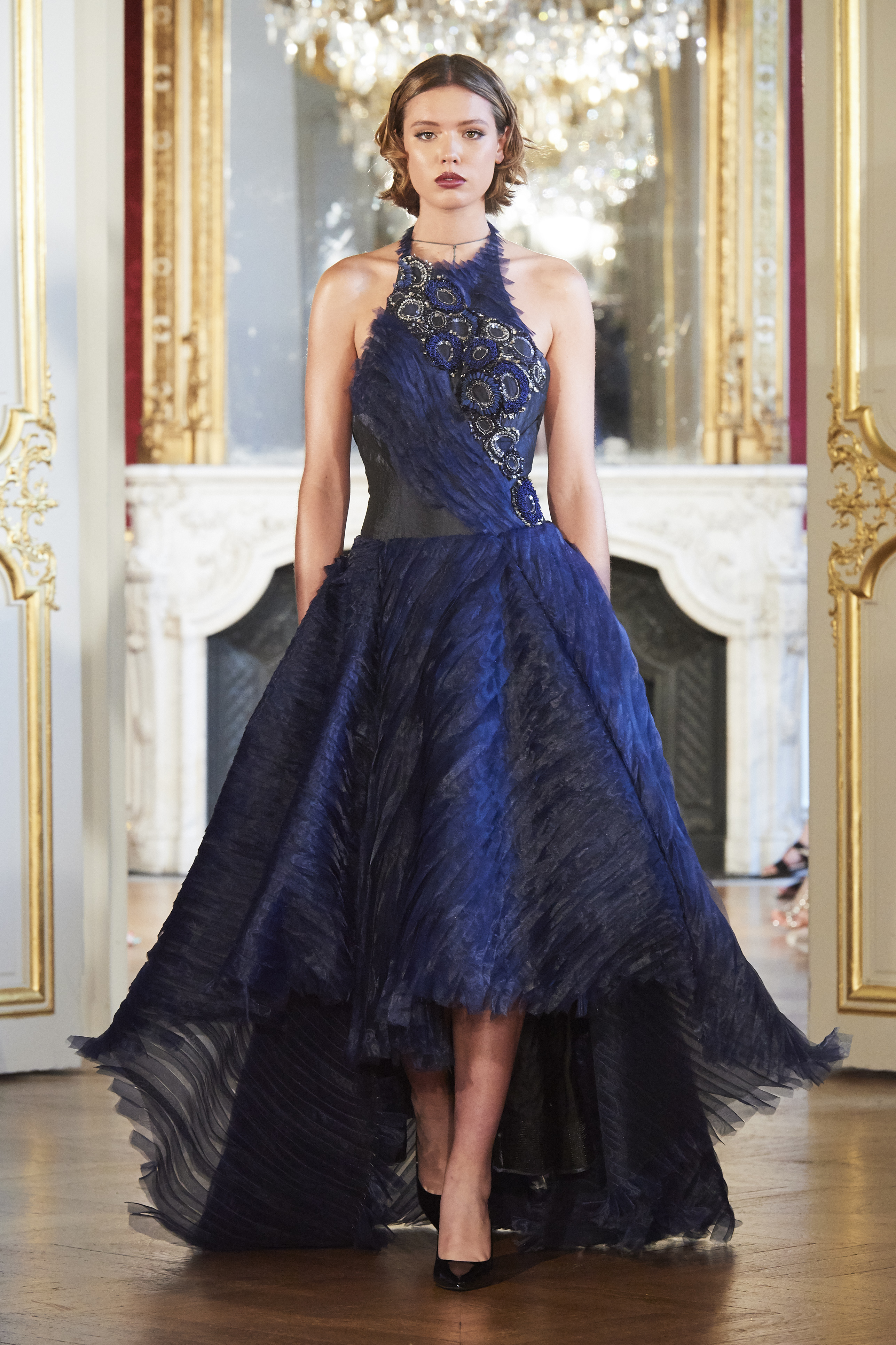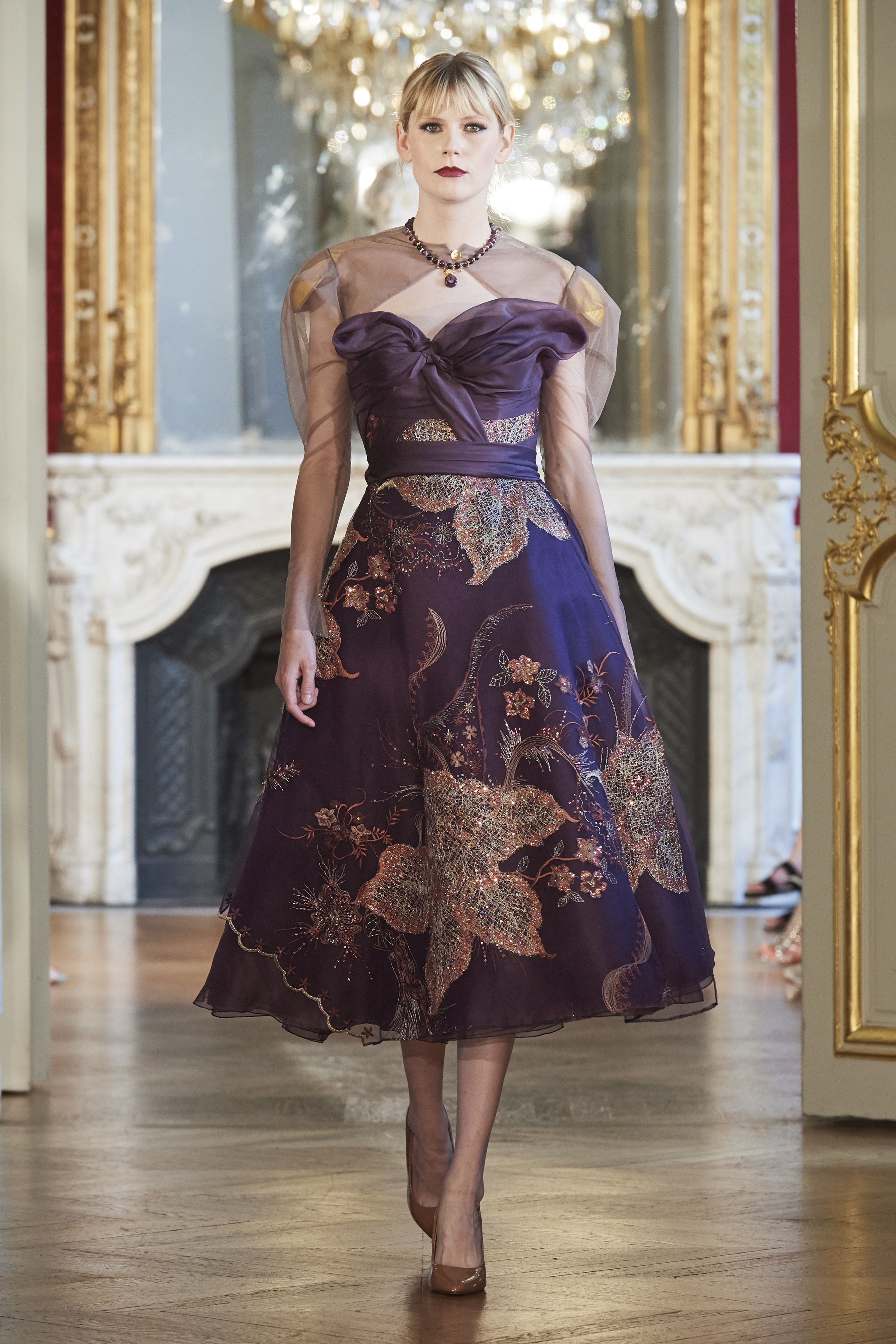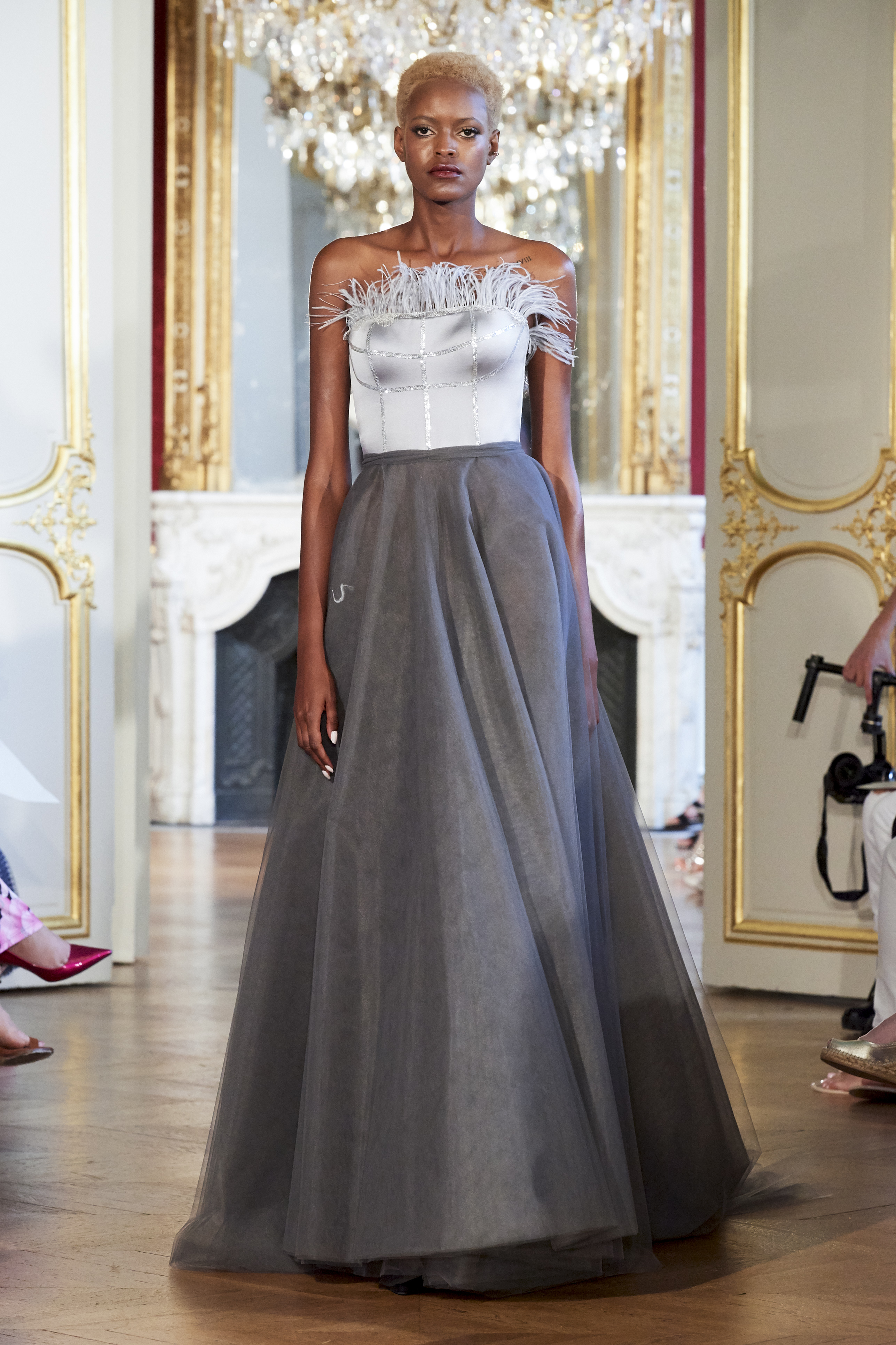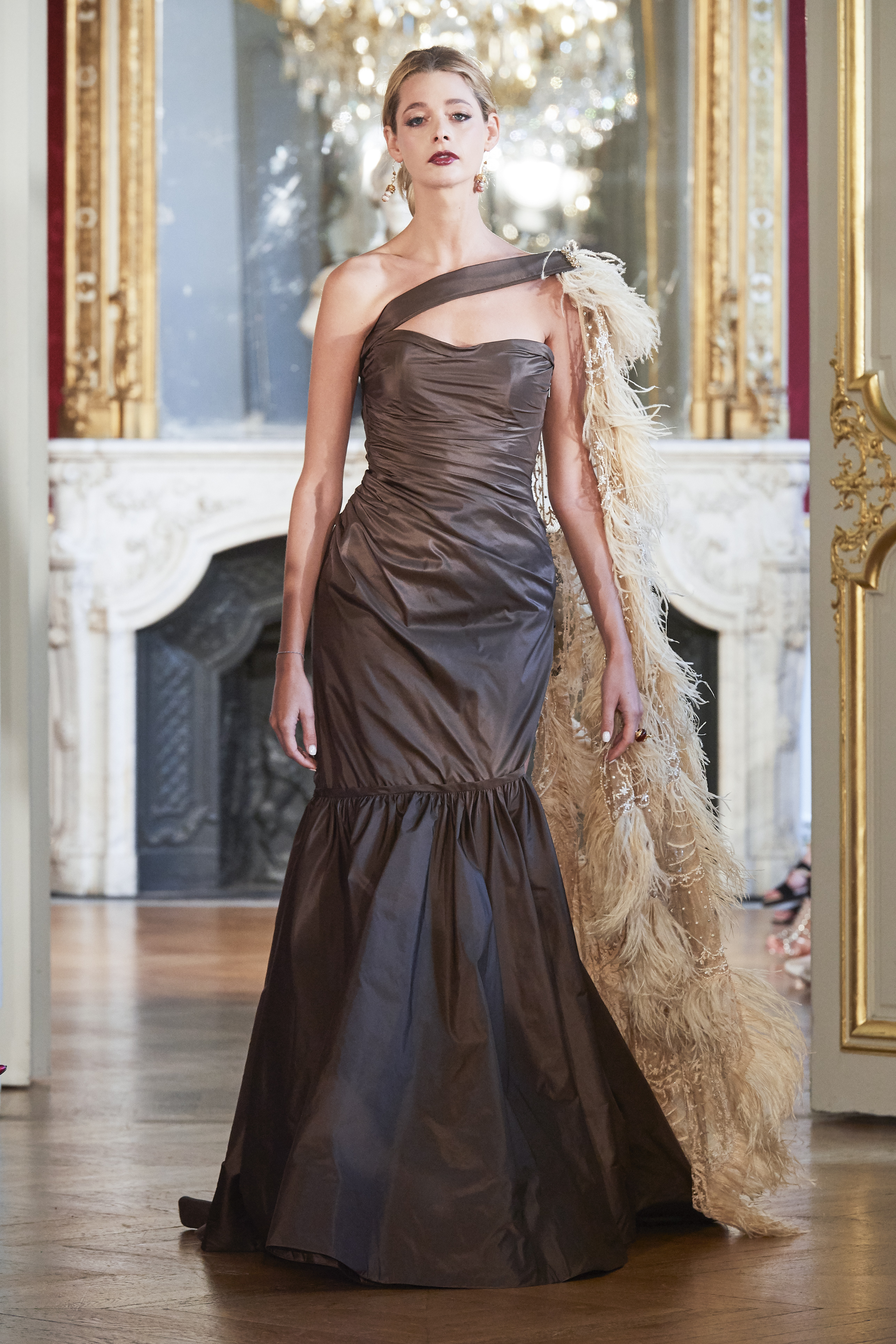 L’âge d’or de la couture est omniprésent : plumes d’autruche, cristaux Swarovski, perles de verre, paillettes, dentelles et drapés évocateurs attirent le regard sur l’époque du grand couturier Christian Dior.