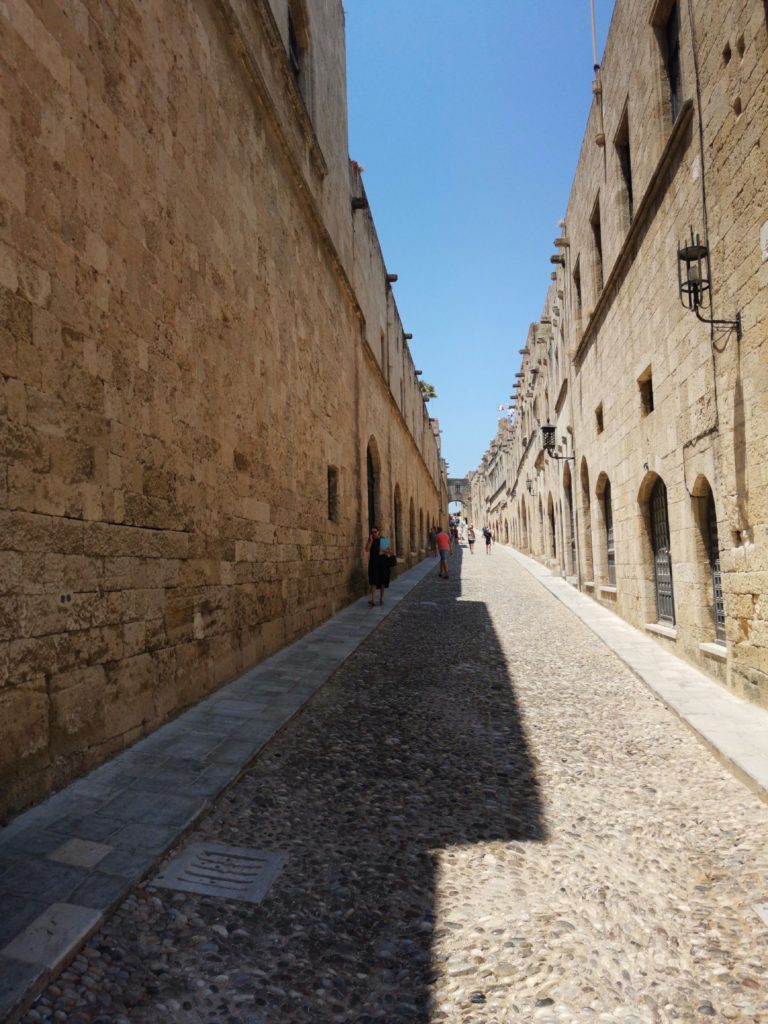 La rue la plus célèbre de la vieille ville de Rhodes est la rue de Chevaliers, restaurée sous la forme qu’elle avait pendant la période médiévale. On y trouve les installations qui hébergeaient les groupes ethniques qui composaient l’Ordre des Chevaliers de Saint Jean. Sur le sommet de la rue, domine l’imposant Castello, le palais du Grand Maître avec ses immenses tours, qui est un musée extraordinaire et figure parmi les attractions majeures de l’île .