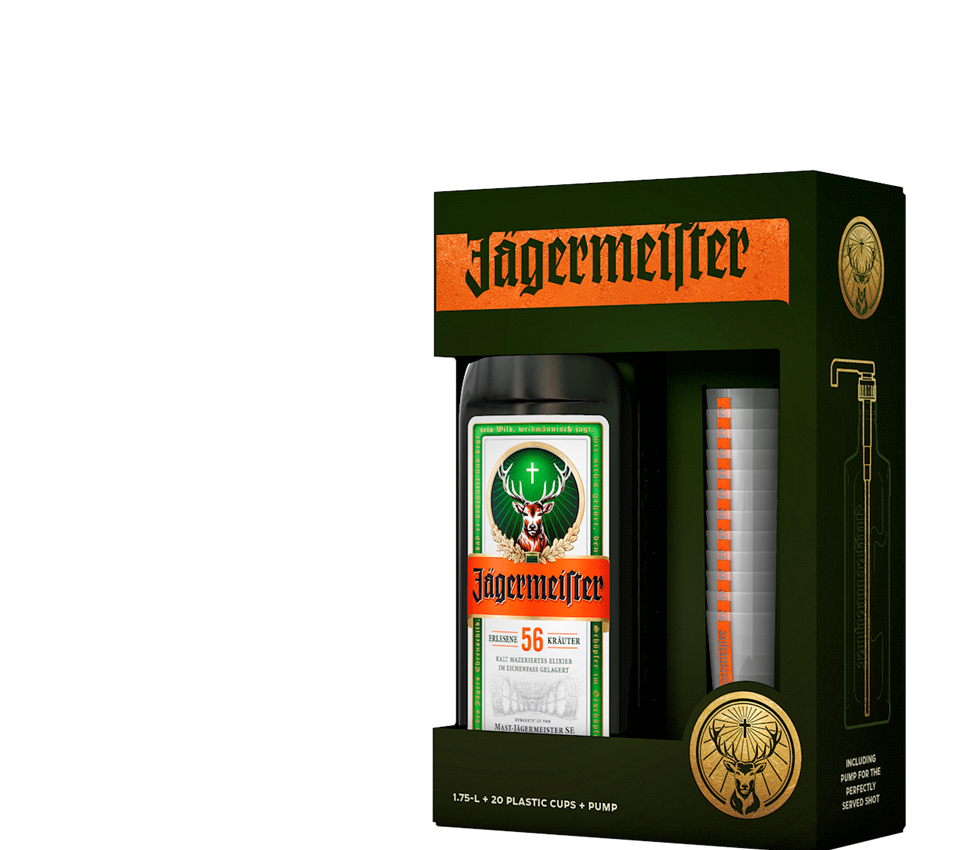 La liqueur Jägermeister s’invite à la fête, et plus encore : 3 nouveaux coffrets sont disponibles à la vente. Vous préférez votre bouteille avec deux shooters ou même vingt ? Accompagnée d’une flasque marqué de la fameuse tête de cerf qui caractérise si bien l’esprit Jägermeister ? C’est vous qui décidez ! 9ème alcool le plus consommé au monde, Jägermeister se déguste en shot glacé à -18°. Un goût délicieux à la recette aux 56 plantes toujours aussi mystérieuse !