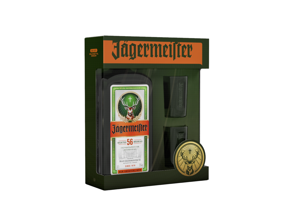 Ce coffret a été spécialement pensé pour (re)découvrir la surprenante liqueur Jägermeister, qui révèle tous ses arômes servie en shot glacé. La mythique bouteille est ici accompagnée de deux shooters gravés. Un cadeau idéal à offrir aux amoureux de la marque et aux collectionneurs ! Coffret de 2 verres shooters, avec une bouteille de 70 cl PMC : 21,90 €