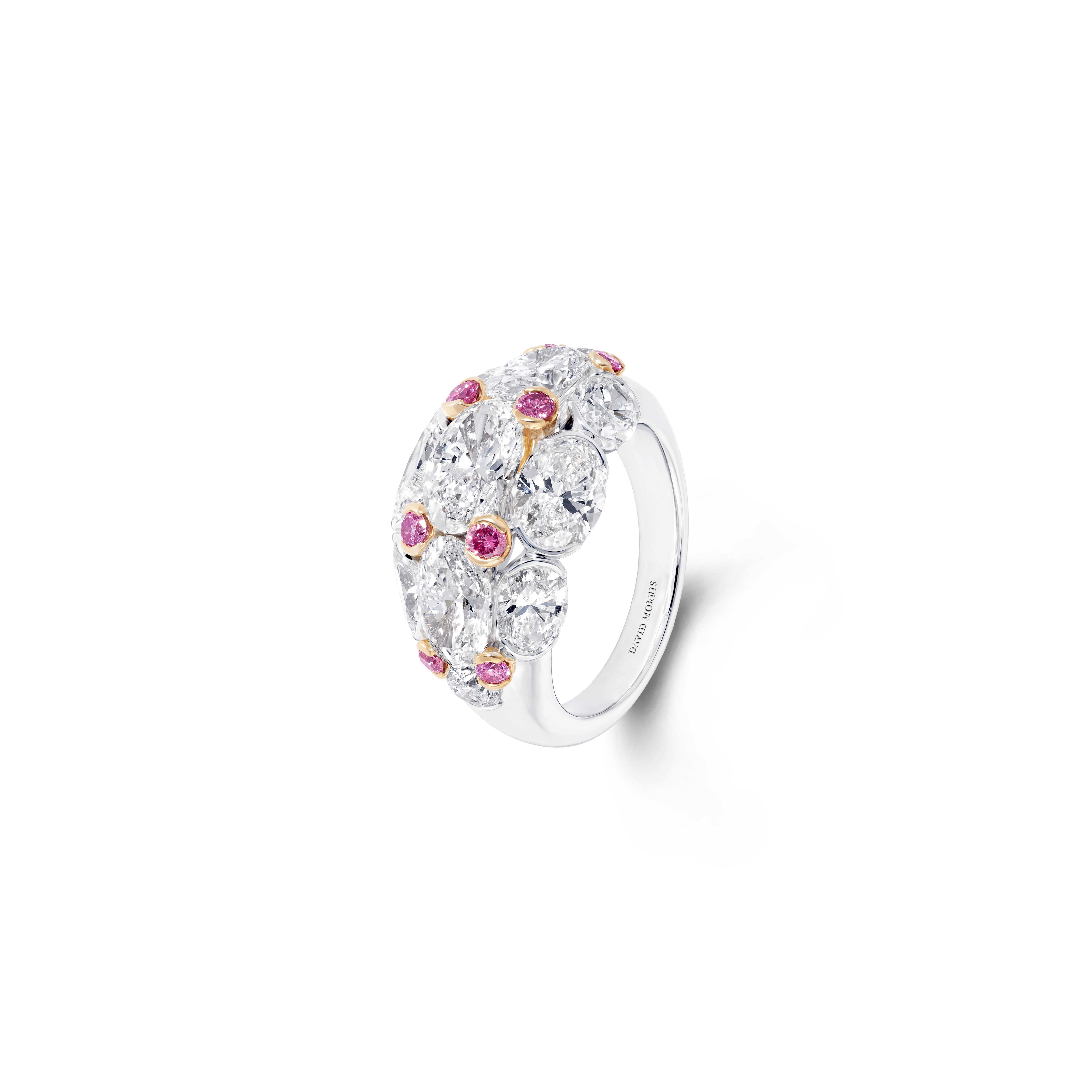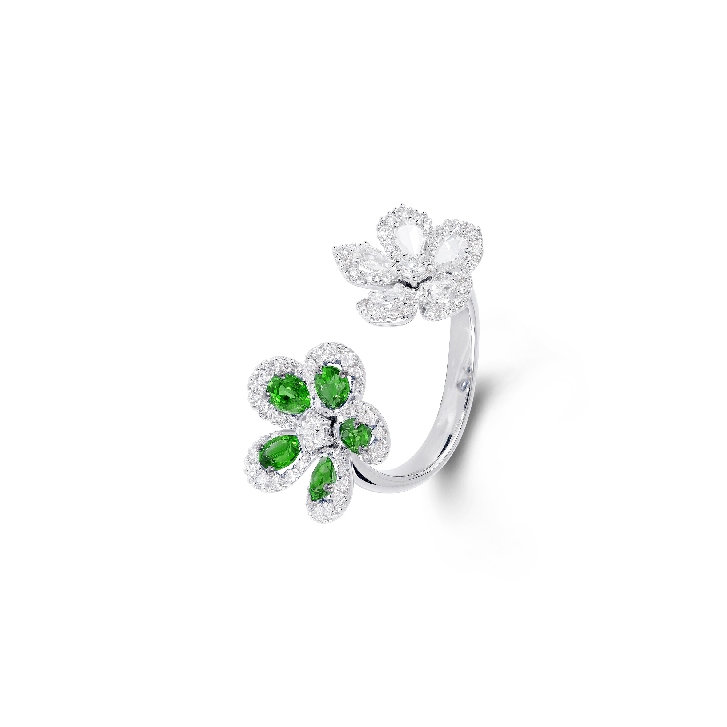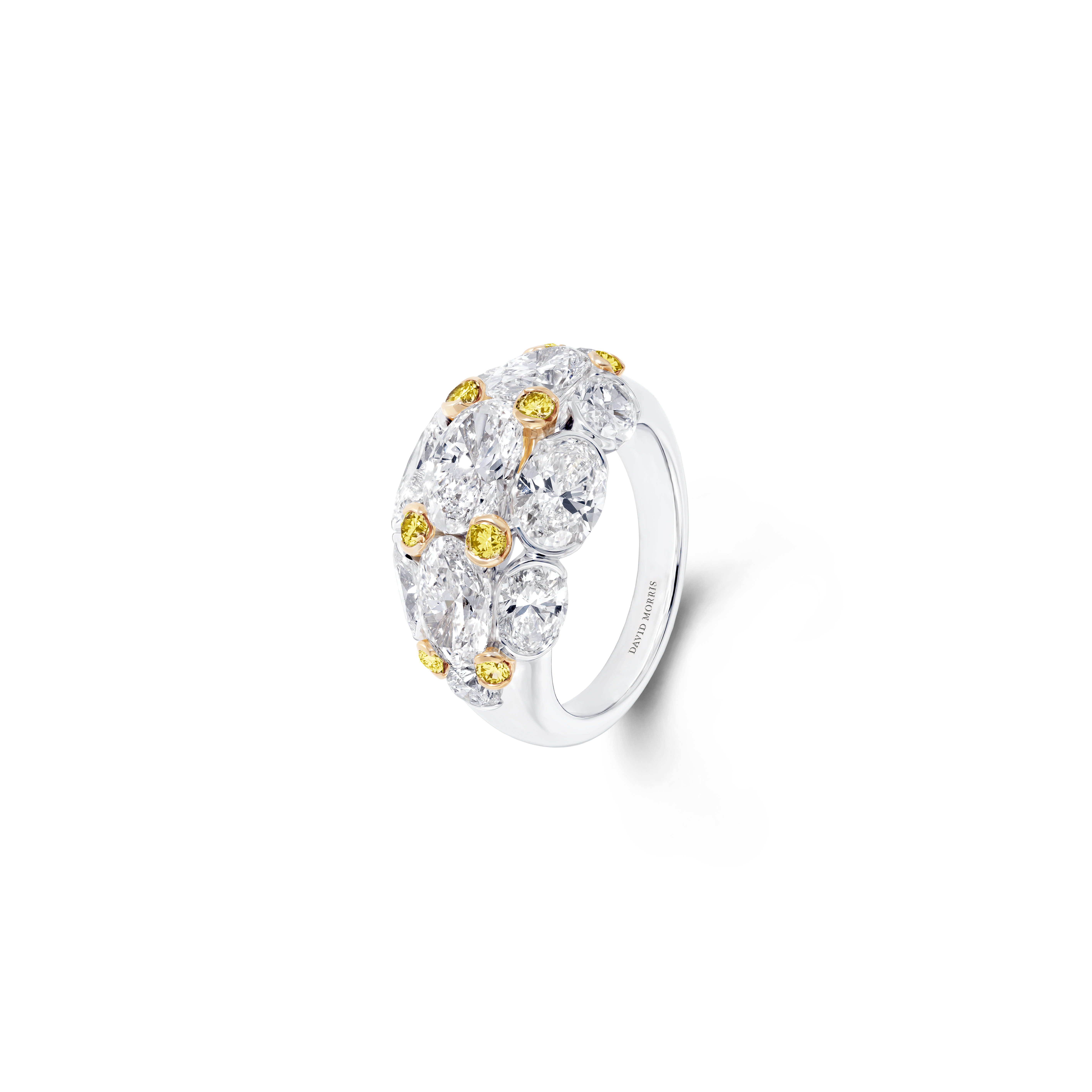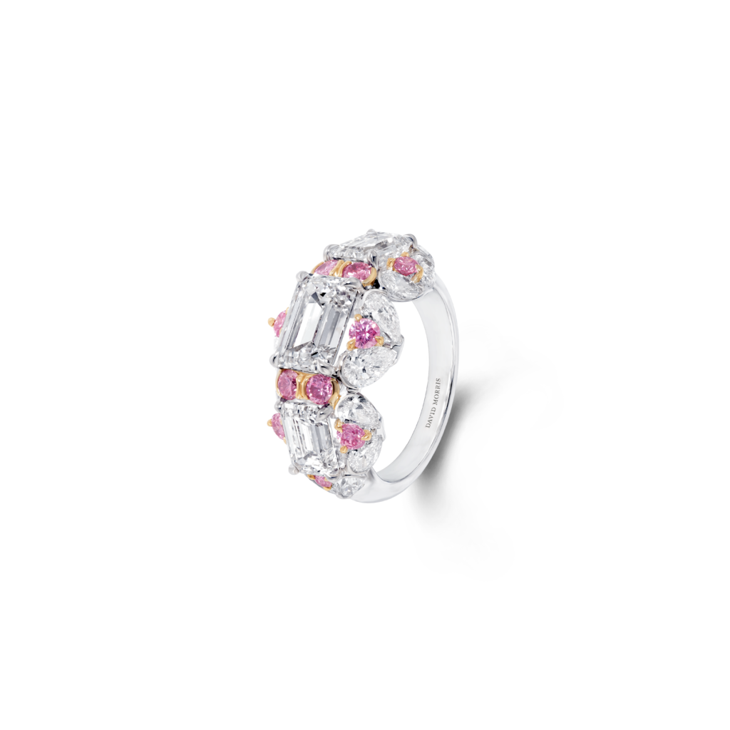 Ces oliveraies verdoyantes parsemées de fleurs sauvages exubérantes rappellent certaines couleurs d’émeraudes les plus rares, ces bougainvilliers en fleurs prennent vie tels les rubis dans ce somptueux collier aux motifs floraux. Cette manchette dont les tonalités de diamants jaunes ne sont pas sans rappeler certains poissons rares que l’on découvre parmi les récifs de corail de l’ile. Vous y trouverez également de plus petits trésors, tels que des boucles d’oreilles délicates serties de tourmalines Paraíba. – un clin d’œil aux eaux turquoise de la plage isolée préférée de Jeremy Morris – et des bagues cocktail classiques serties de diamants blancs amplifiés par des diamants roses éclatants