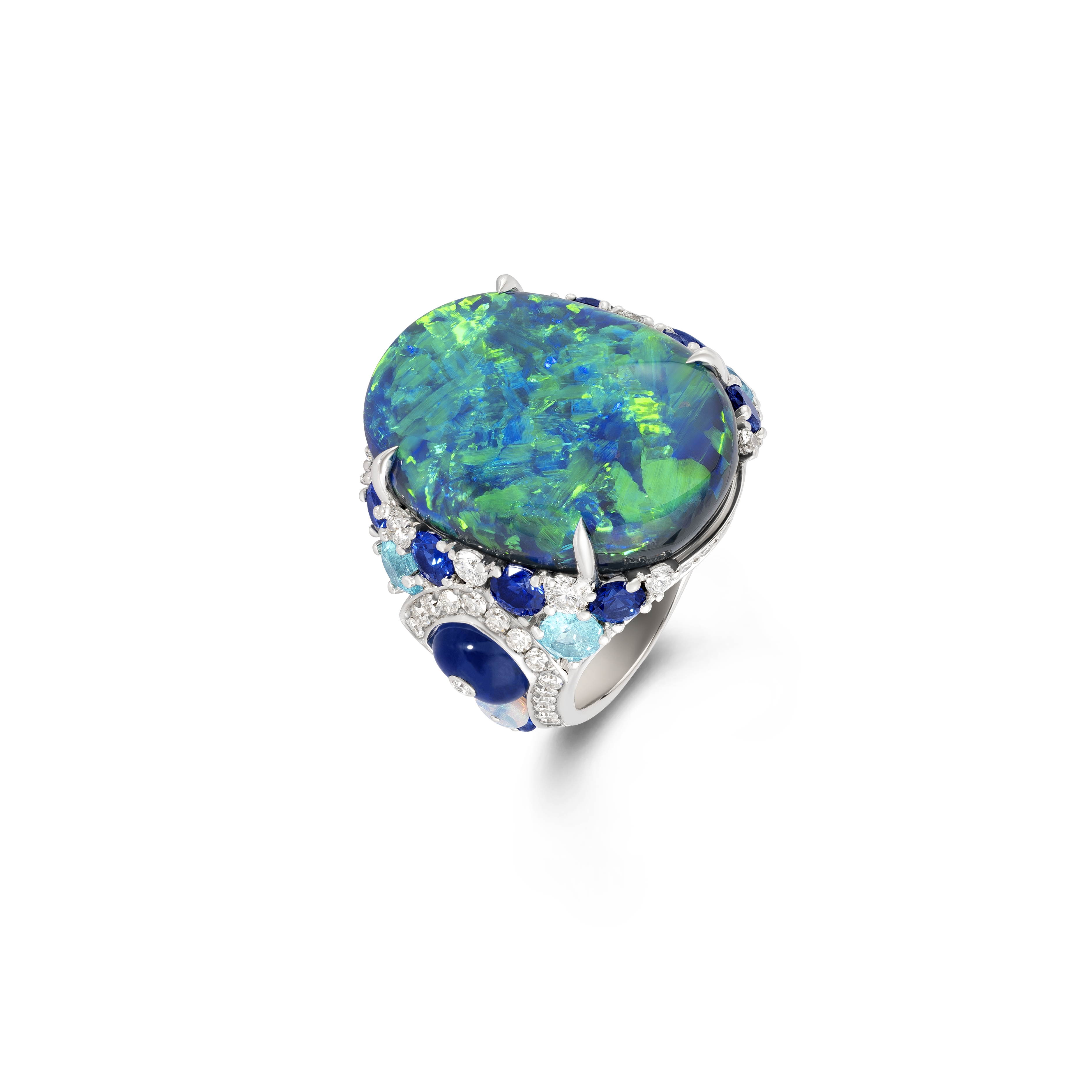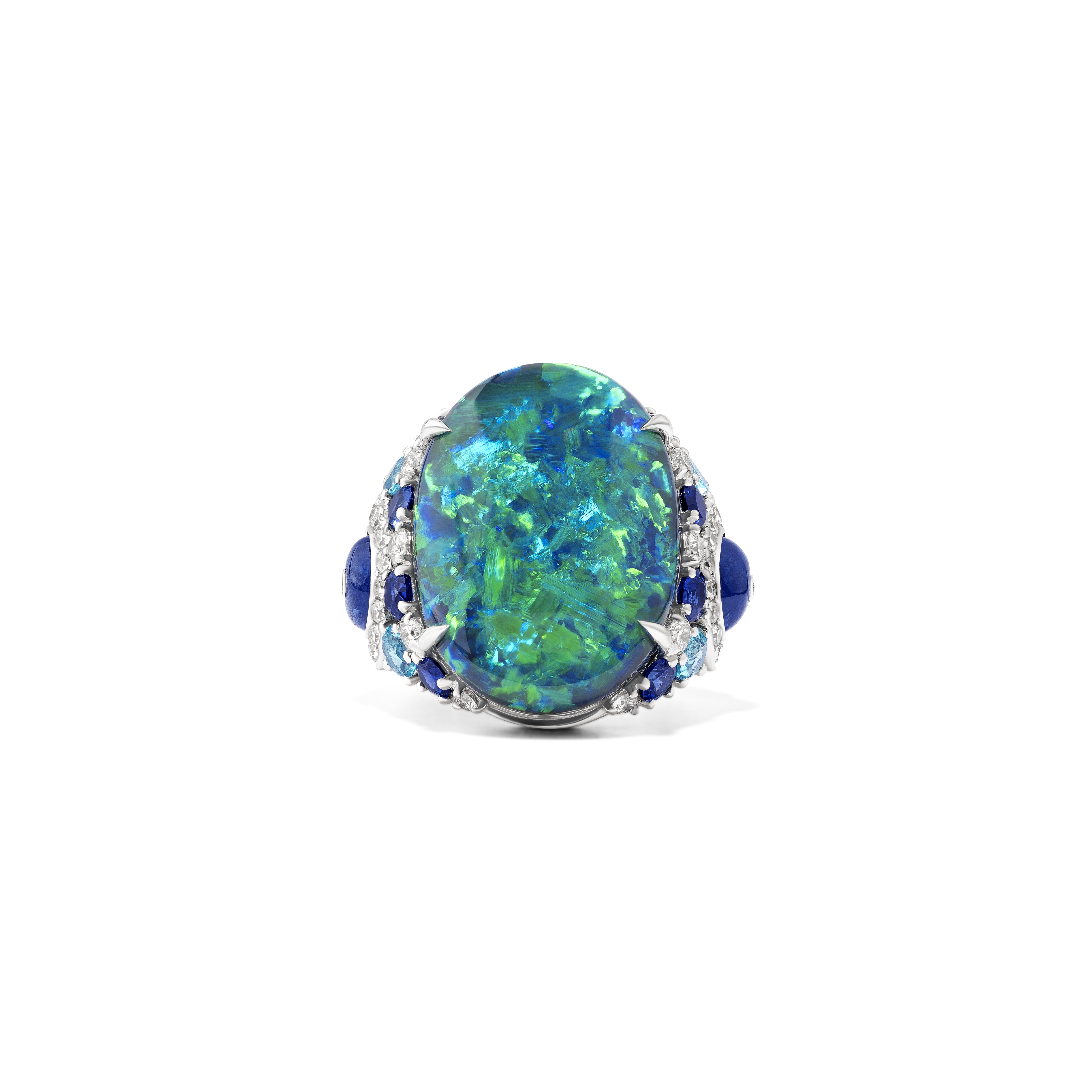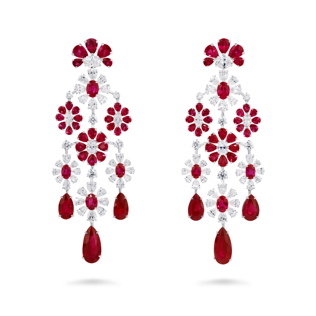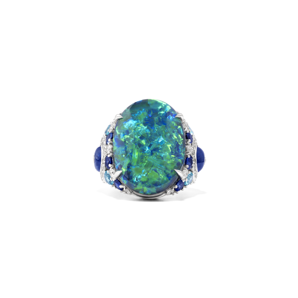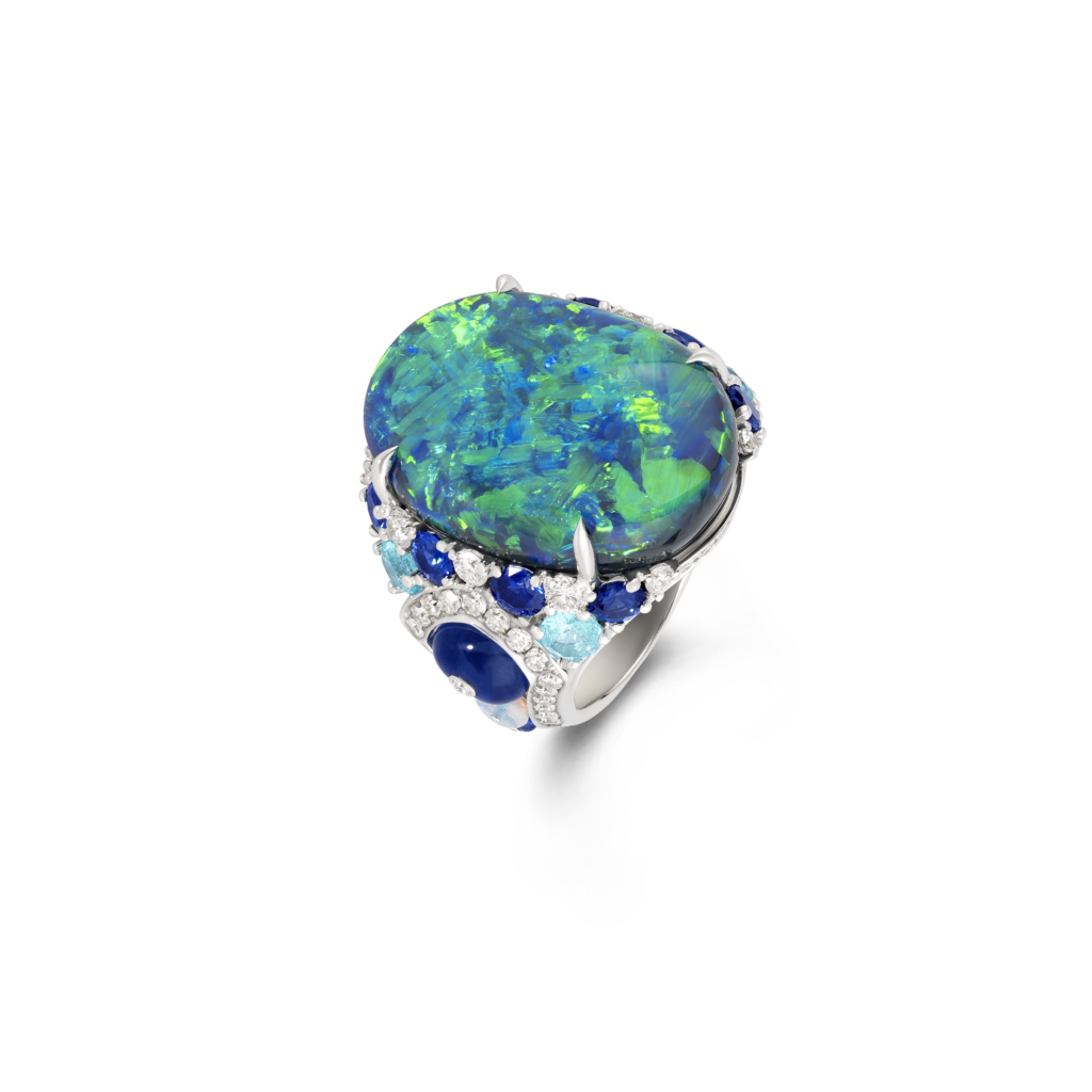 Les gemmes aux teintes flamboyantes sont devenues la signature de la Maison. Le carnaval des couleurs et l’évasion insouciante évoquée par Mykonos sont célébrés par cette palette de couleurs audacieuses sur ces créations uniques et spectaculaires.
