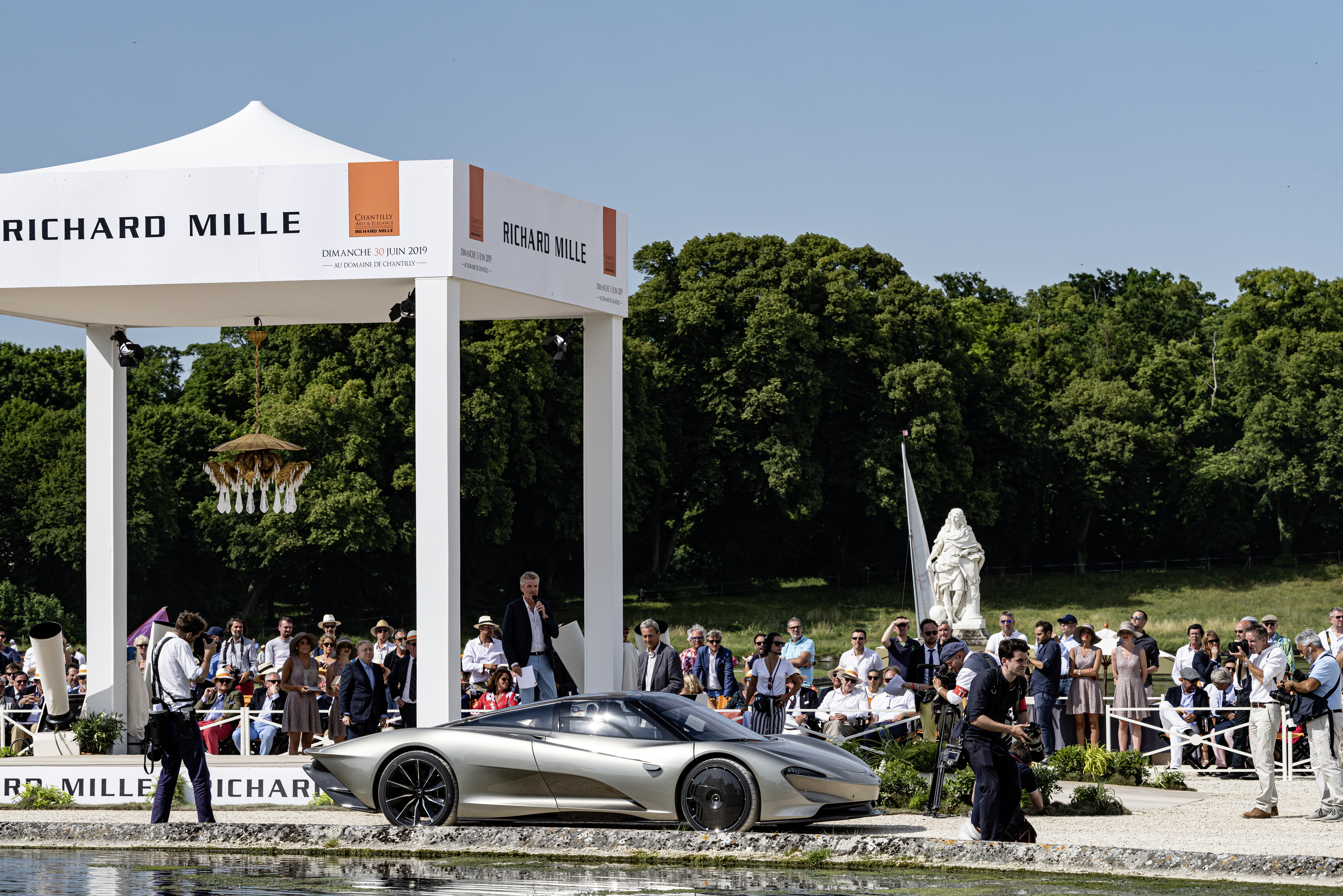 Cette 5e édition du plus élégant concours automobile du monde a accueilli 18 000 visiteurs dimanche 30 juin. Venus découvrir d’incroyables concept-cars aux côtés des plus belles voitures classiques, de très nombreux partenaires Richard Mille avaient répondu présent pour partager avec la marque ce moment unique.L’évènement fut inauguré le samedi avec le rallye des supercars qui, le temps d’une matinée, transforma le circuit de Morte fontaine en terrain de jeu pour les plus exceptionnelles voitures du monde, notamment celles de McLaren. Slaloms, freinages et anneau de vitesse, les participants ont pu profiter de ces bolides. Parmi eux le champion de ski Alexis Pinturault n’a pas caché son plaisir de parfaire ses trajectoires et d’éprouver de fortes sensations au volant d’une 720s Spider. En marge de ces baptêmes de piste, le déjeuner au palais de Compiègne en compagnie du sprinter jamaïcain YohanBlake clôtura le rallye des collectionneurs, occasion pour le public d’admirer des voitures extrêmement rares, comme les McLaren P1 GTR et 720s, Ferrari LaFerrari, Enzo et 288 GTO, Porsche 918 et 917 et autres Mercedes SLR.Juste avant le traditionnel dîner de gala dans les Grandes Écuries de Chantilly, chef-d’œuvre architectural du XVIIIe siècle, Jessica von Bredow-Werndl offrait aux 500 invités de la soirée une sublime démonstration de dressage. Ces derniers se délectèrent des mets exceptionnels concoctés par trois chefs, tandis que l’actrice australienne Margot Robbie se montrait particulièrement sensible à cet art de vivre à la française. Tout au long de la soirée, cavalières et serveurs orchestrèrent ce restaurant étoilé éphémère.Le dimanche à 9 heures, le concours d’élégance sonnait l’ouverture de cette édition. Les visiteurs ont pu découvrir sur les pelouses Le Nôtre les plus beaux chefs-d’œuvre automobiles et de nombreuses animations telles que balades en bateau sur le Grand Canal, fête foraine, jeux d’antan… et l’exposition inédite consacrée à La Joconde nue au musée Condé. Il était aussi possible de participer à la prestigieuse vente aux enchères Bonhams. D’importants anniversaires rythmaient également cette journée :le centenaire de Bentley et Ballot, les 110 ans de Bugatti, les 50 ans de l’iconique Porsche 917, les 20 ans de la Zonda de Pagani et les 50 ans du titre de Jackie Stewart en Formule 1 avec la Matra. Pour la première fois Scott Dixon et Simon Pagenaud, tous deux champions d’IndyCar et vainqueurs respectivement des 500 miles d’Indianapolis en 2008 et 2019, découvraient l’envergure de ce concours rassemblant 16 constructeurs automobiles, 40 clubs et 710 des plus belles voitures historiques. Chacun des concept-cars en lice pour le concours d’élégance était associé à un couturier :l’Aston Martin DB4 GT Zagato Continuation et Ronald Van der Kemp, la BMW Vision M Next et TalbotRunhof, la « Voiture Noire » de Bugatti et Max Mara, la DS X E-Tense et Eymeric François, la Honda EPrototype et Yohji Yamamoto, la Lexus Concept LC Cabriolet et Rochas, la McLaren Speedtail et Paule Ka,la Renault EZ-Ultimo et Guy Laroche, ainsi que la Volkswagen ID. Buggy et Ann Demeulemeester.Au sein de l’espace Richard Mille, la prospective du futur contrastait avec l’esprit Renaissance propre à l’évènement. Situé non loin des espaces Airbus Corporate Jets et de McLaren, les invités se sont retrouvés dans un décor néo-futuriste où trônait la plus célèbre voiture de l’histoire du cinéma, la DeLorean deRetour vers le futur.