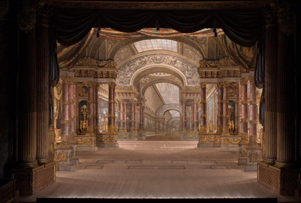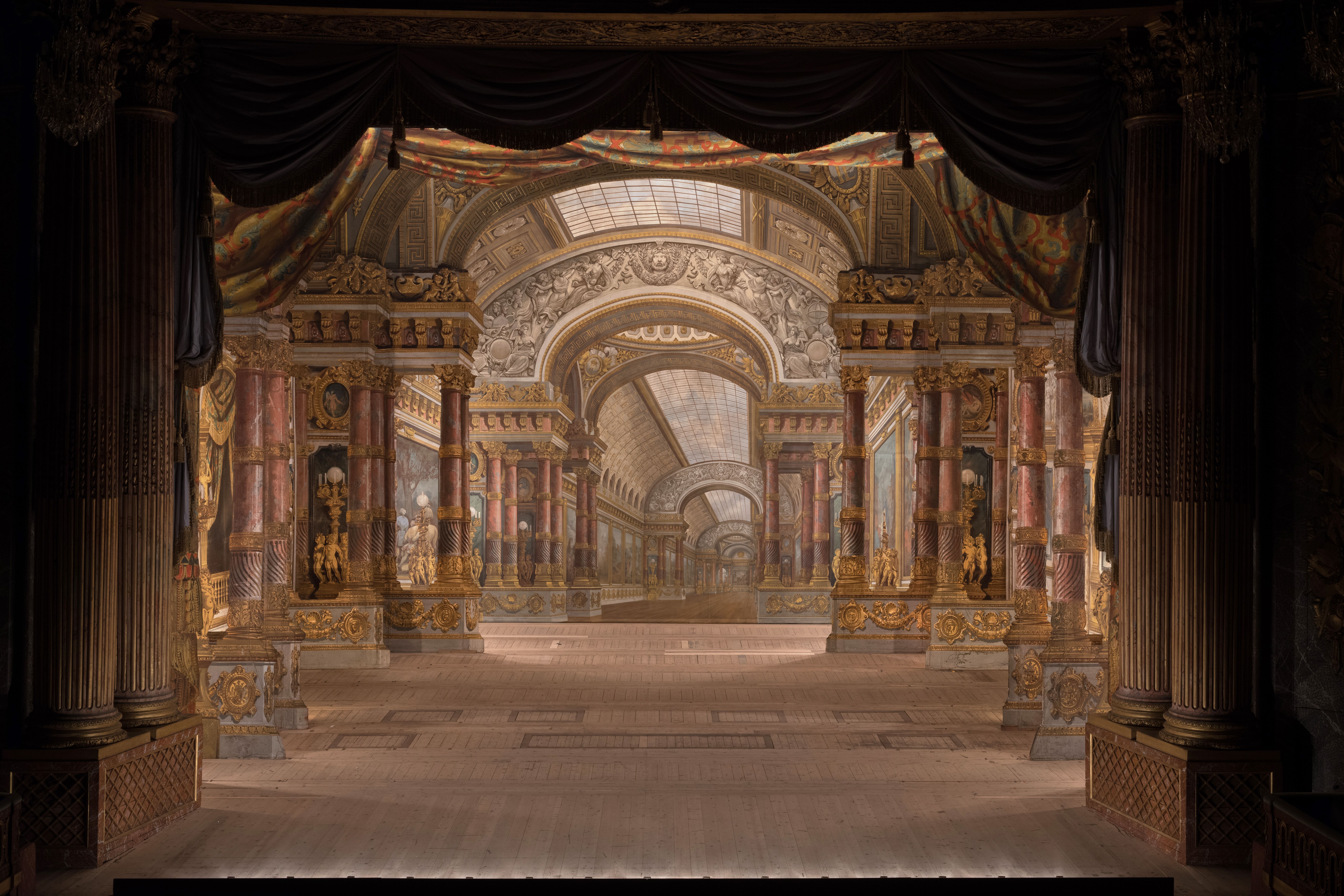 Le 10 juin 1837, à l’occasion de l’inauguration des galeries historiques destinées à « toutes les gloires de la France », Louis-Philippe commande un somptueux décor de théâtre reflétant un palais de marbre. Cette œuvre, exécutée par Pierre-Luc-Charles Cicéri, décorateur de l’Opéra de Paris, atteint un impressionnant niveau de détails et trompe l’œil grâce à l’immense perspective qui s’offre à lui.
