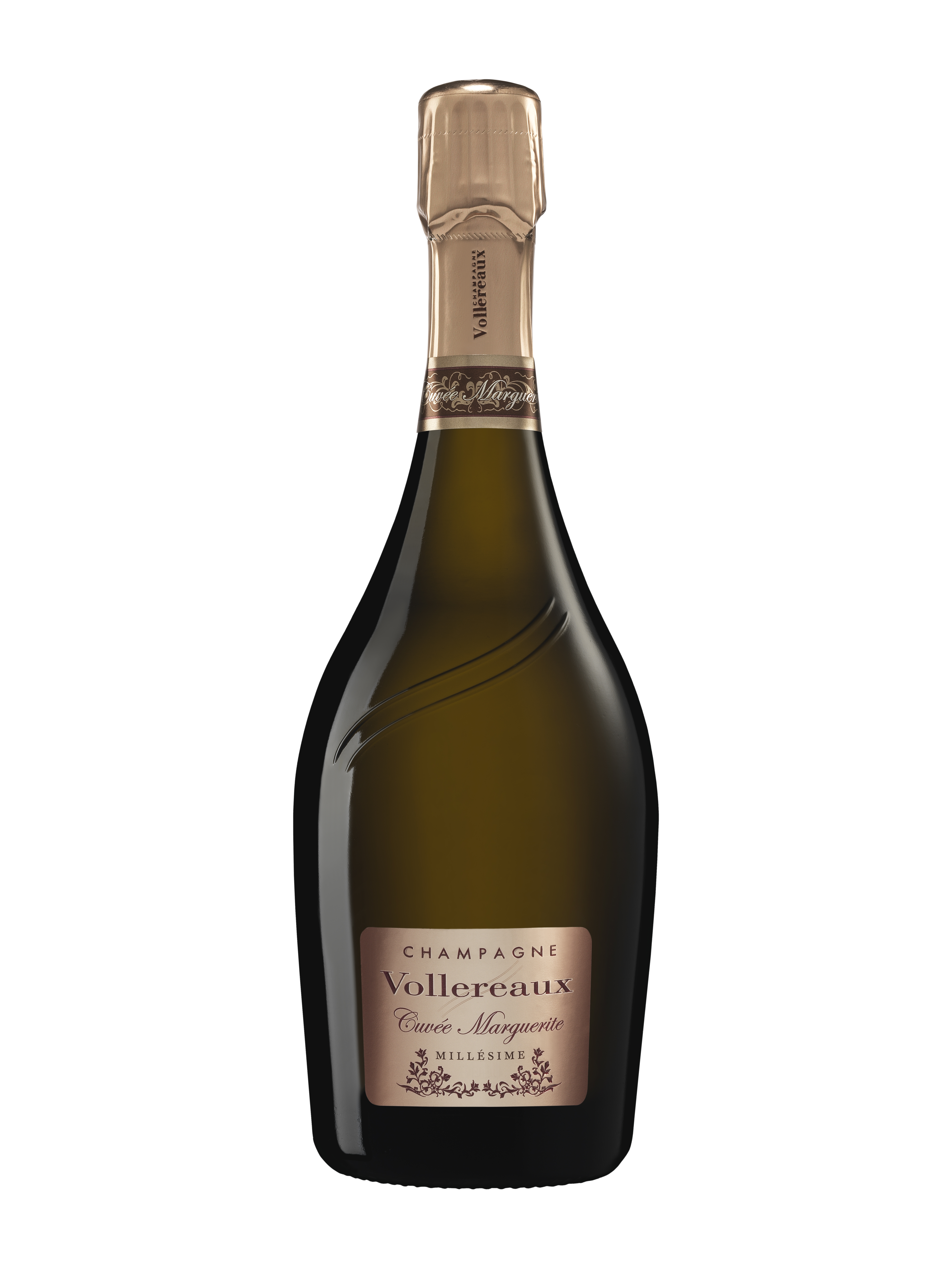 Eu égard à la faible quantité récoltée cette année-là, le millésime 2011 sera rare en Champagne. Contrairement à 2008 faiblement perturbé, l’année viticole 2011 fût difficile avec une réaction de la vigne parfois déroutante et un résultat quelque peu paradoxal ! Avec un printemps très chaud, un mois de juillet très pluvieux et un mois d’août globalement frais, il était difficile de prévoir comment allait se développer la maturation des raisins. Année record en termes d’accumulation des sucres, le scénario caniculaire qui se profilait a fort heureusement été évité et la cueillette précoce en août a permis de placer 2011 sous le signe de la fraîcheur. Comme quoi, précocité ne rime pas toujours avec forte maturité ! Avec Marguerite 2011, la 6ème génération de la famille Vollereaux vous propose de découvrir une interprétation émouvante des meilleures parcelles des terroirs de la Maison – le Sézannais d’où provient en majorité le chardonnay, le coteau sud d’Epernay et la vallée de la Marne. Elle célèbre ainsi le dixième millésime en hommage à leur grand-mère qui pendant la Seconde Guerre Mondiale, maintenait le domaine de façon remarquable, pendant que les hommes étaient au front. A travers ce nouveau millésime, la Maison continue comme depuis plus de deux siècles à démocratiser ce breuvage, en lui conférant un style classique décontracté. Dans une teinte plus profonde et un nez plus expressif que 2008, 2011 allie élégance et amplitude en bouche.