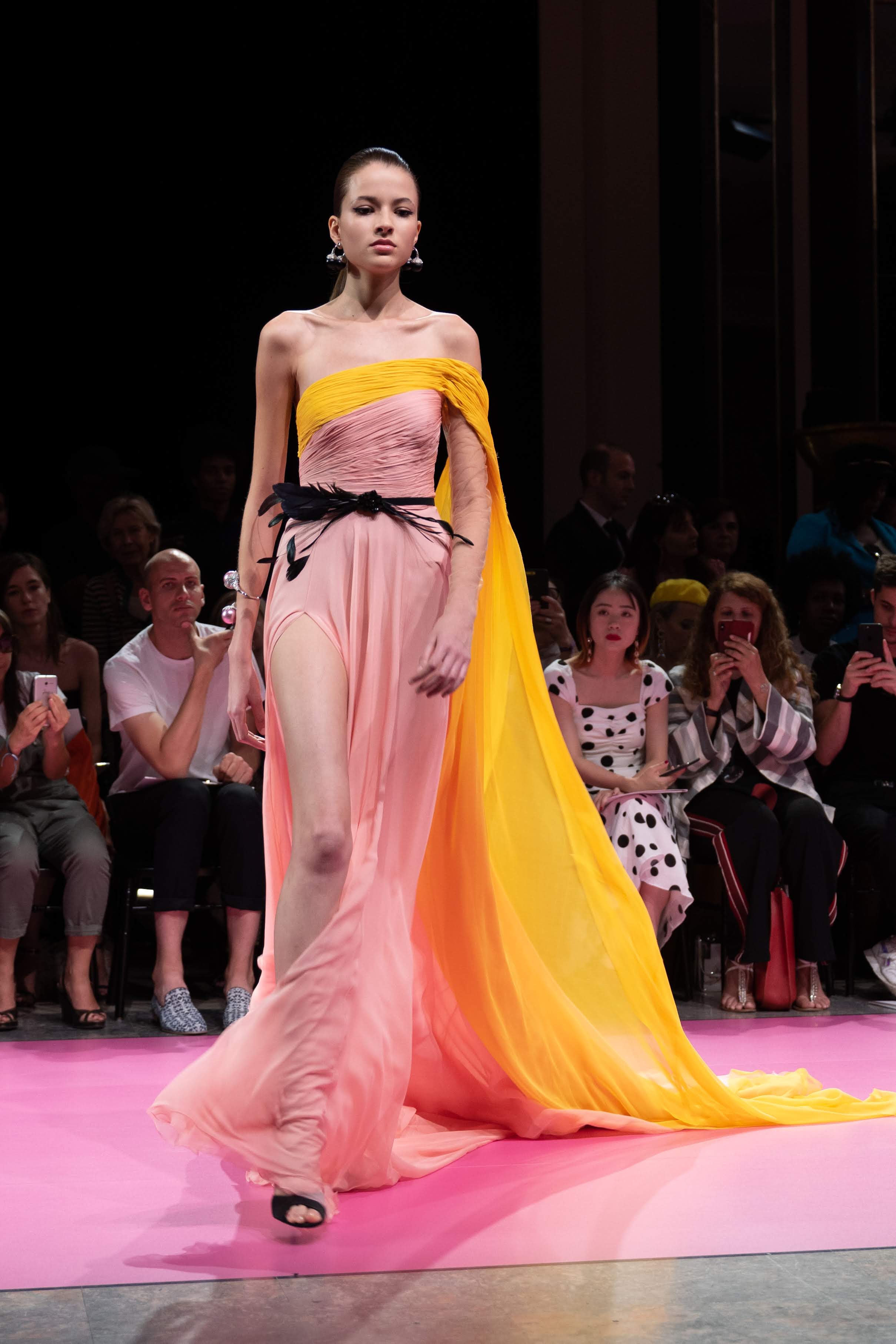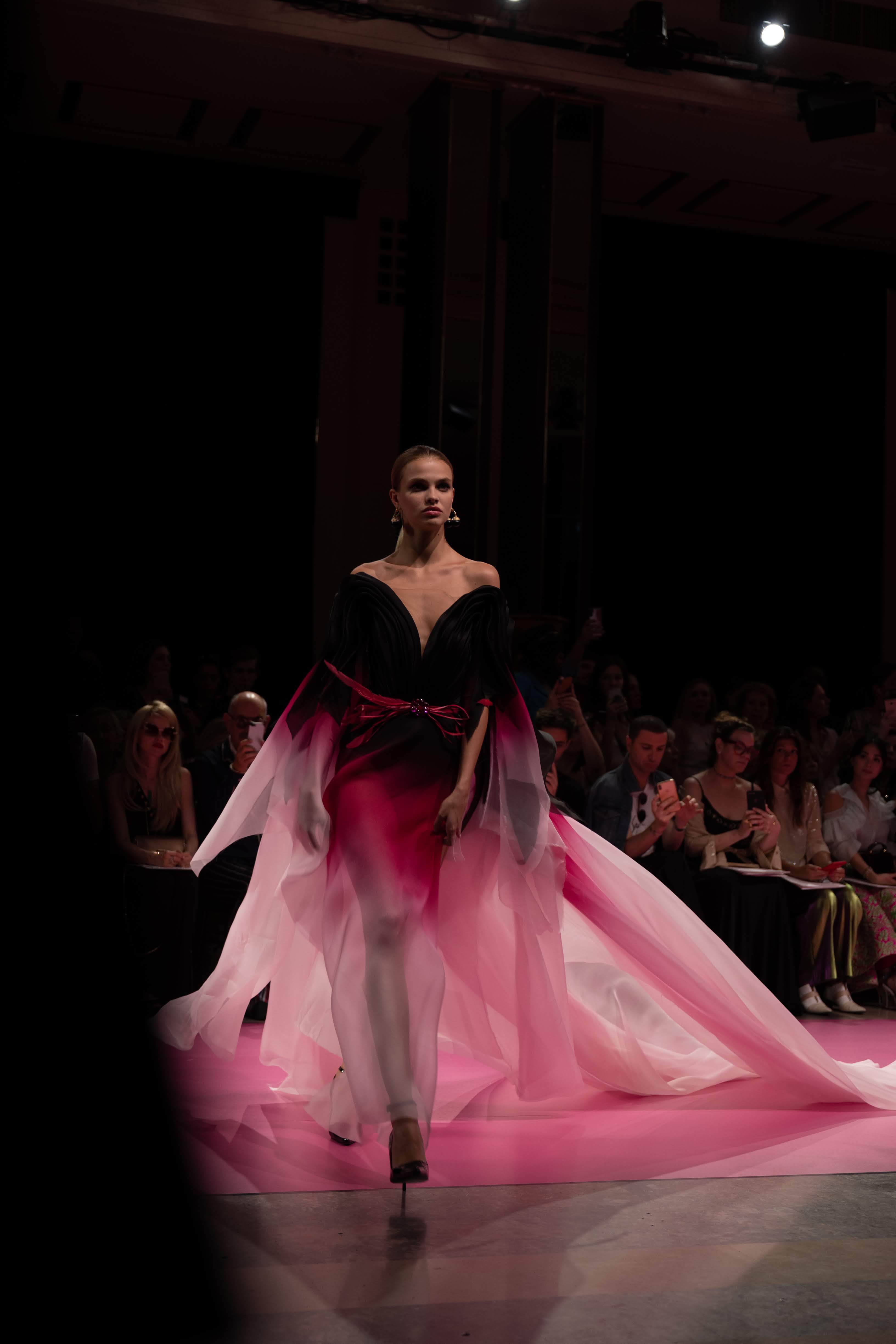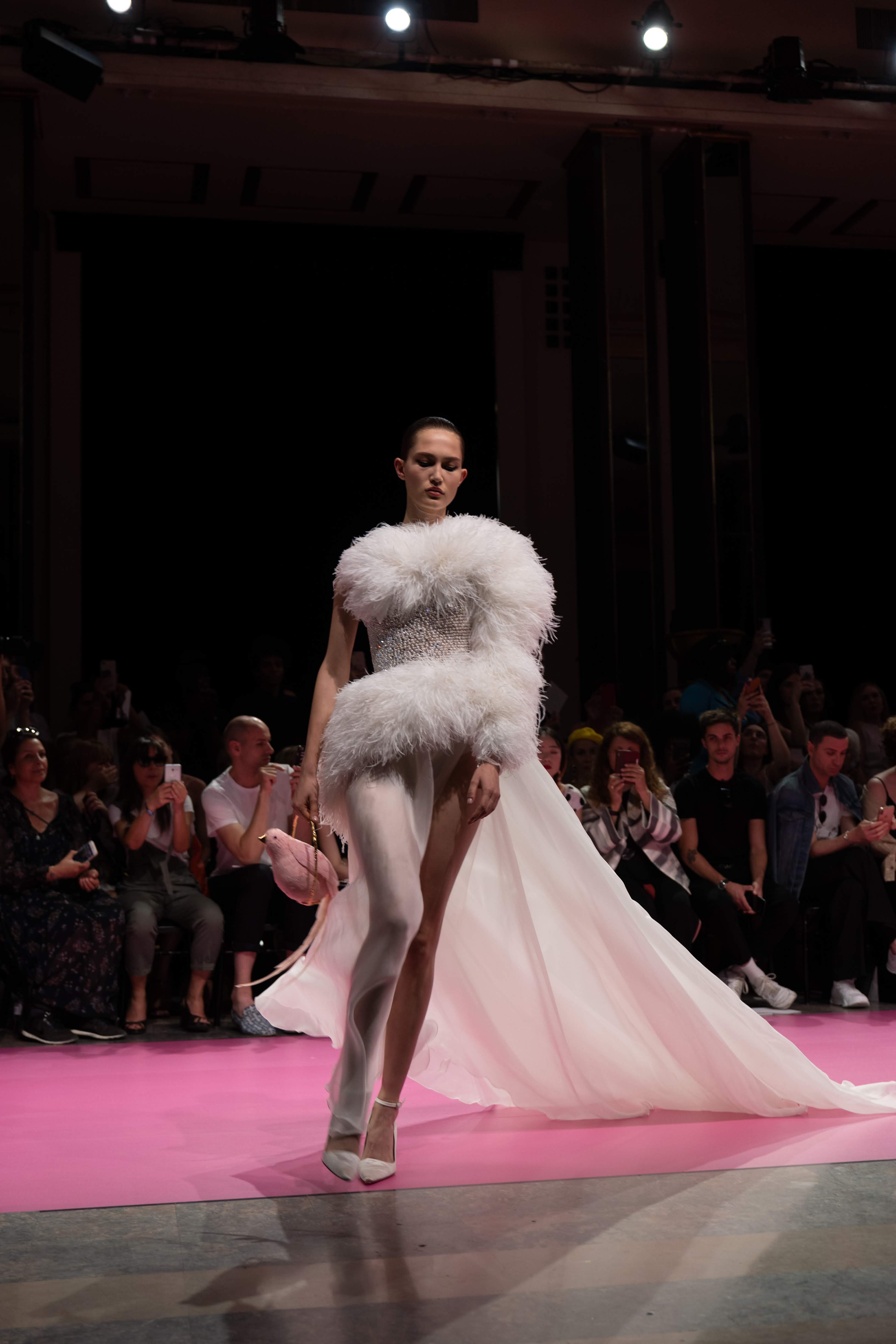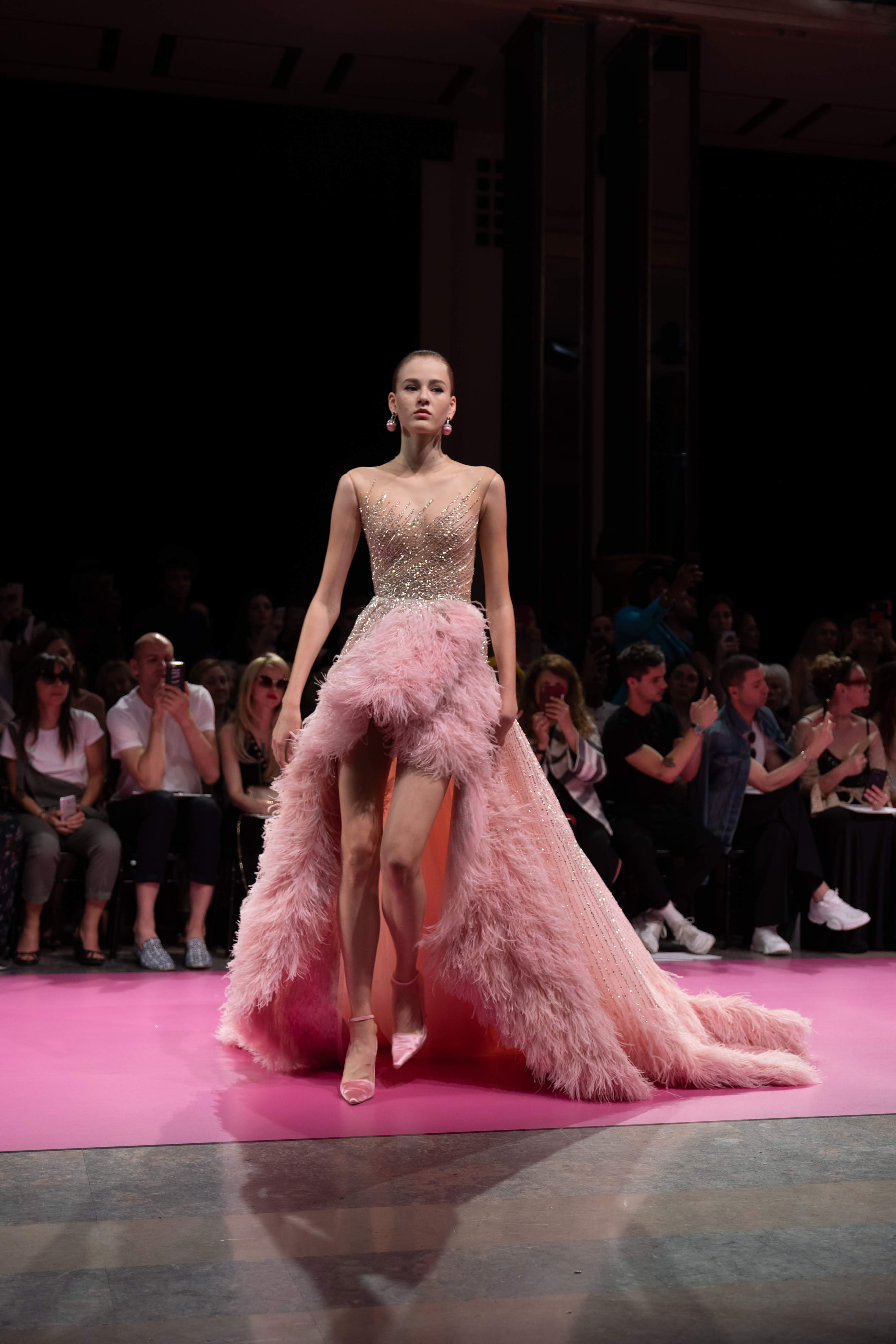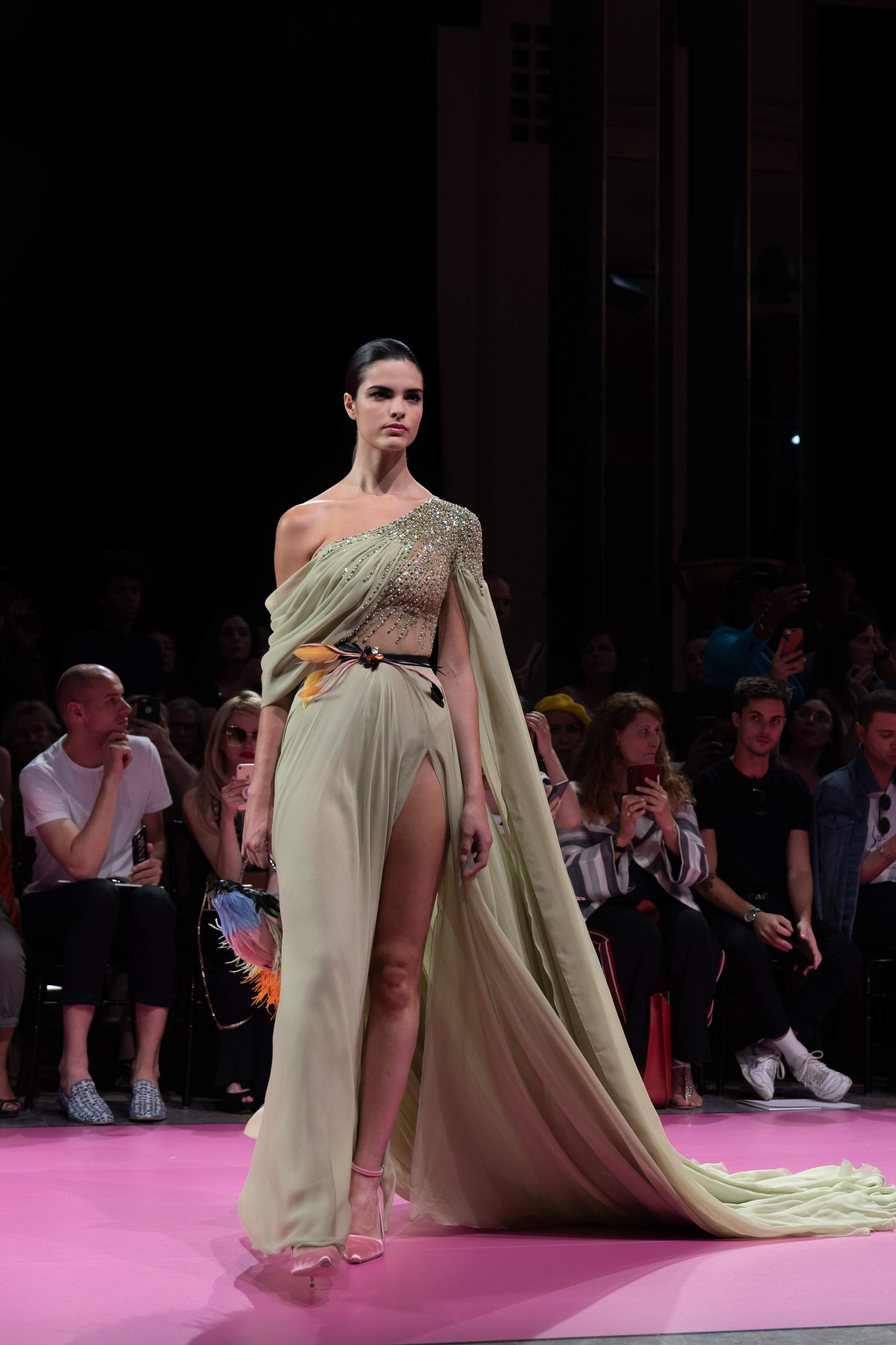 Guided by a profound love of fauna and flora, Maison GEORGES HOBEIKA’s Fall-Winter 2019/20 Haute Couture collection pays tribute to wild majesty sent soaring on the bright and flamboyantly colored feathers of the bird of paradise. Celebrated for its extraordinary dance that crowns a captivating, seductive, and passionate courtship ritual, the bird and its signature aerial grace is vibrantly echoed in the imagination of Georges Hobeika and his newest couture collection.