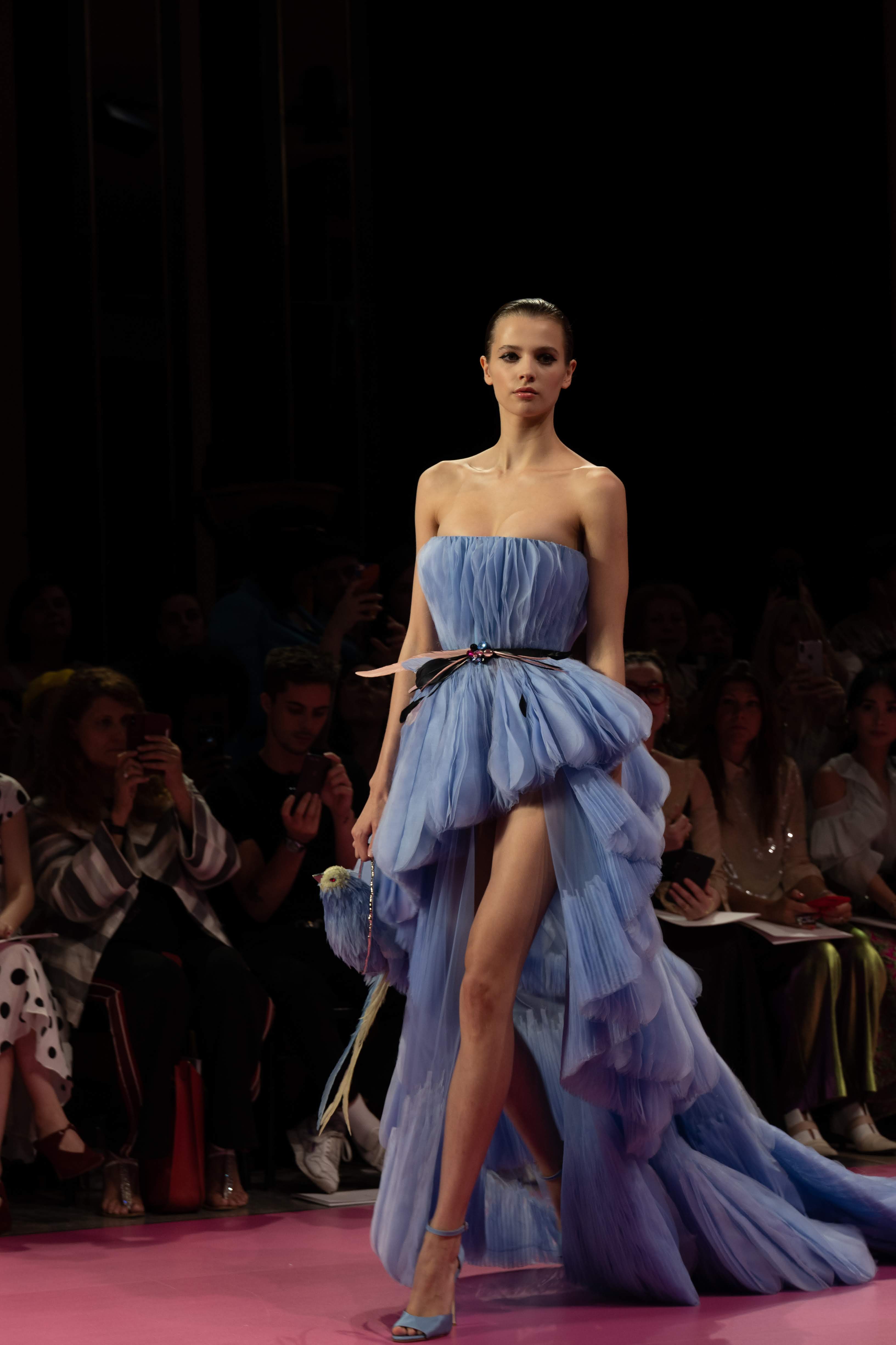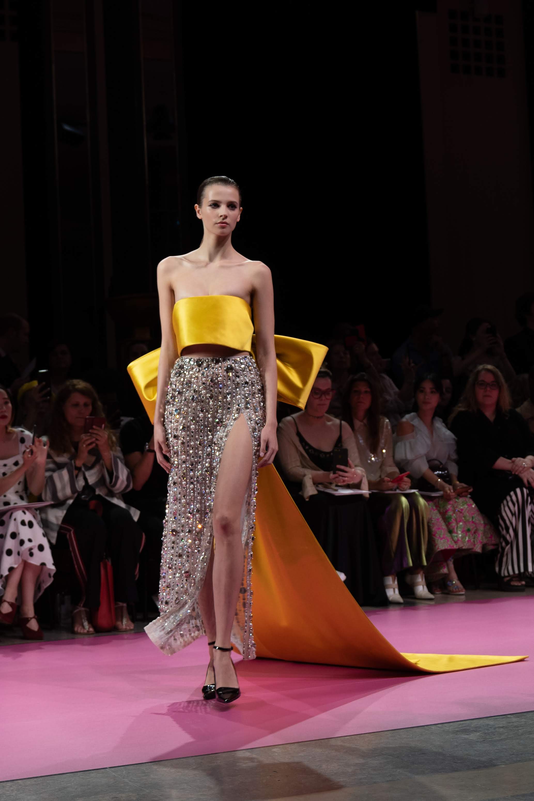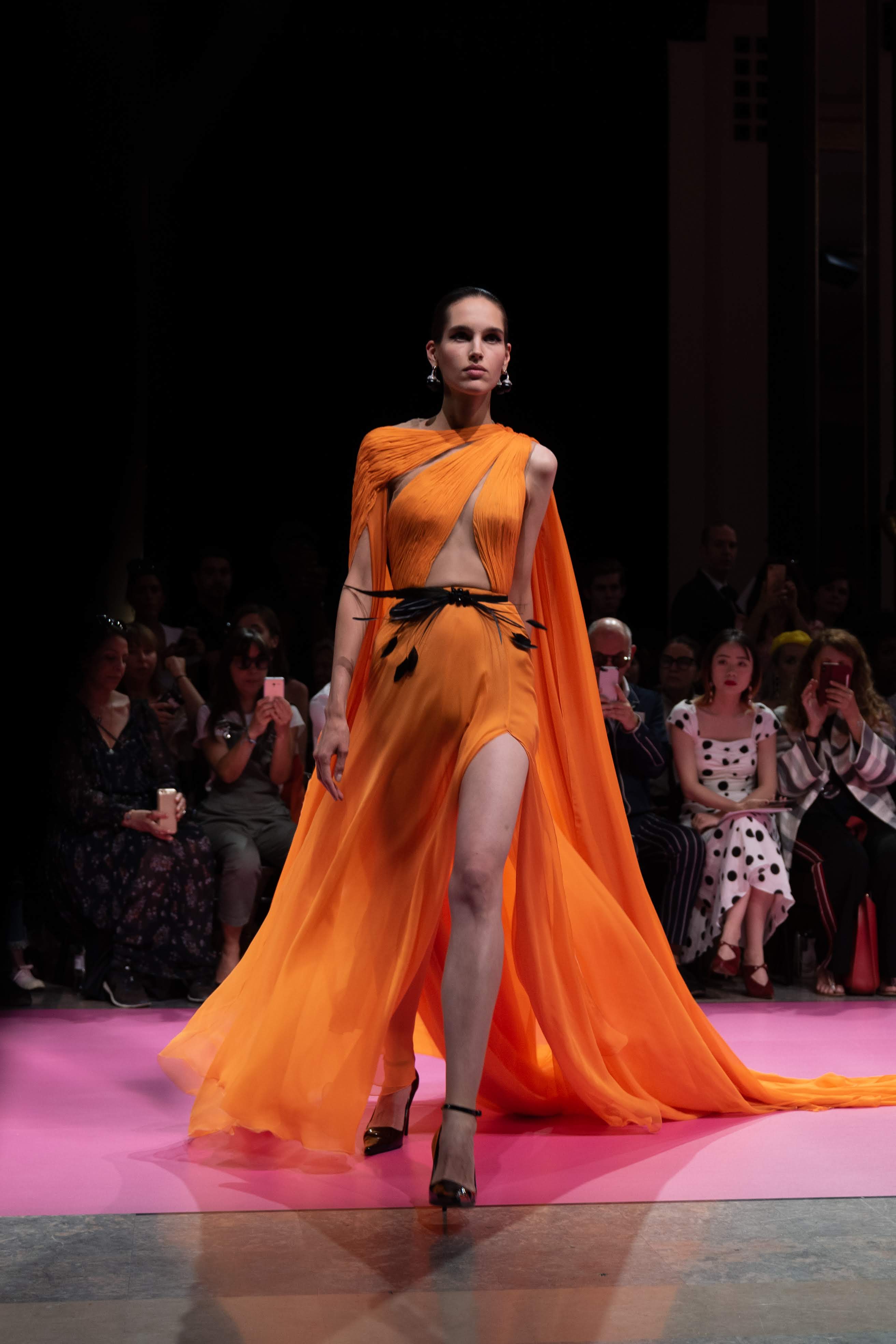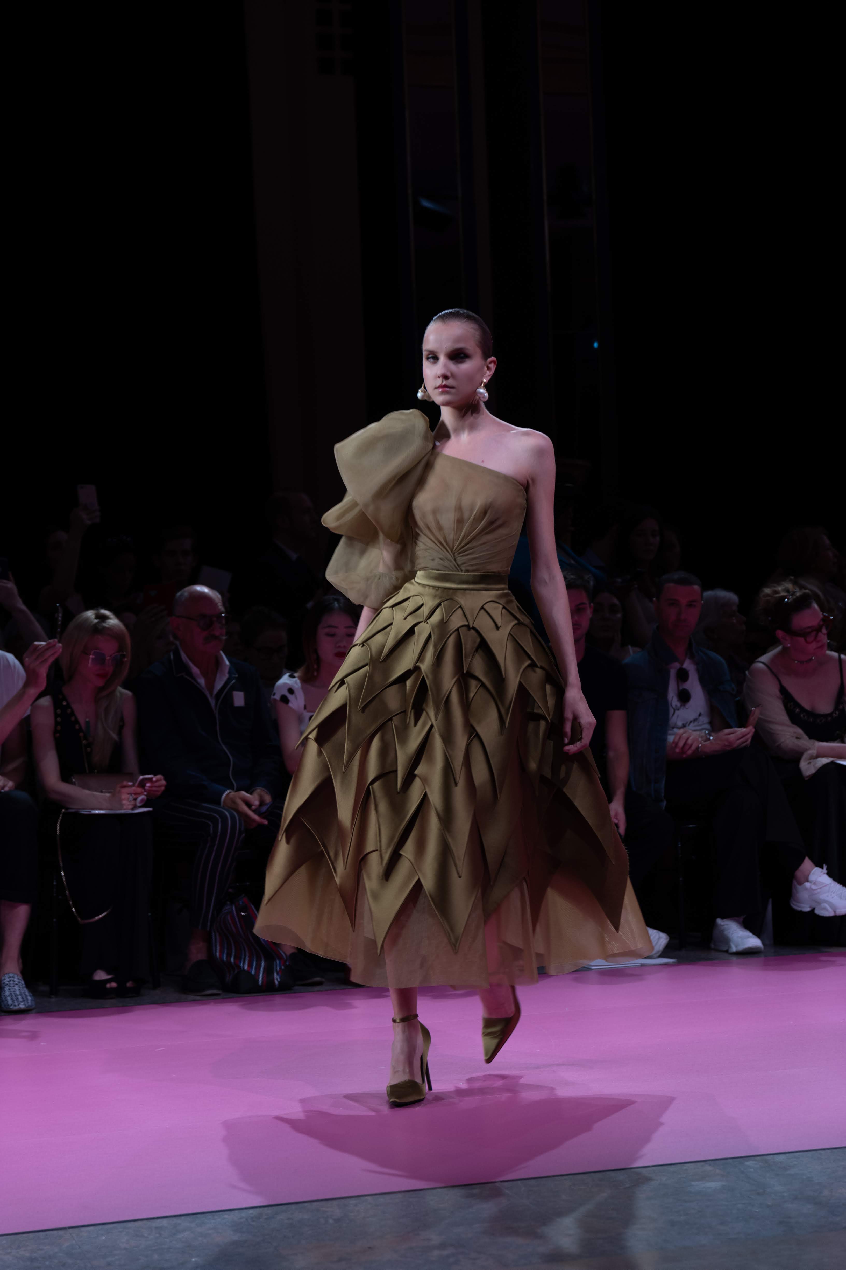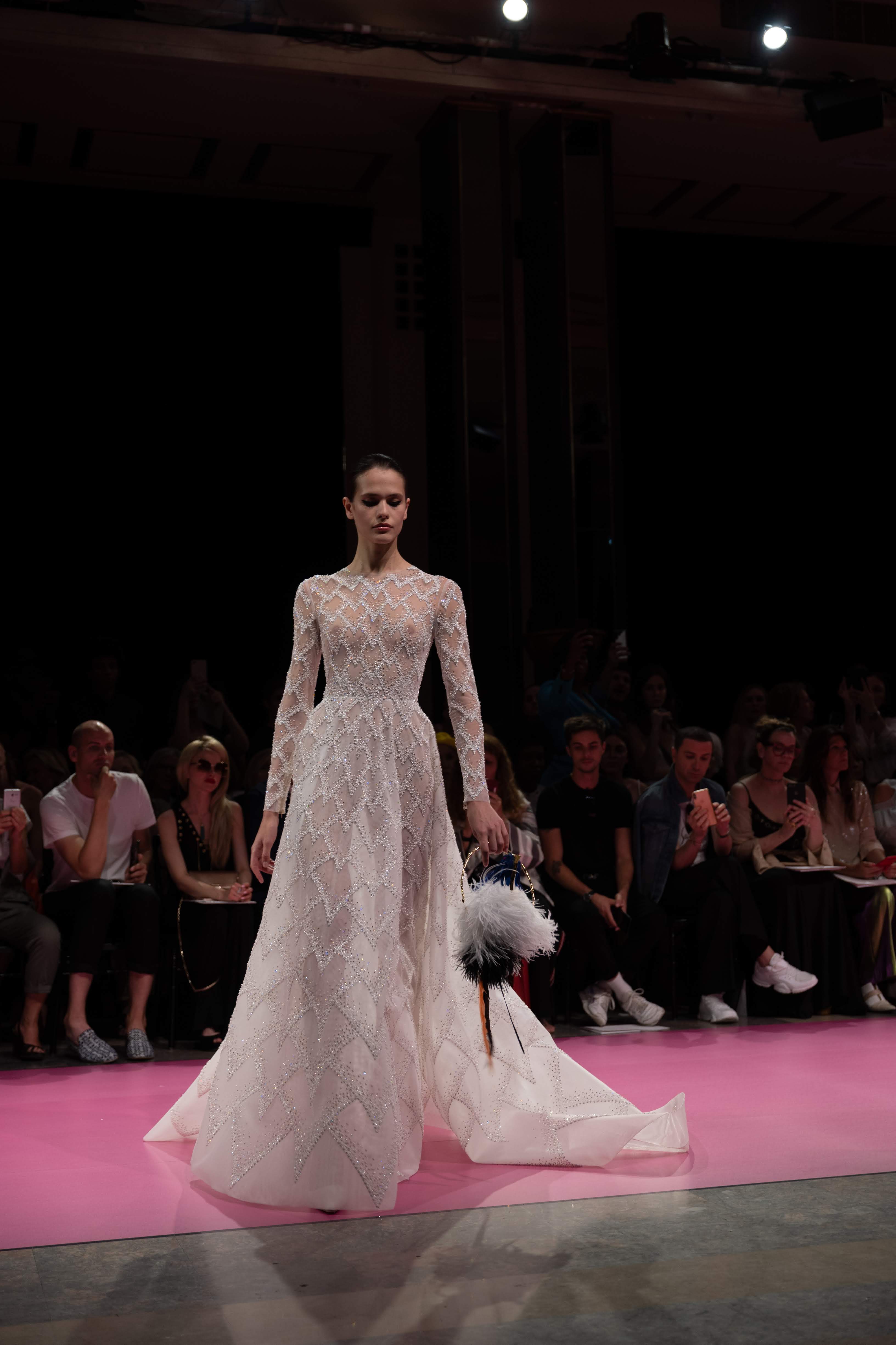 Guided by a profound love of fauna and flora, Maison GEORGES HOBEIKA’s Fall-Winter 2019/20 Haute Couture collection pays tribute to wild majesty sent soaring on the bright and flamboyantly colored feathers of the bird of paradise. Celebrated for its extraordinary dance that crowns a captivating, seductive, and passionate courtship ritual, the bird and its signature aerial grace is vibrantly echoed in the imagination of Georges Hobeika and his newest couture collection.